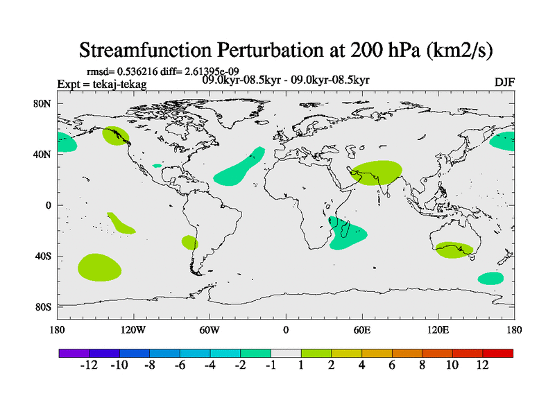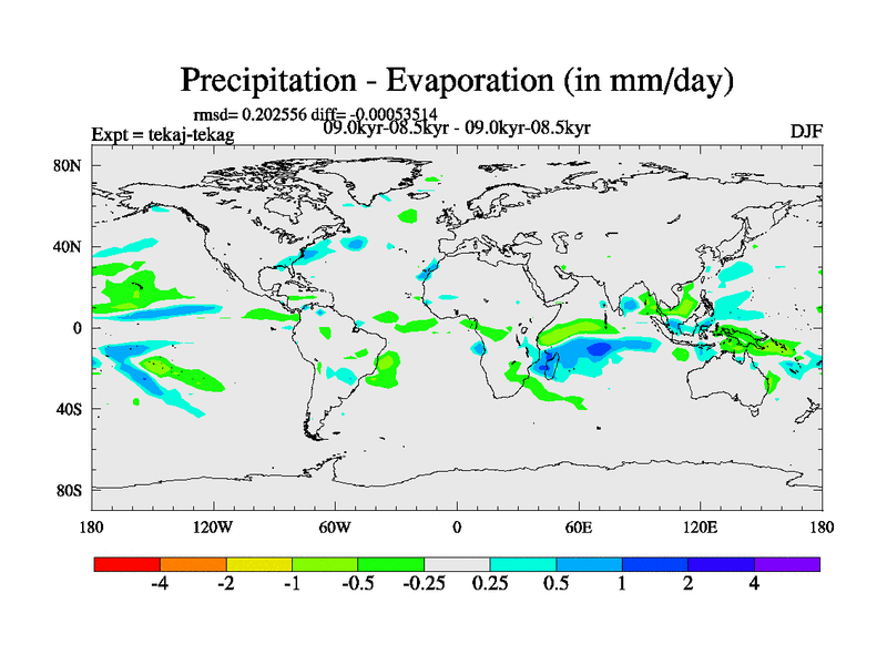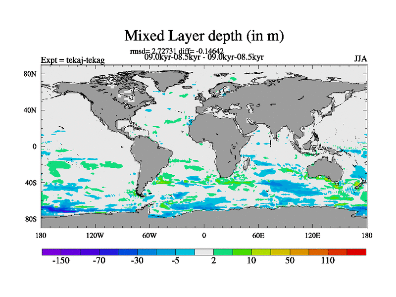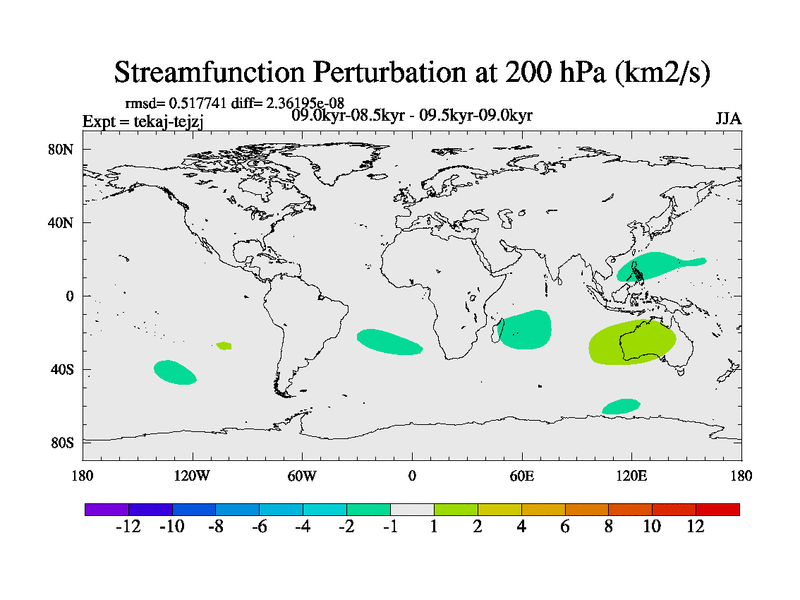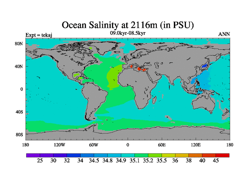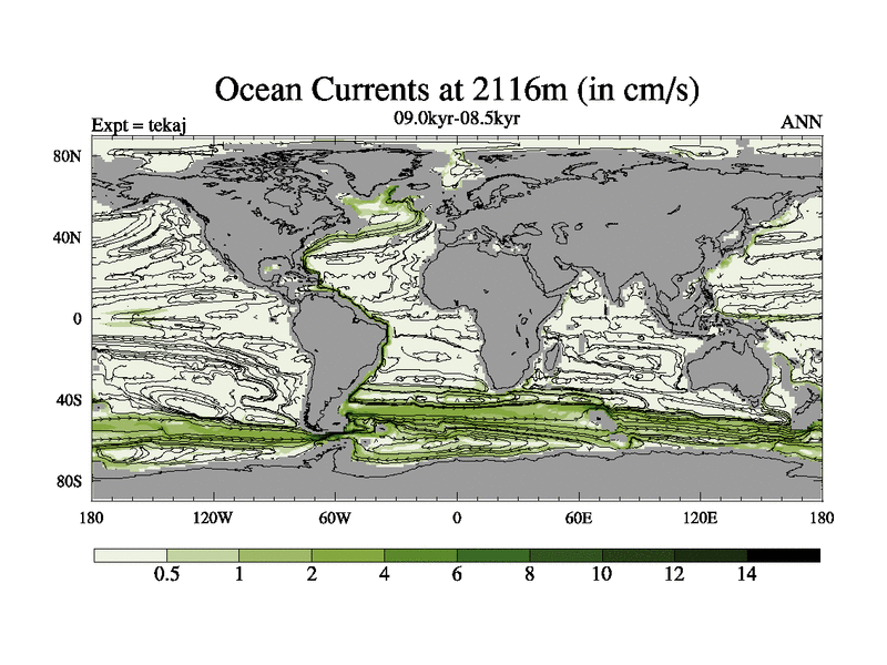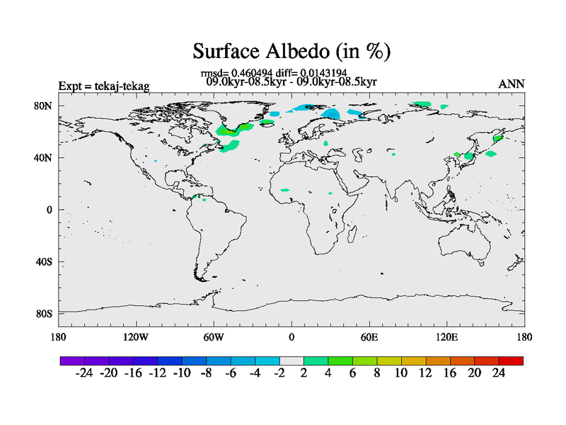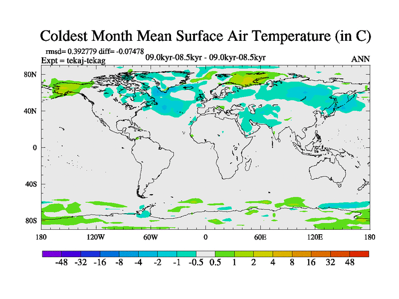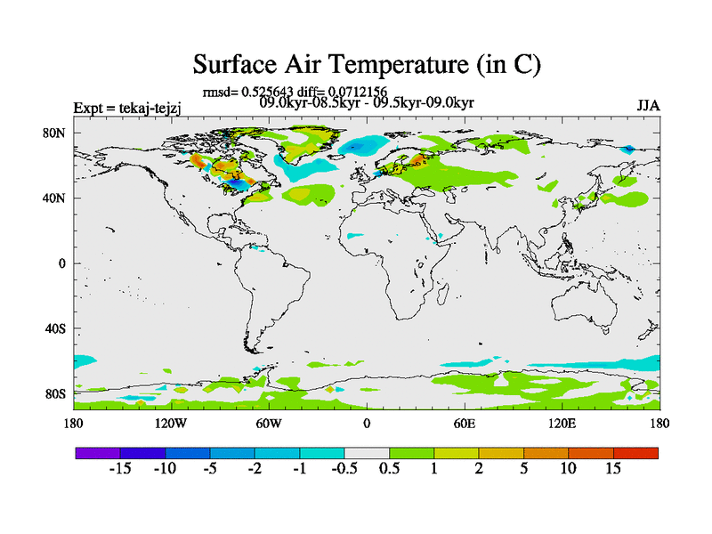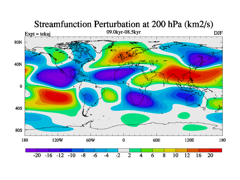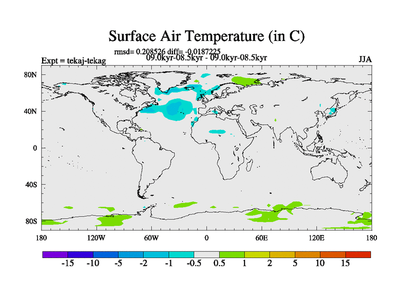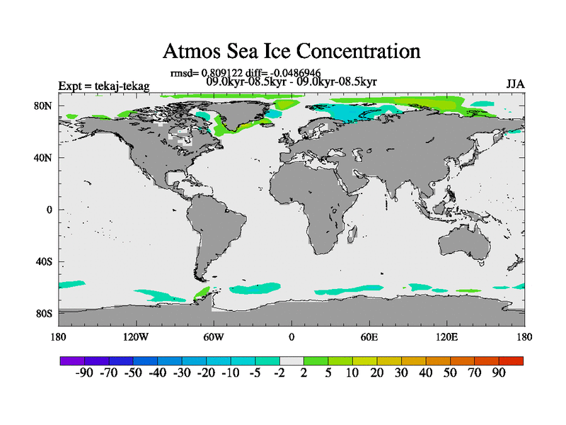 This is part of our deglaciation simulations. All forcings included except melt water fluxes. This series originally started from the tdphm spinup. Revised runoff maps, Russian rivers to Arctic. This vresion uses real meltwater fluxes. |