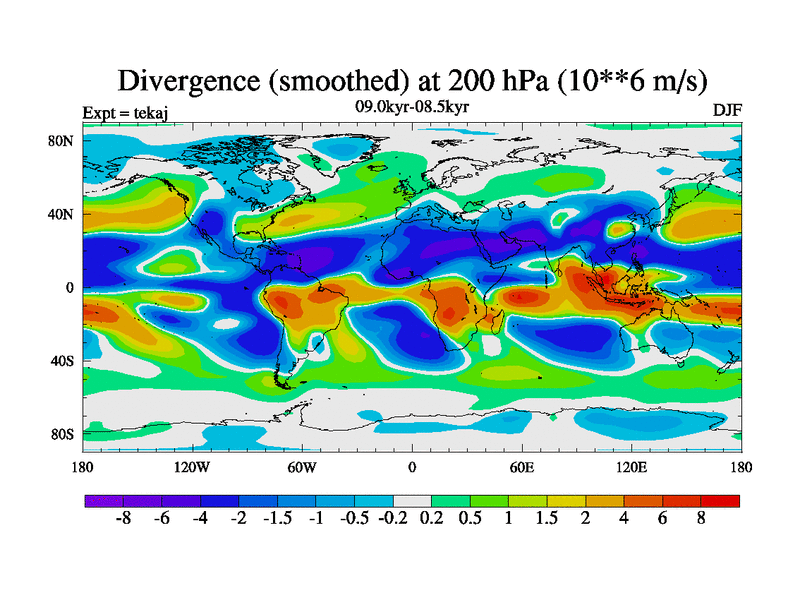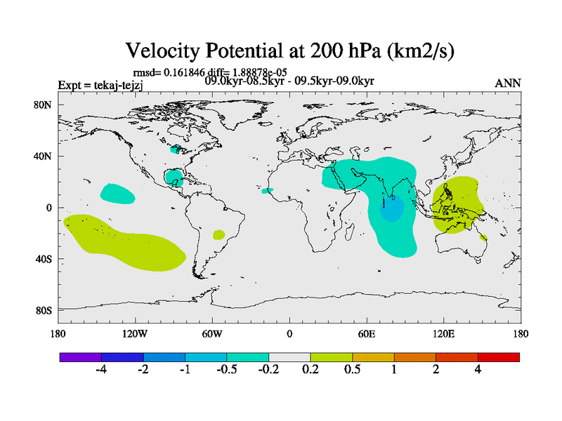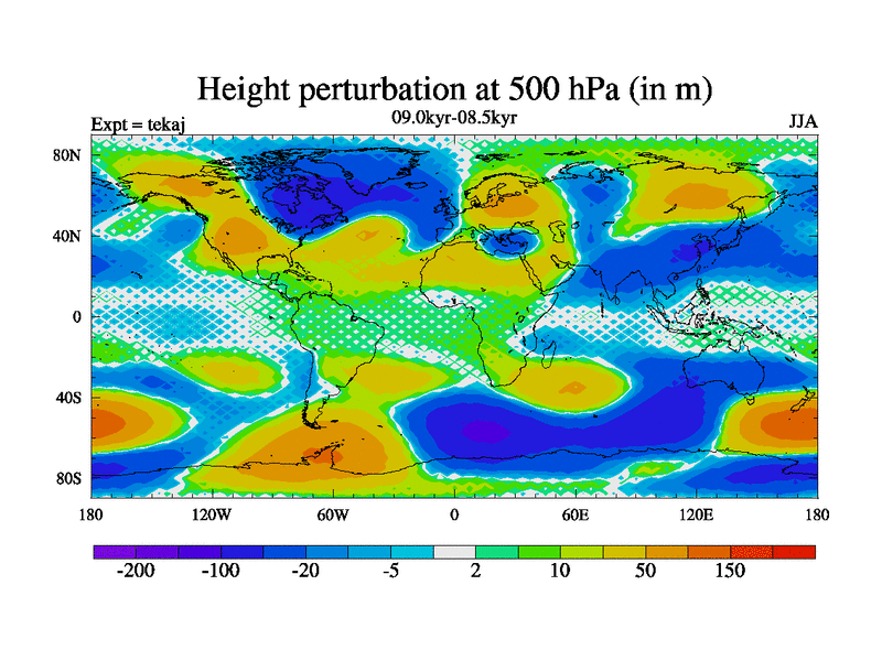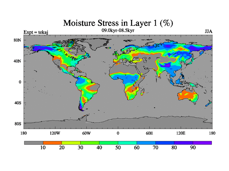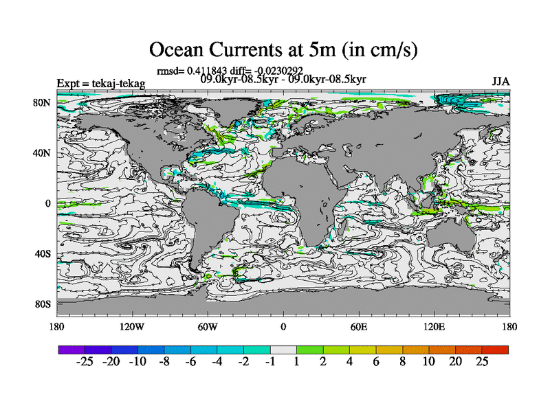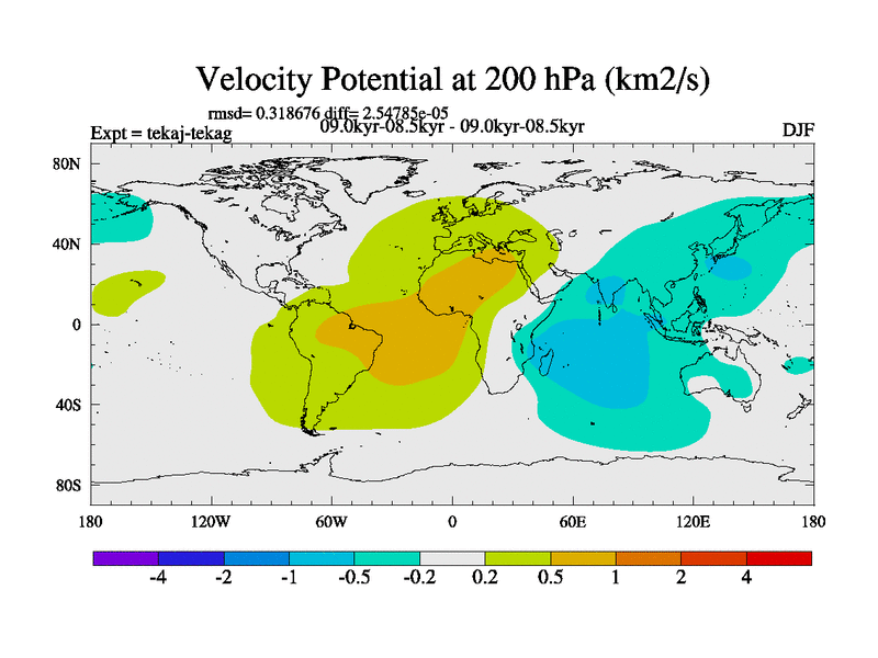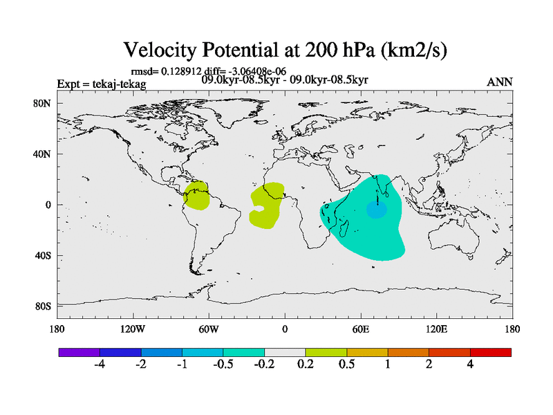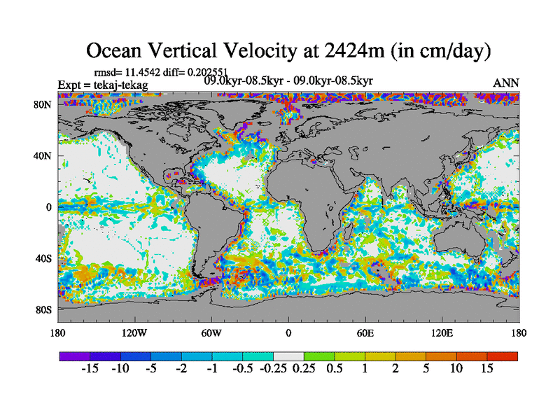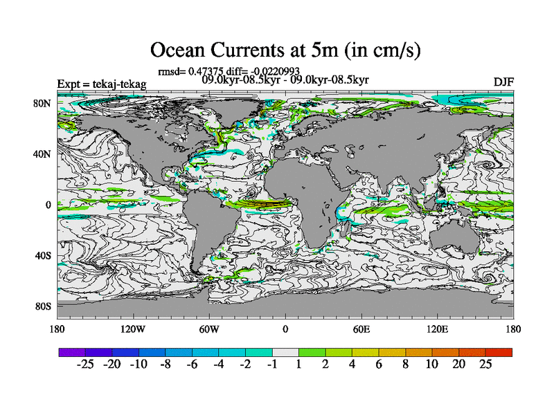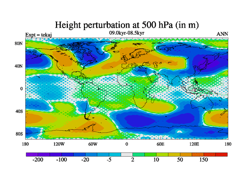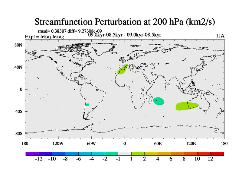 This is part of our deglaciation simulations. All forcings included except melt water fluxes. This series originally started from the tdphm spinup. Revised runoff maps, Russian rivers to Arctic. This vresion uses real meltwater fluxes. |