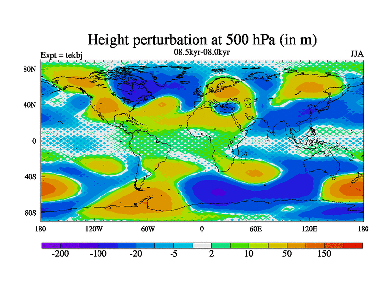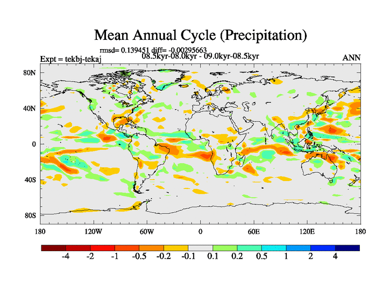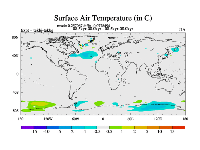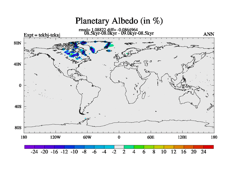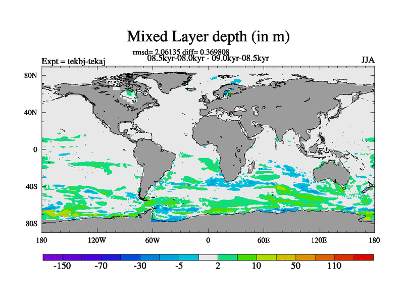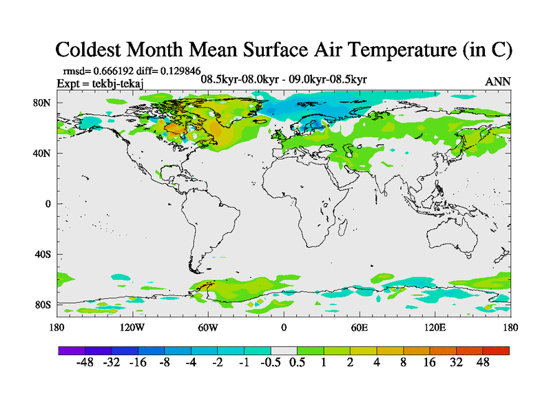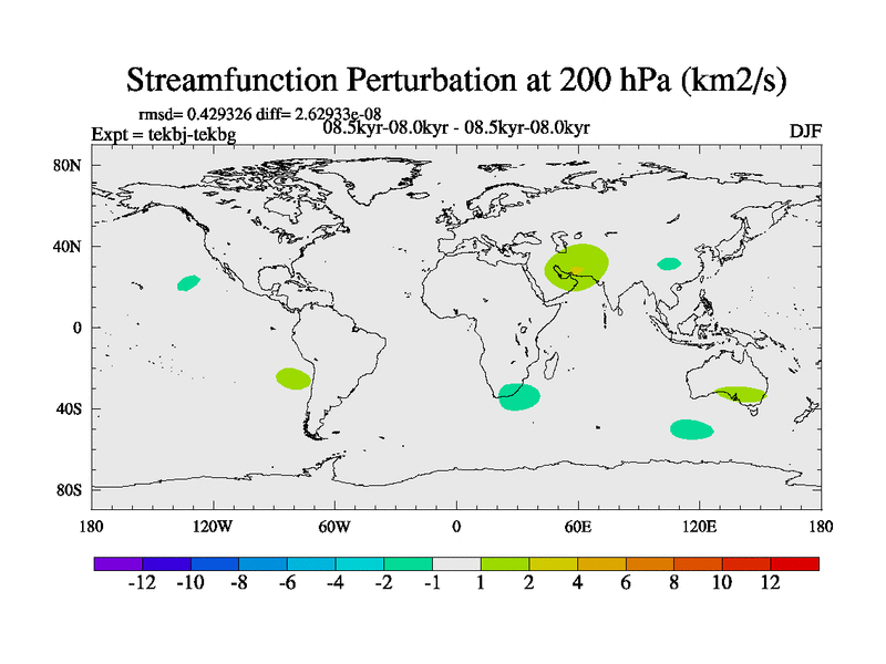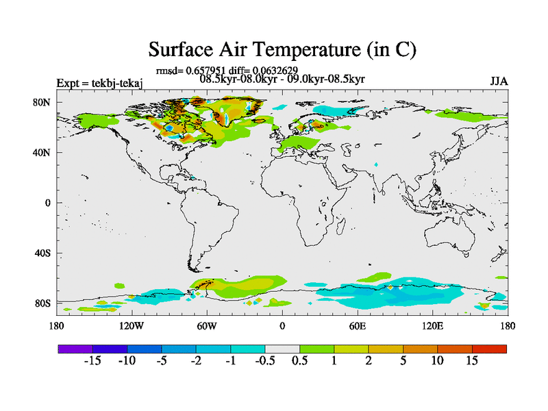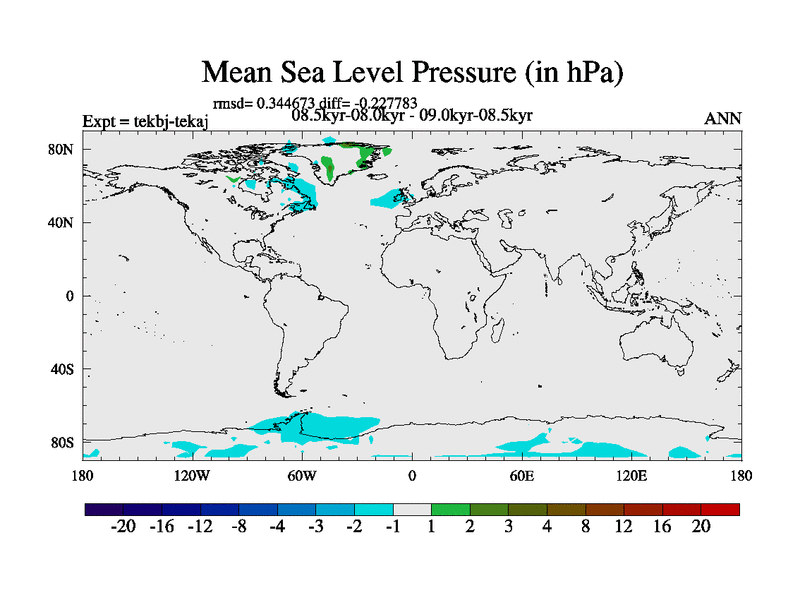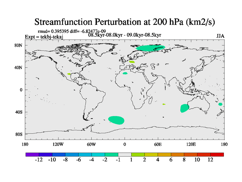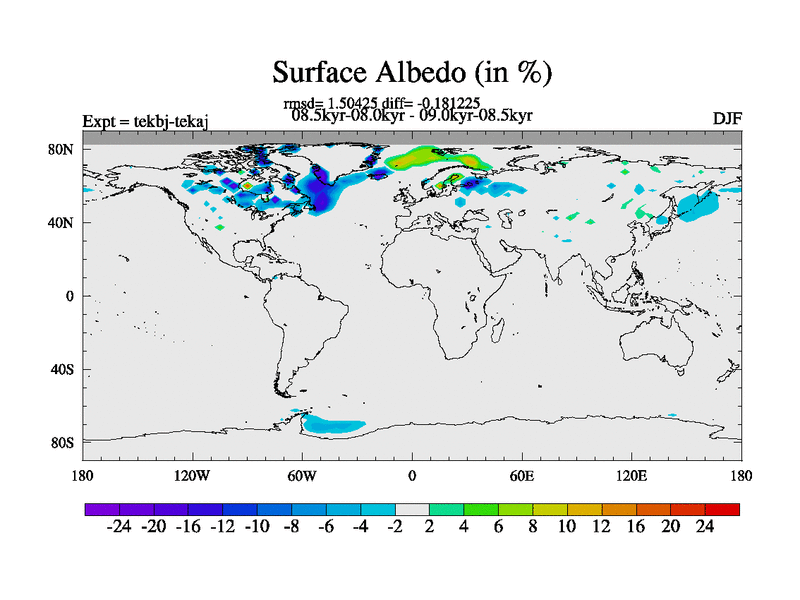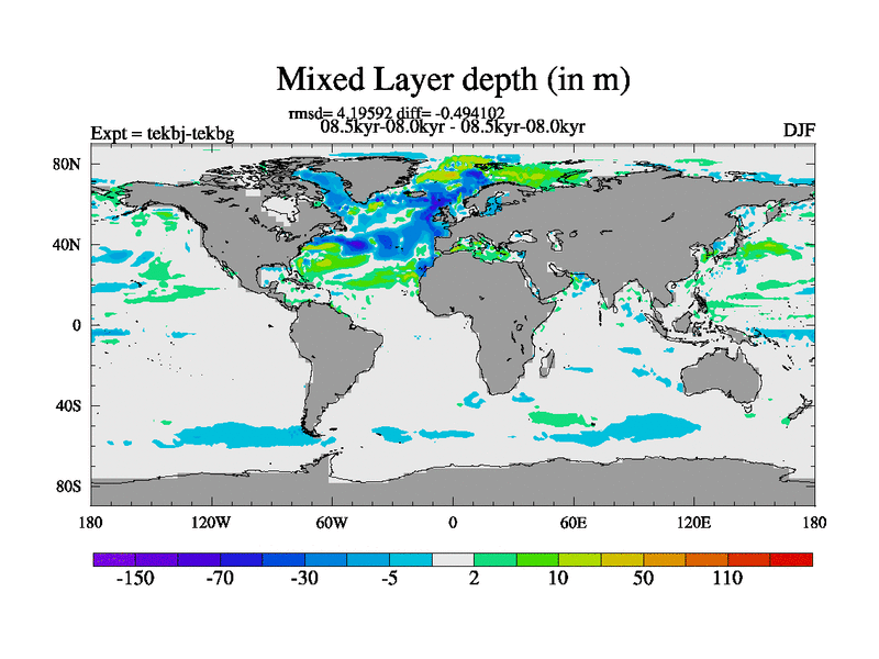 This is part of our deglaciation simulations. All forcings included except melt water fluxes. This series originally started from the tdphm spinup. Revised runoff maps, Russian rivers to Arctic. This vresion uses real meltwater fluxes. |