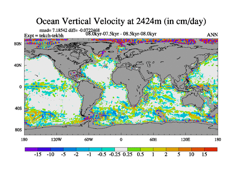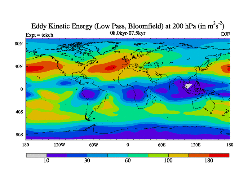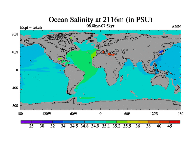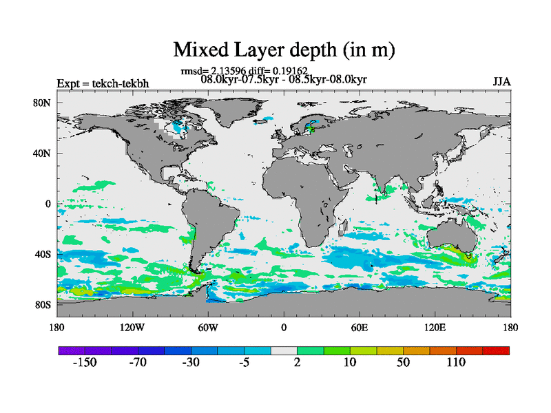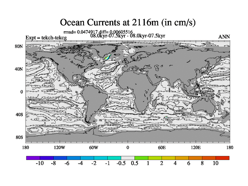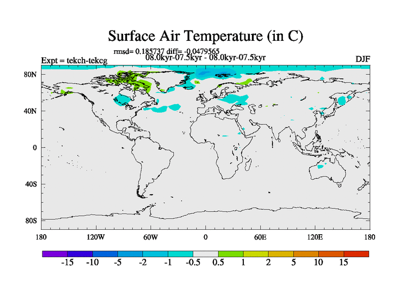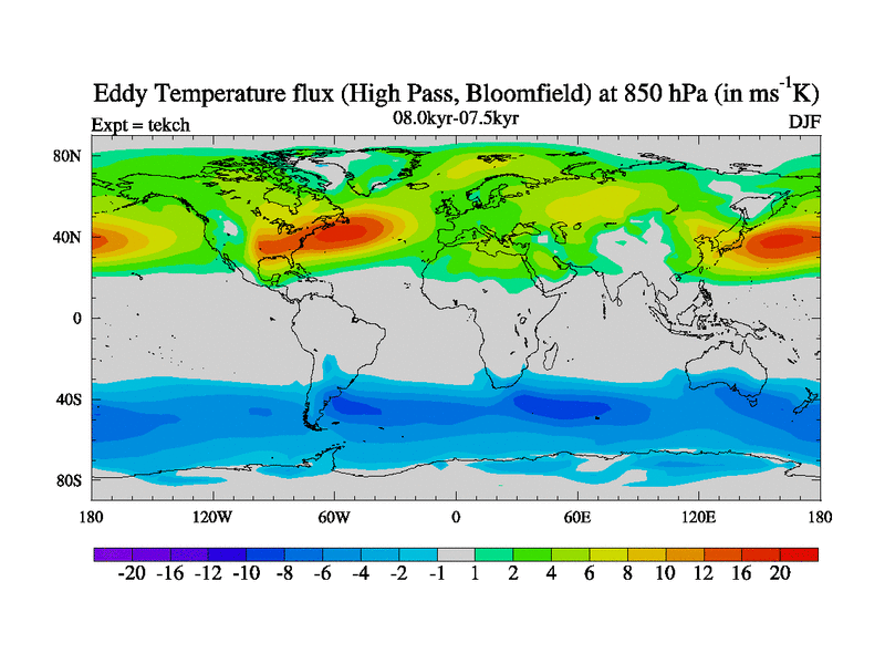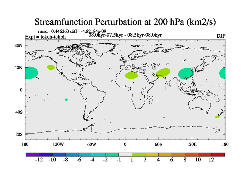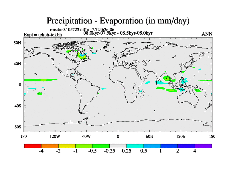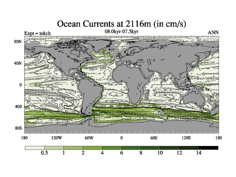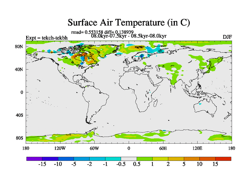 This is part of our deglaciation simulations. All forcings included except melt water fluxes. This series originally started from the tdphm spinup. Revised runoff maps, Russian rivers to Med. This vresion uses real meltwater fluxes. |