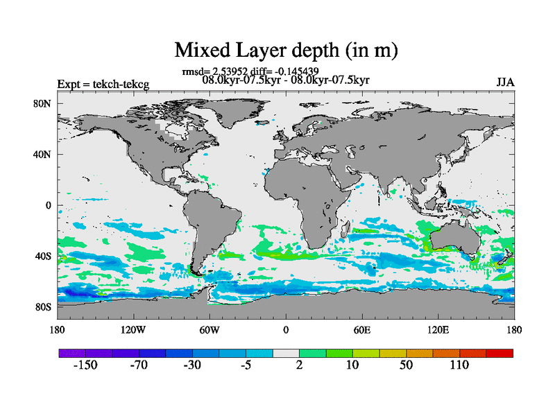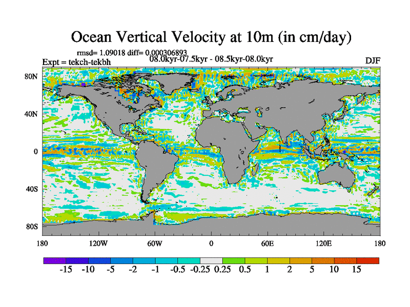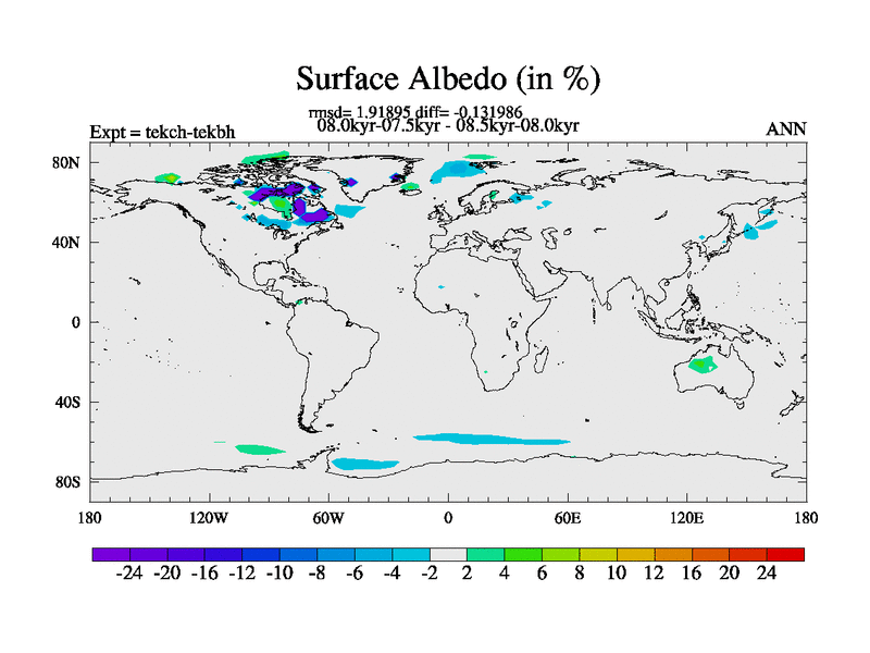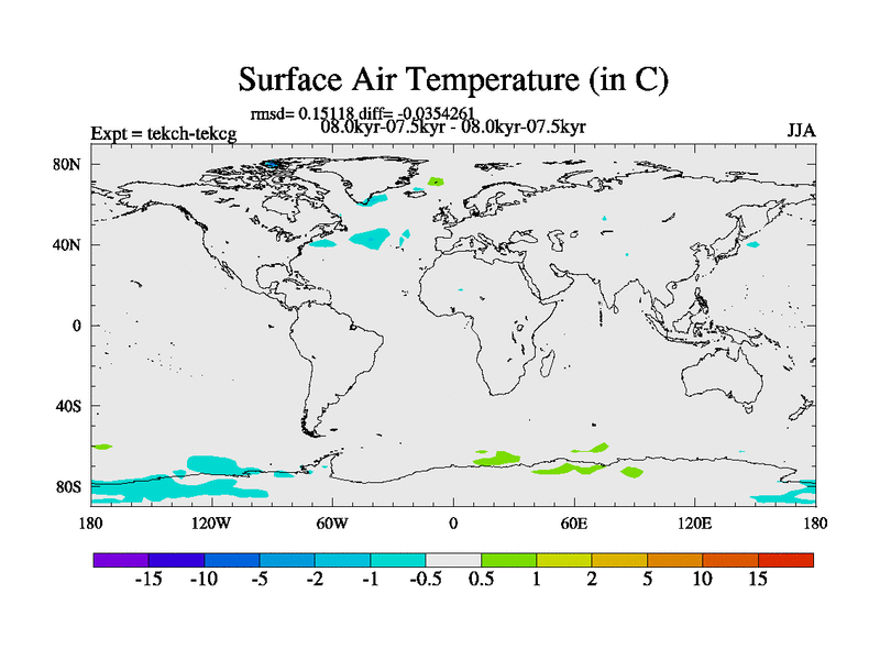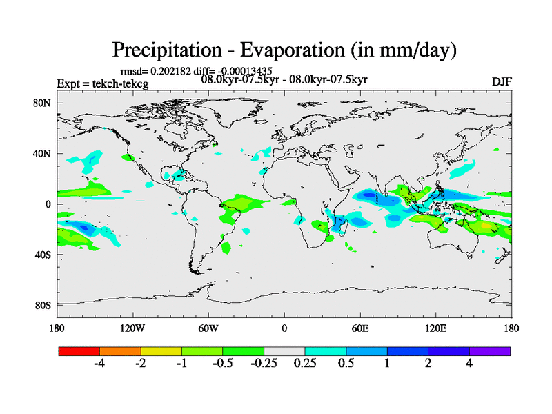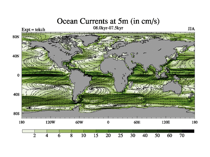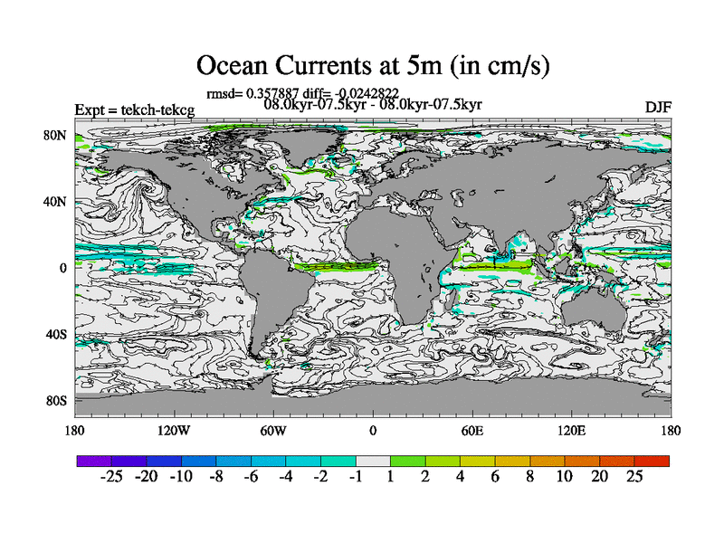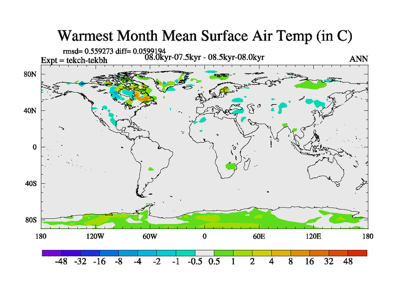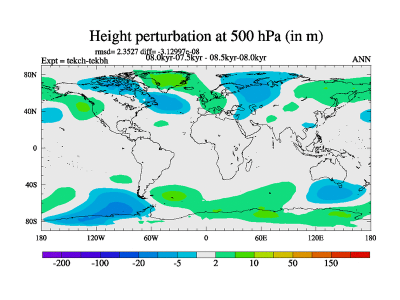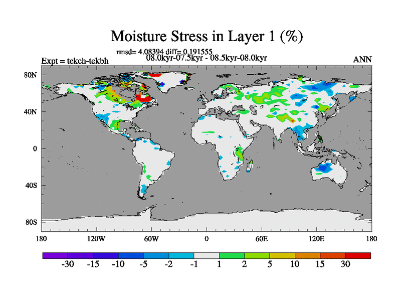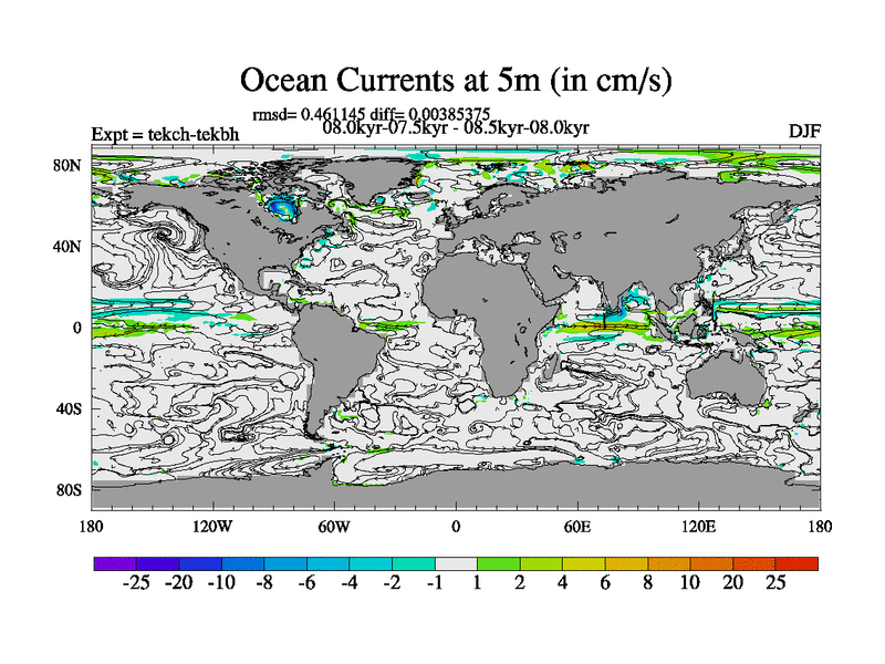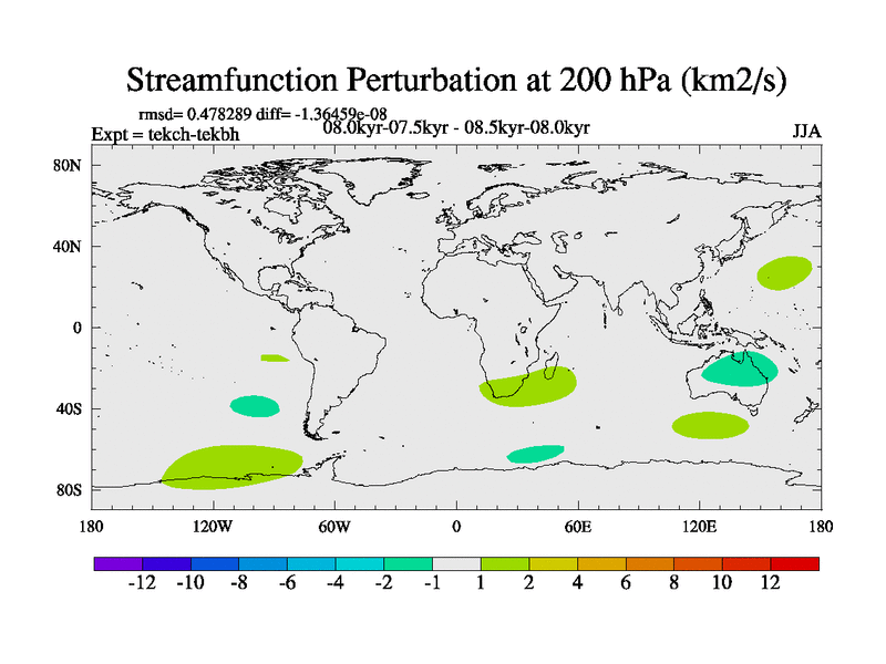 This is part of our deglaciation simulations. All forcings included except melt water fluxes. This series originally started from the tdphm spinup. Revised runoff maps, Russian rivers to Med. This vresion uses real meltwater fluxes. |