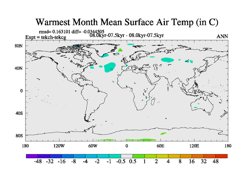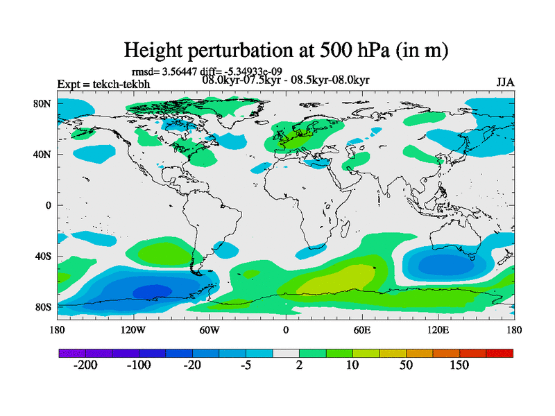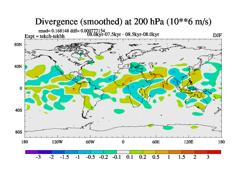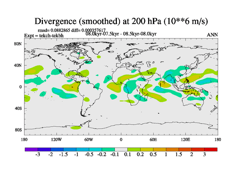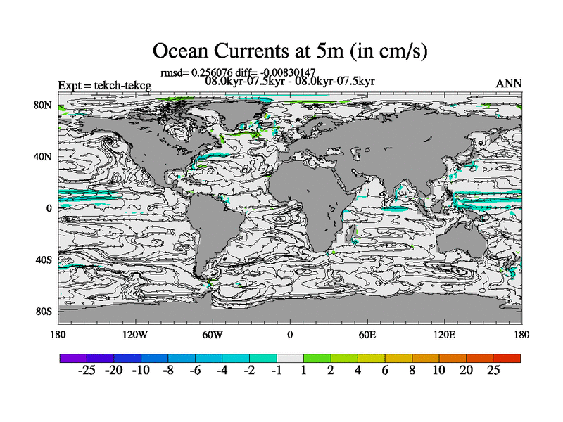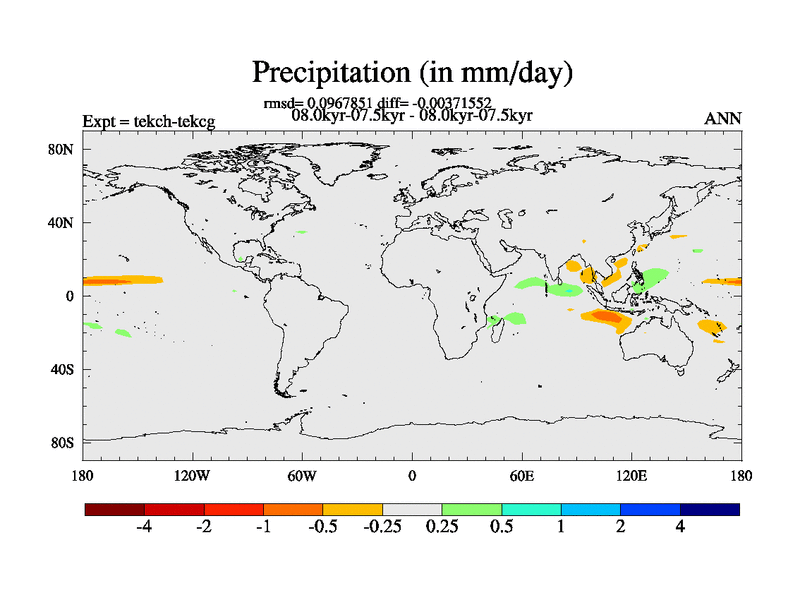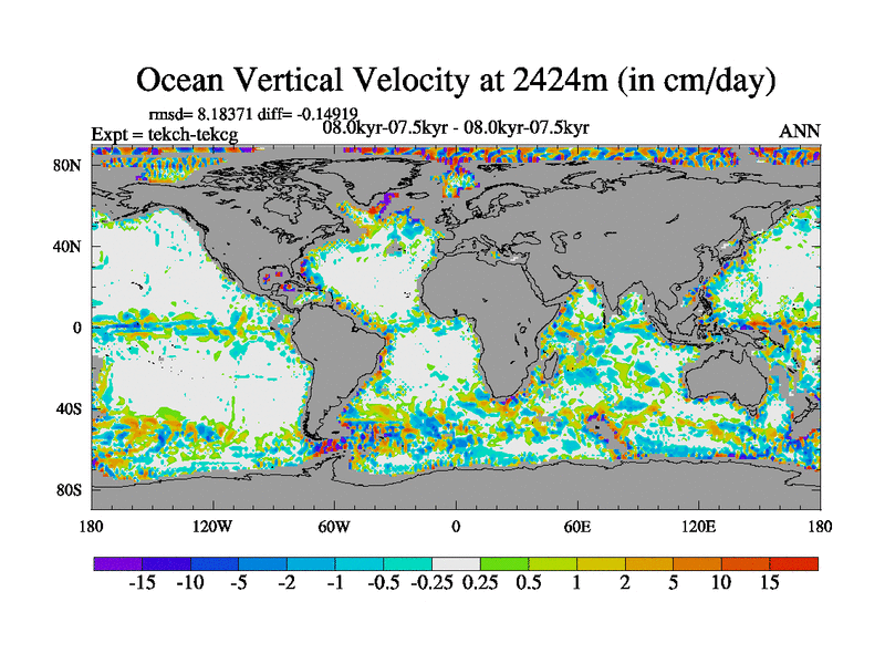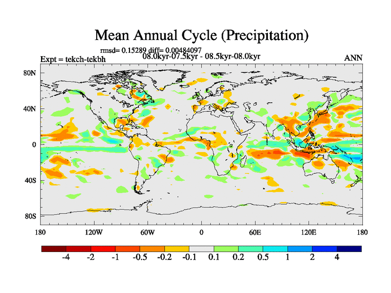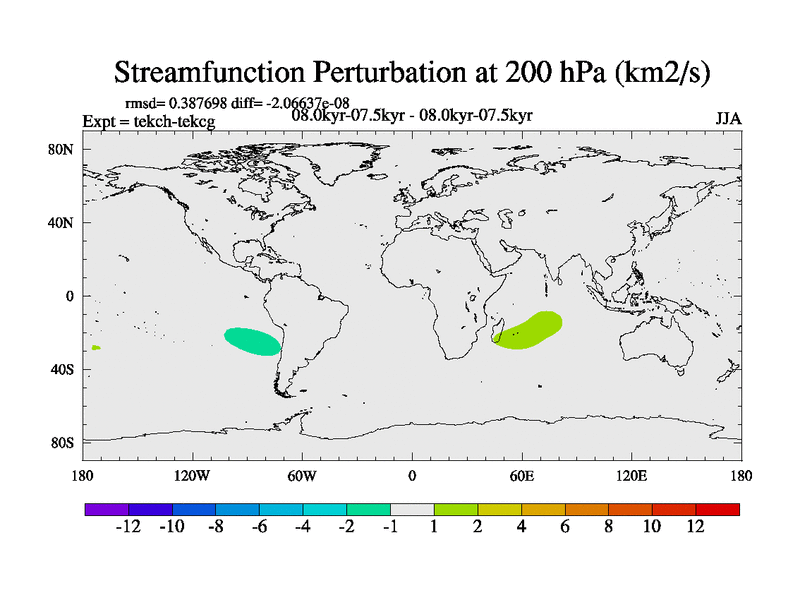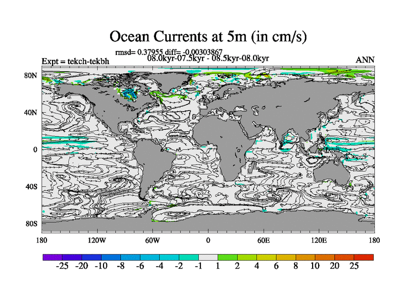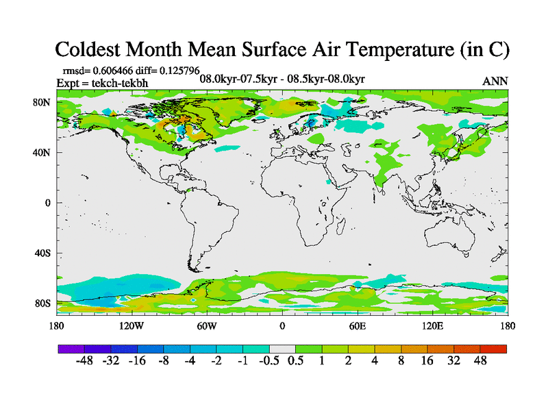 This is part of our deglaciation simulations. All forcings included except melt water fluxes. This series originally started from the tdphm spinup. Revised runoff maps, Russian rivers to Med. This vresion uses real meltwater fluxes. |