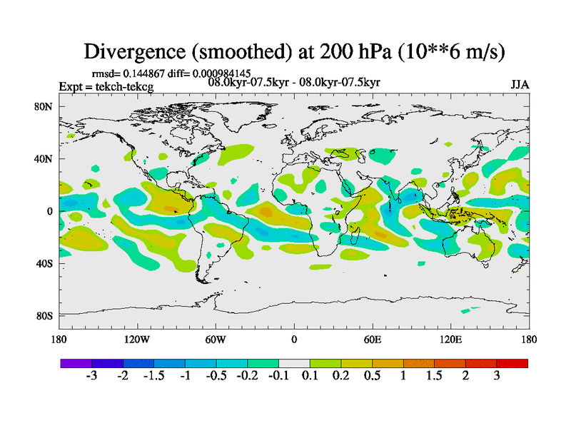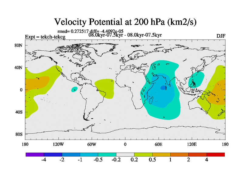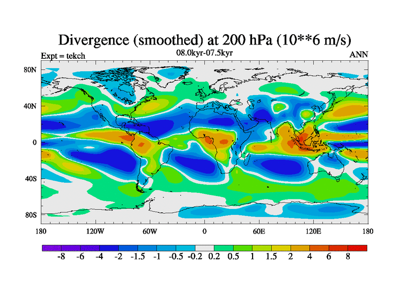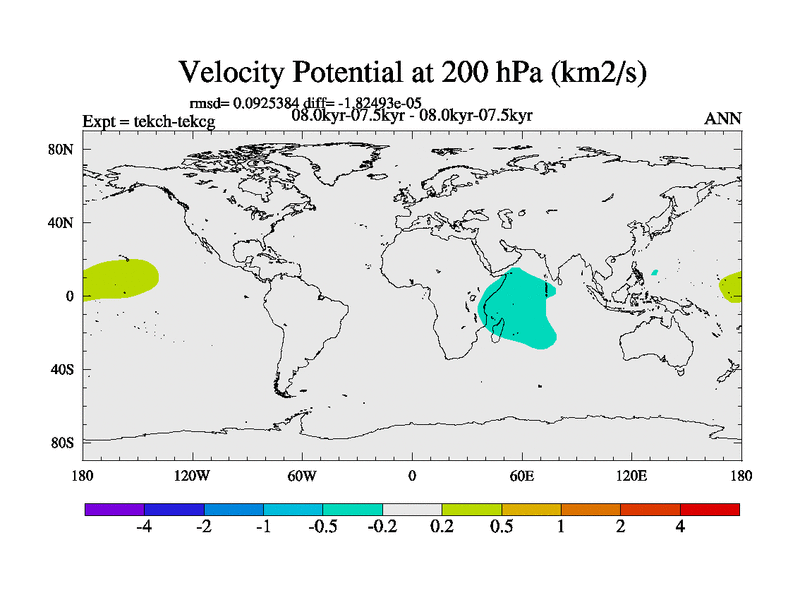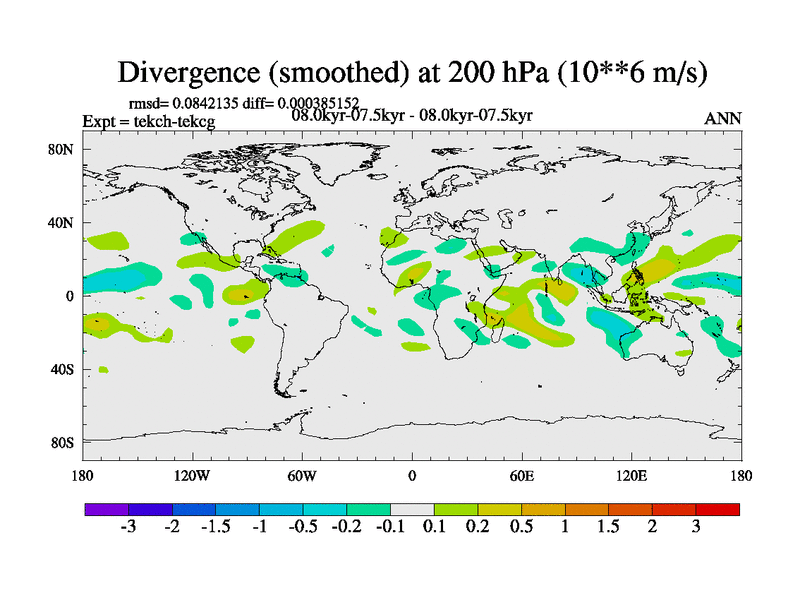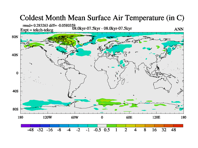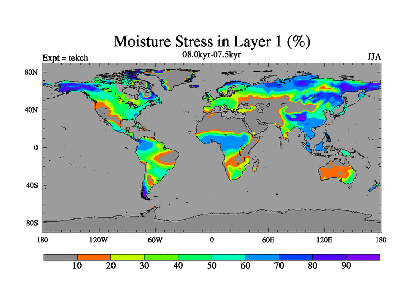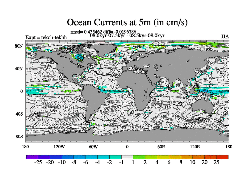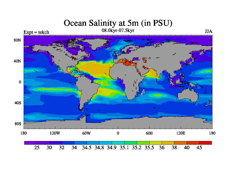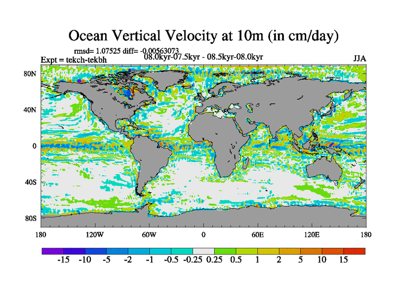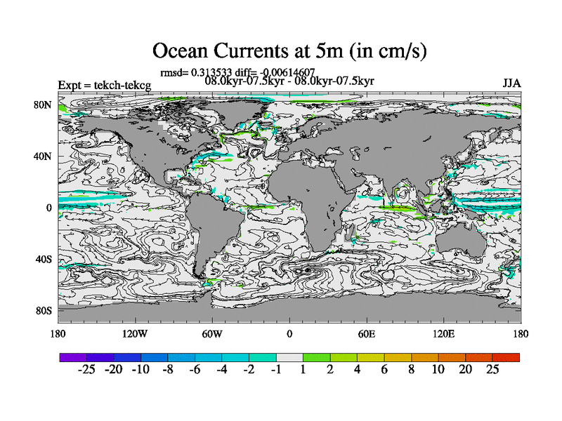 This is part of our deglaciation simulations. All forcings included except melt water fluxes. This series originally started from the tdphm spinup. Revised runoff maps, Russian rivers to Med. This vresion uses real meltwater fluxes. |