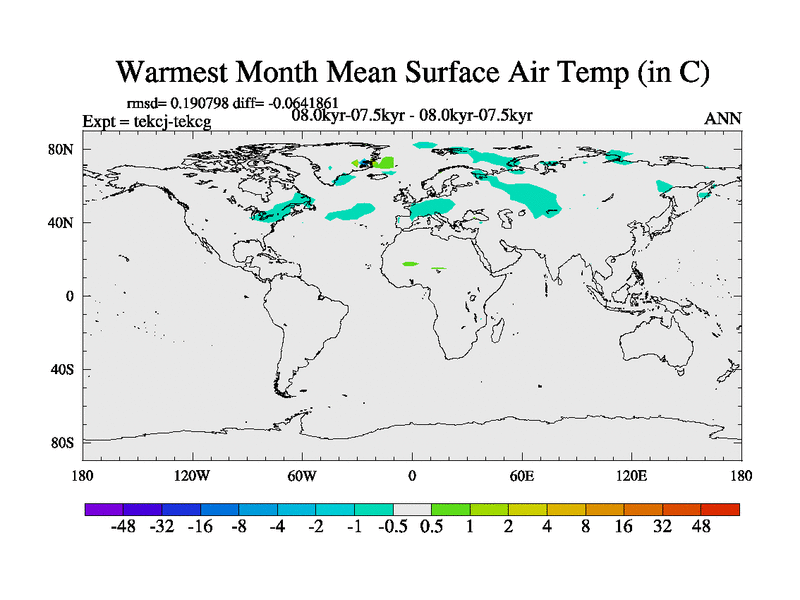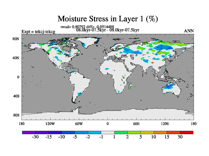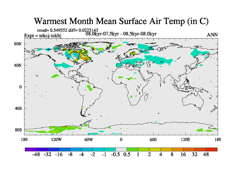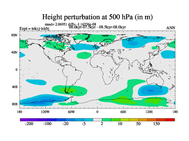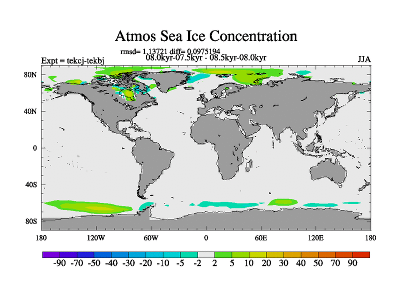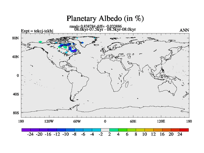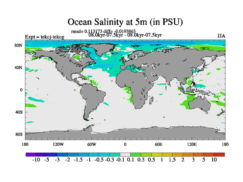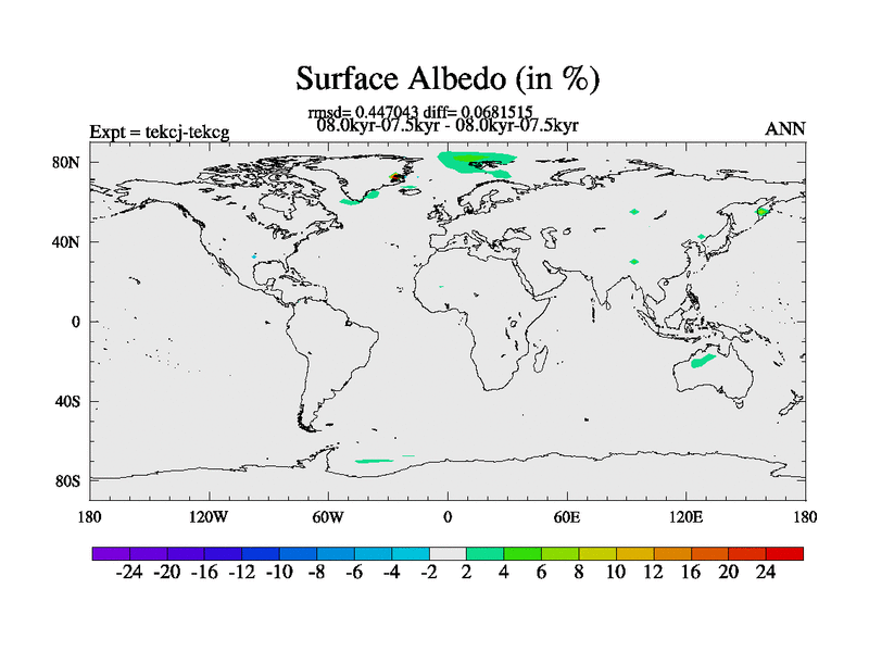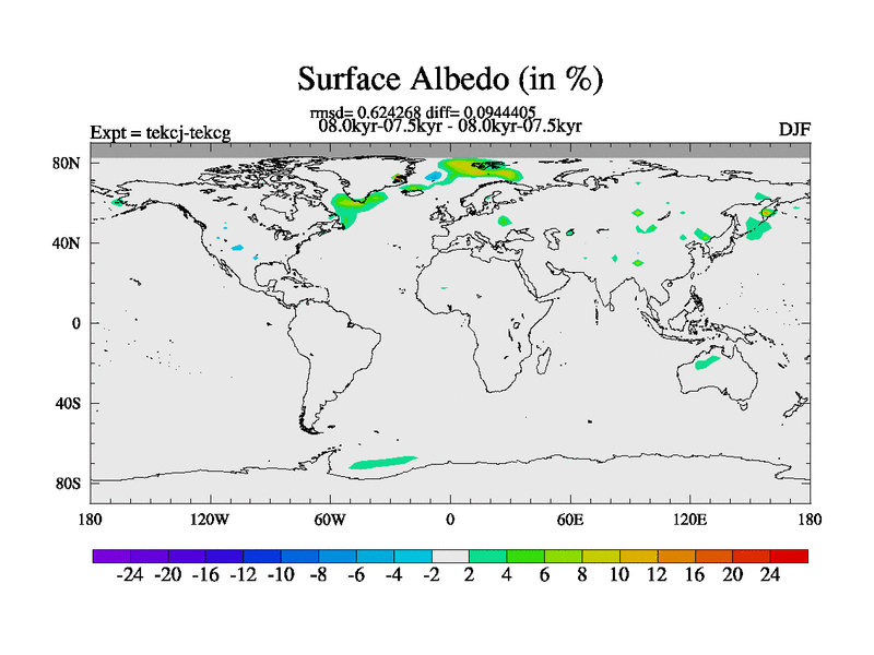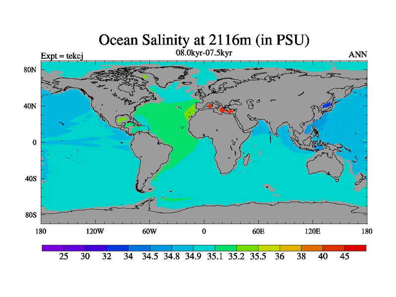 This is part of our deglaciation simulations. All forcings included except melt water fluxes. This series originally started from the tdphm spinup. Revised runoff maps, Russian rivers to Arctic. This vresion uses real meltwater fluxes. |