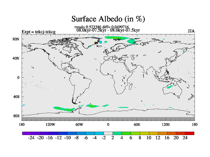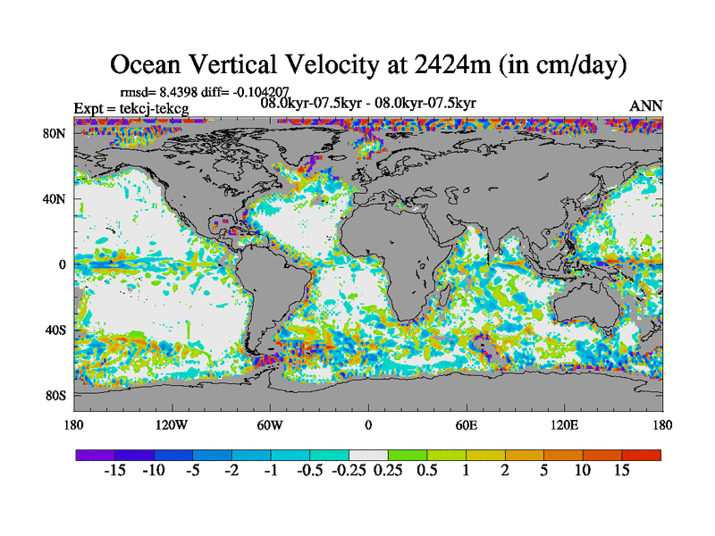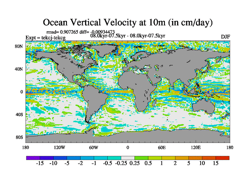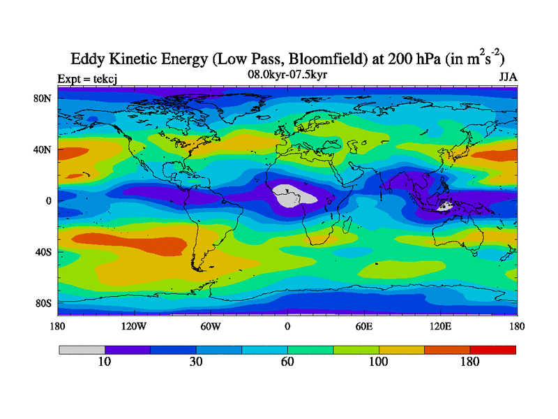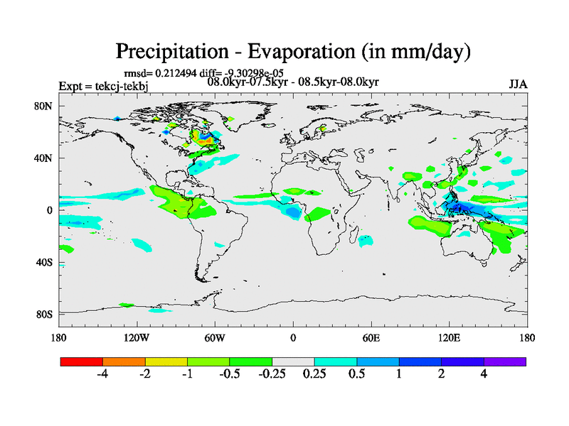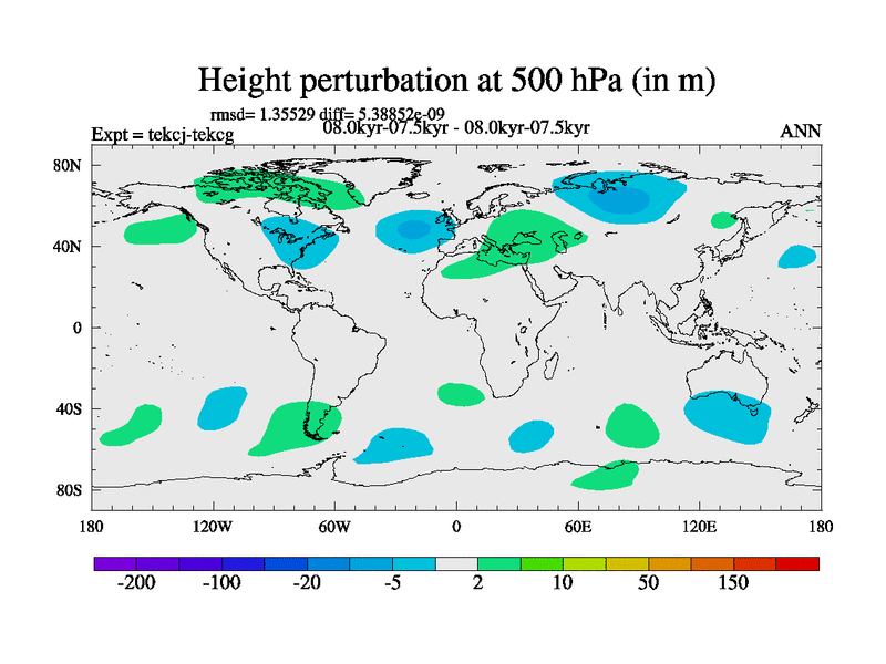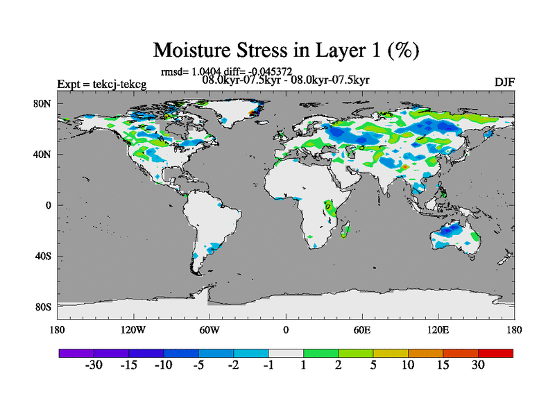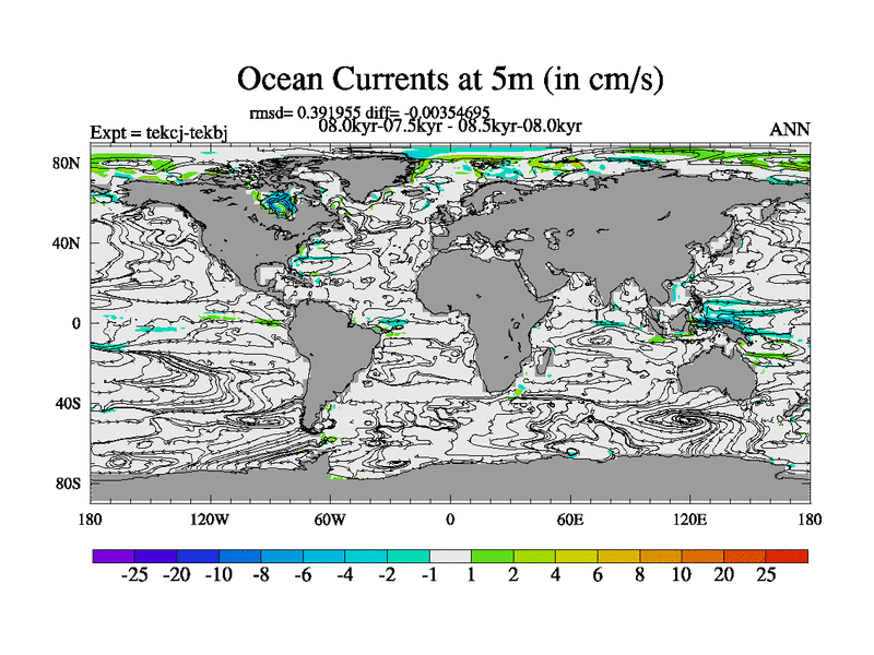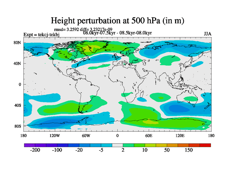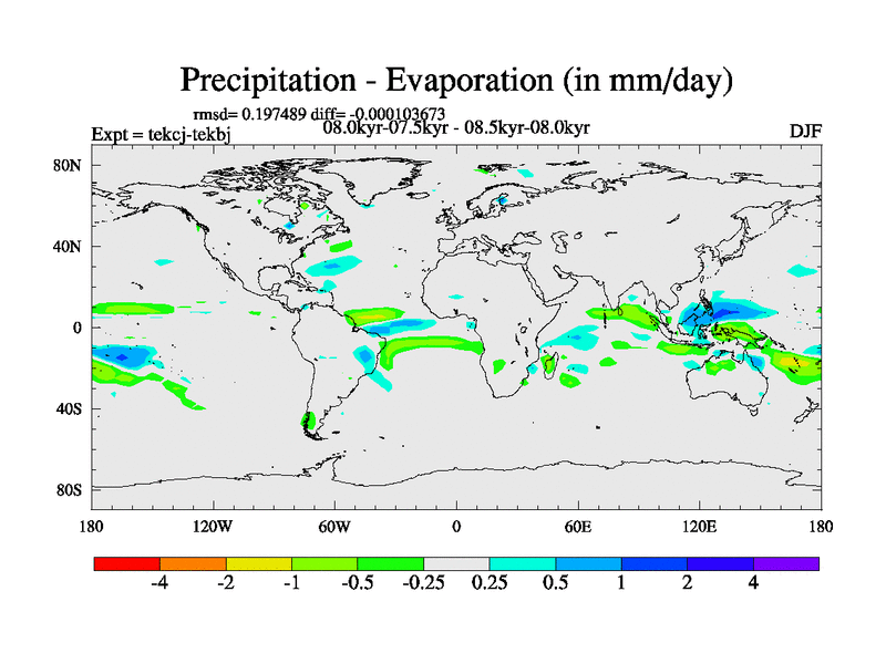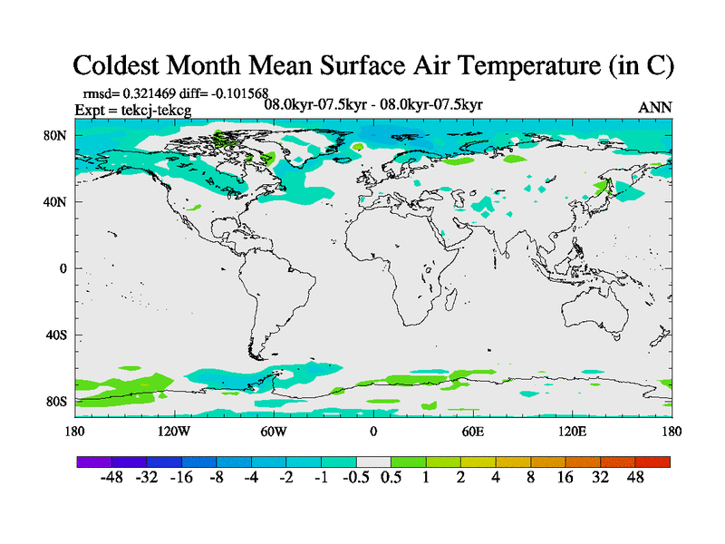 This is part of our deglaciation simulations. All forcings included except melt water fluxes. This series originally started from the tdphm spinup. Revised runoff maps, Russian rivers to Arctic. This vresion uses real meltwater fluxes. |