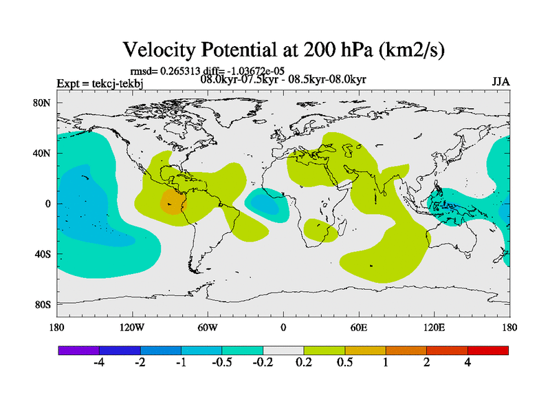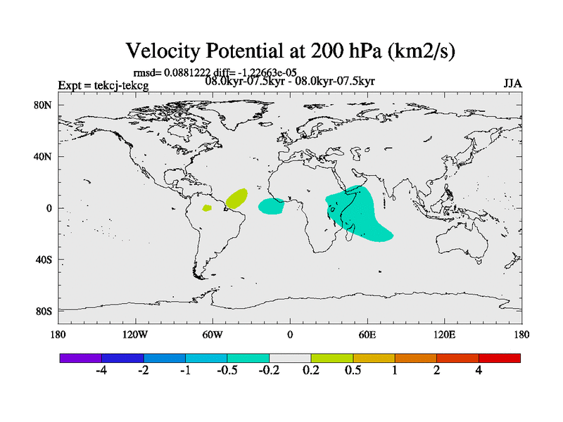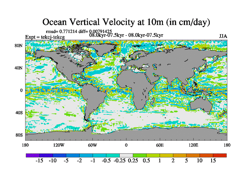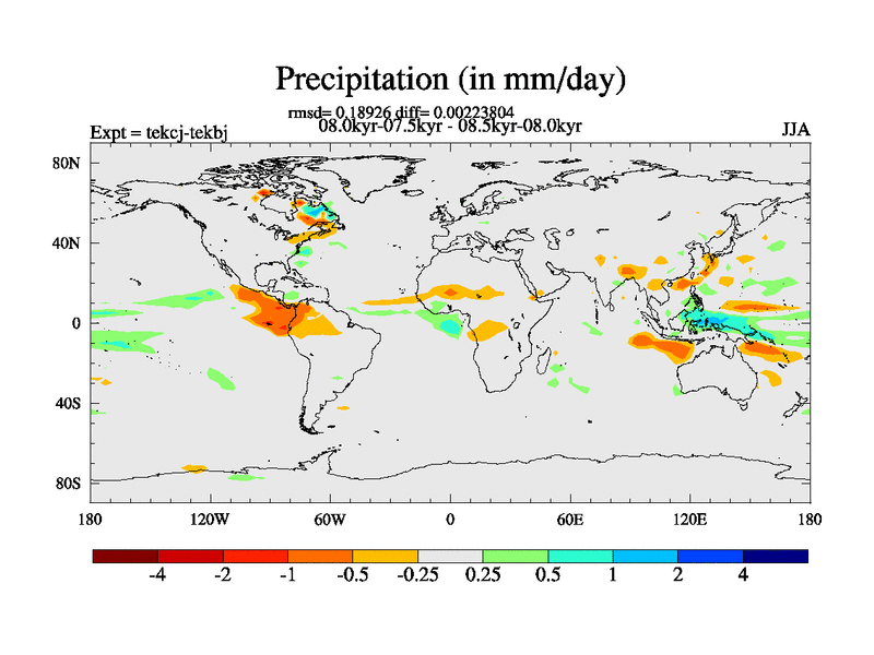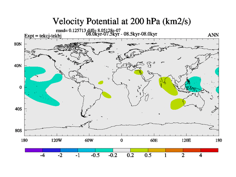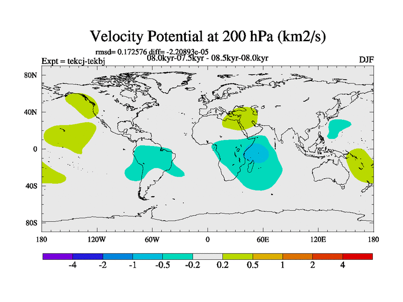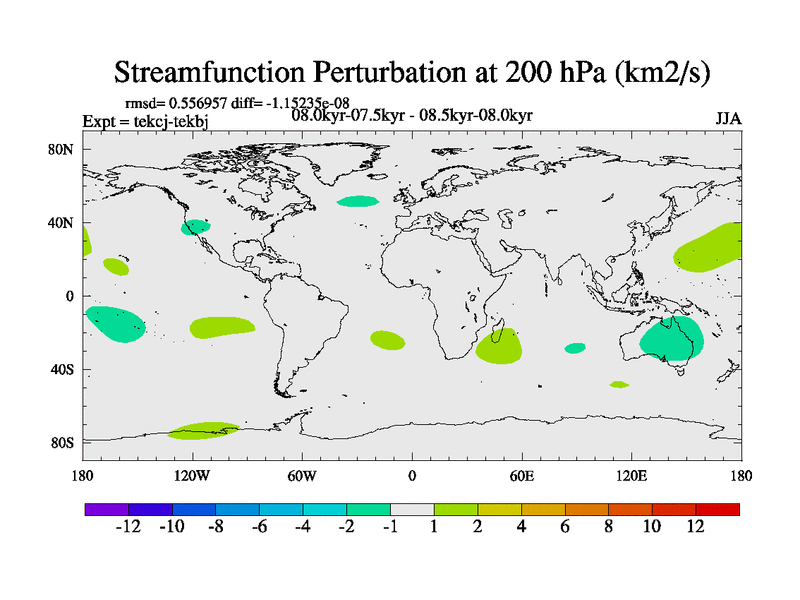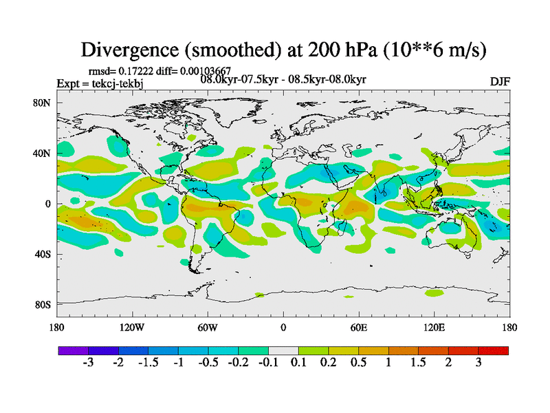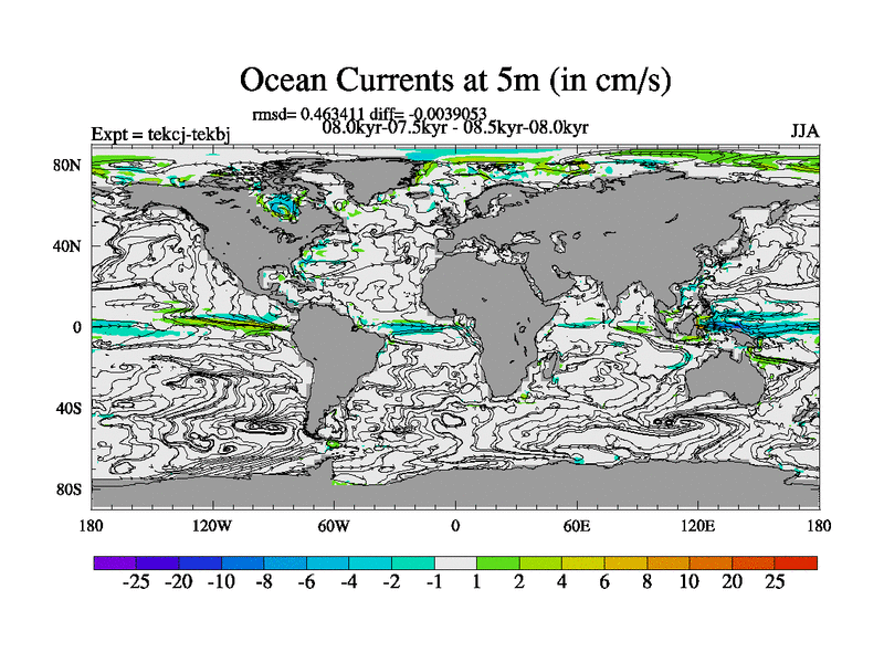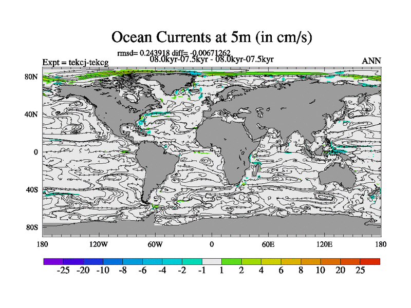 This is part of our deglaciation simulations. All forcings included except melt water fluxes. This series originally started from the tdphm spinup. Revised runoff maps, Russian rivers to Arctic. This vresion uses real meltwater fluxes. |