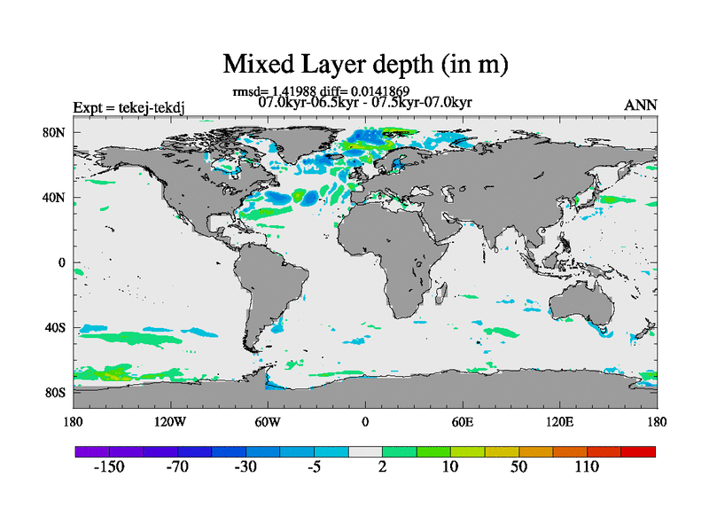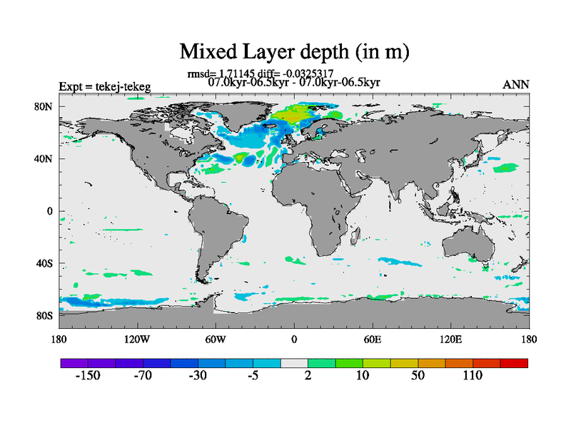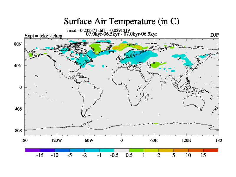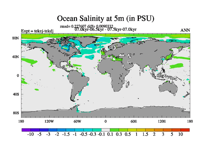 This is part of our deglaciation simulations. All forcings included except melt water fluxes. This series originally started from the tdphm spinup. Revised runoff maps, Russian rivers to Arctic. This vresion uses real meltwater fluxes.