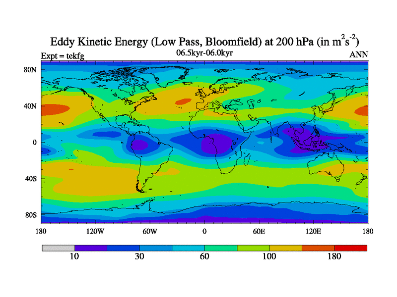 Low Pass Eddy Kinetic Energy at 200 hPa