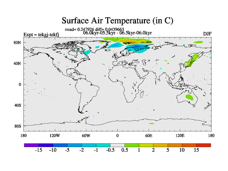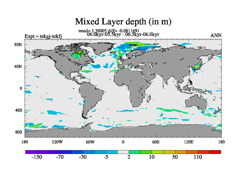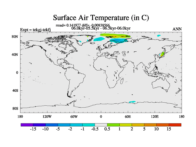 This is part of our deglaciation simulations. All forcings included except melt water fluxes. This series originally started from the tdphm spinup. Revised runoff maps, Russian rivers to Arctic. This vresion uses real meltwater fluxes. |