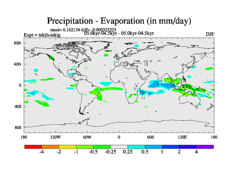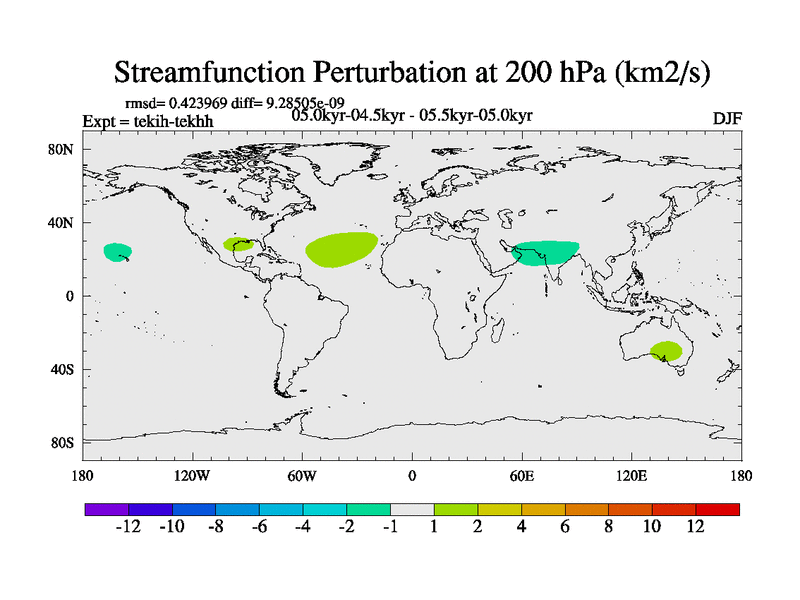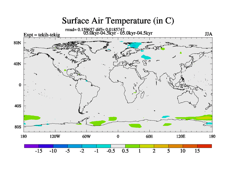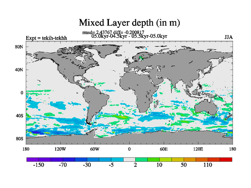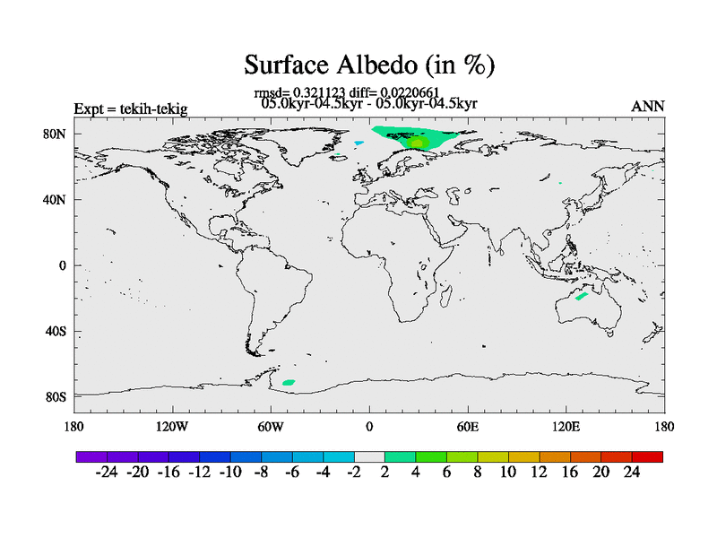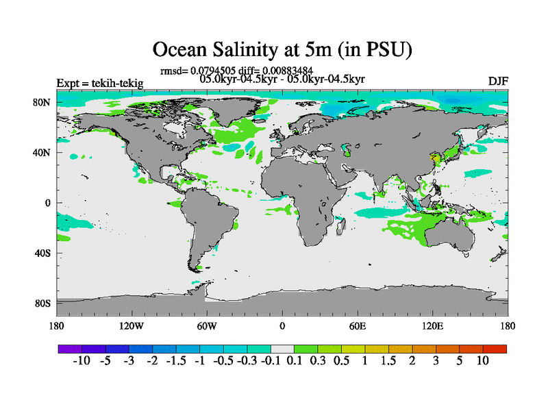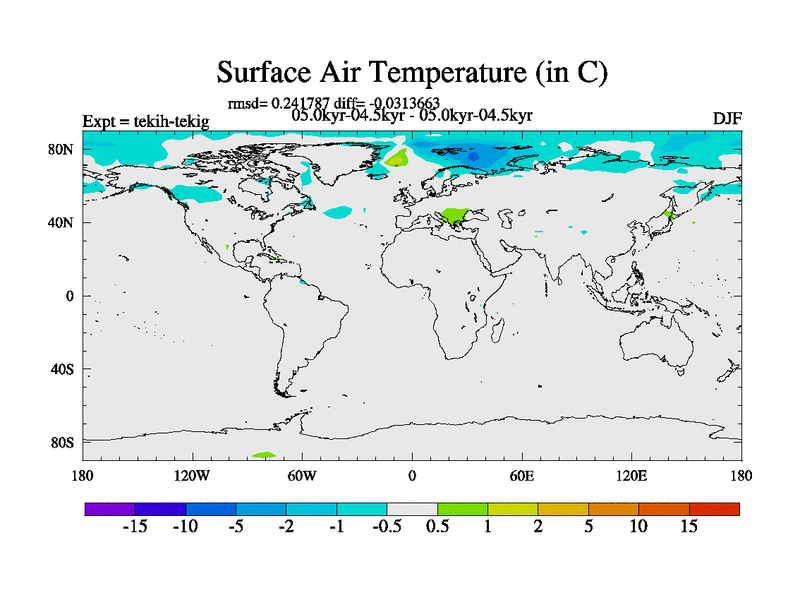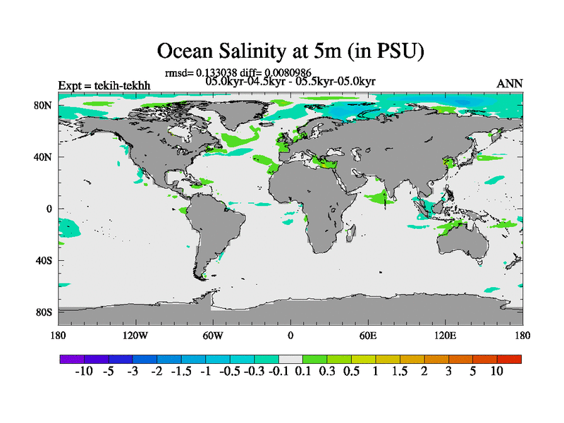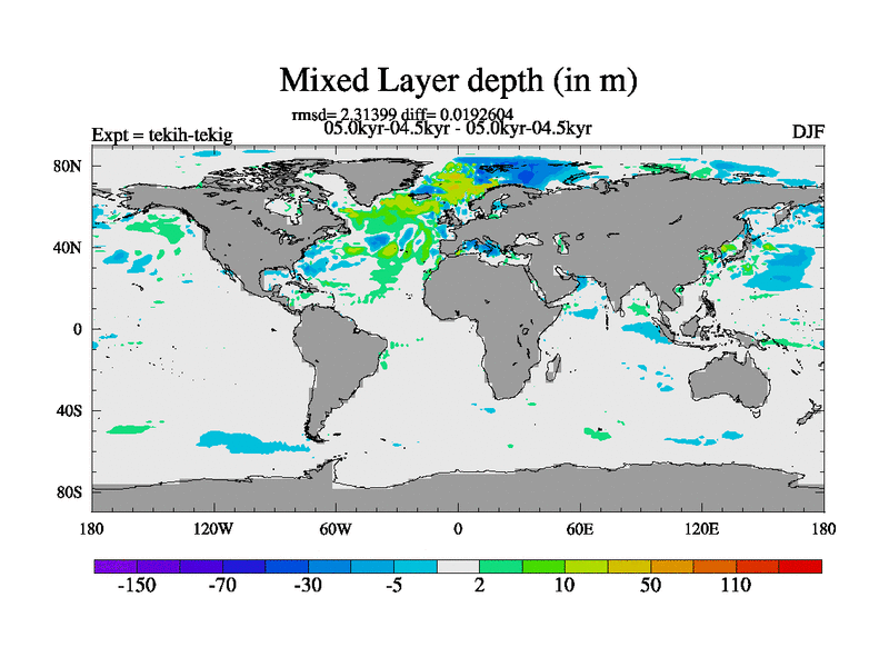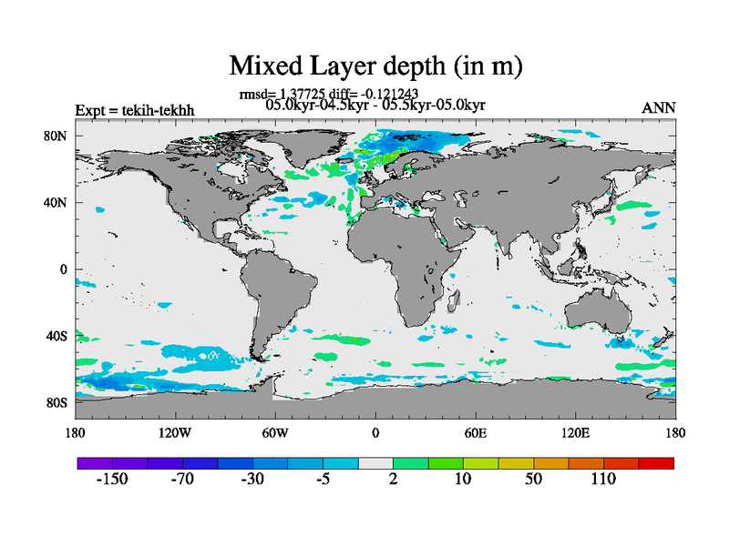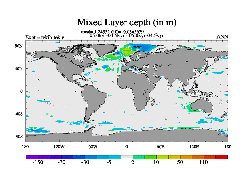 This is part of our deglaciation simulations. All forcings included except melt water fluxes. This series originally started from the tdphm spinup. Revised runoff maps, Russian rivers to Med. This vresion uses real meltwater fluxes. |