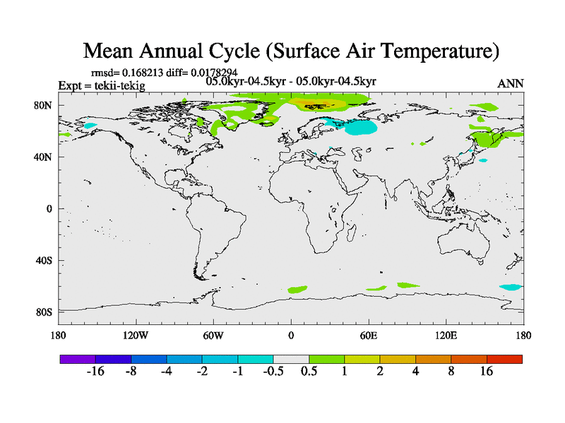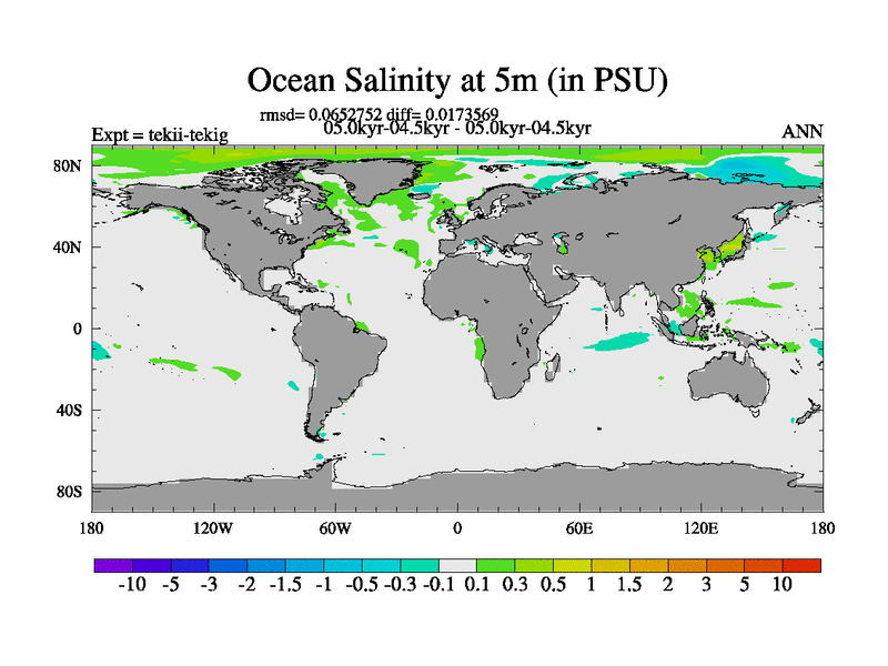 This is part of our deglaciation simulations. All forcings included except melt water fluxes. This series originally started from the tdphl spinup. Revised runoff maps, Russian rivers to Arctic. |