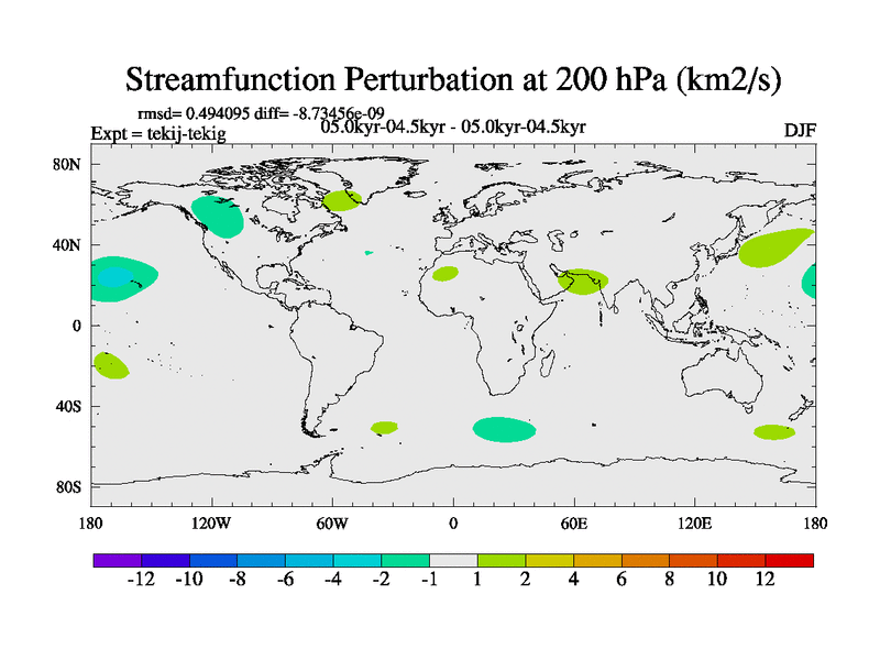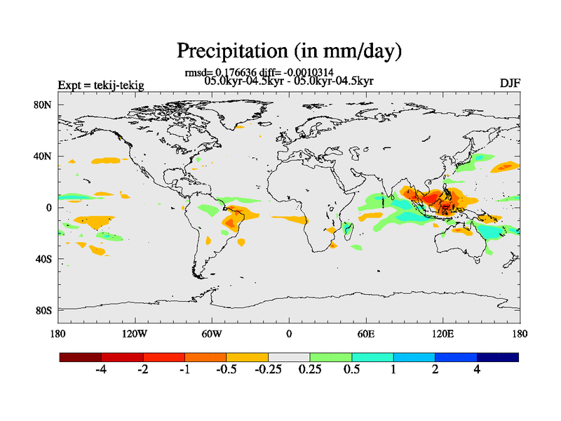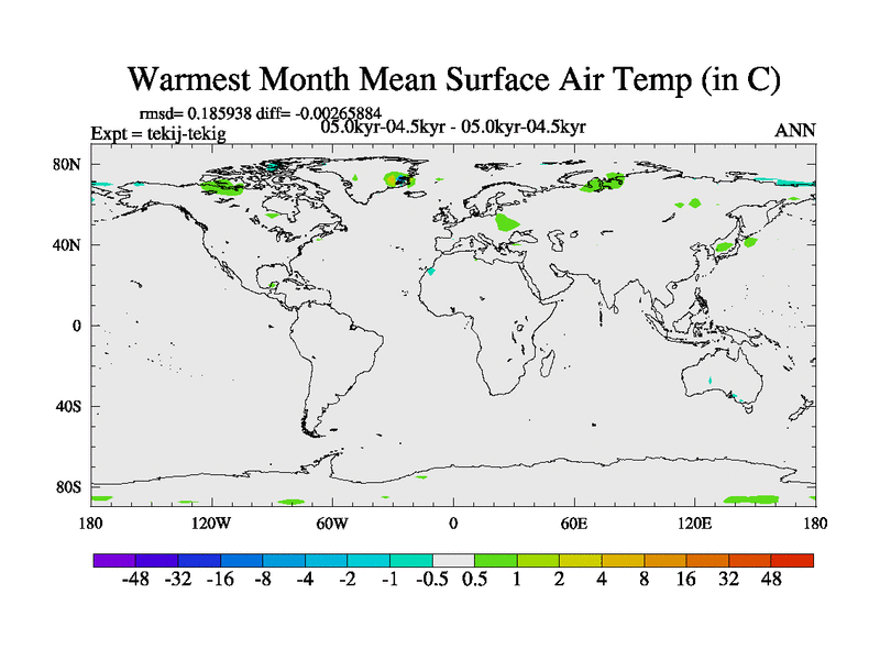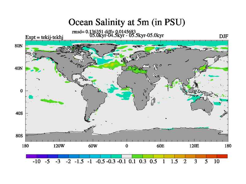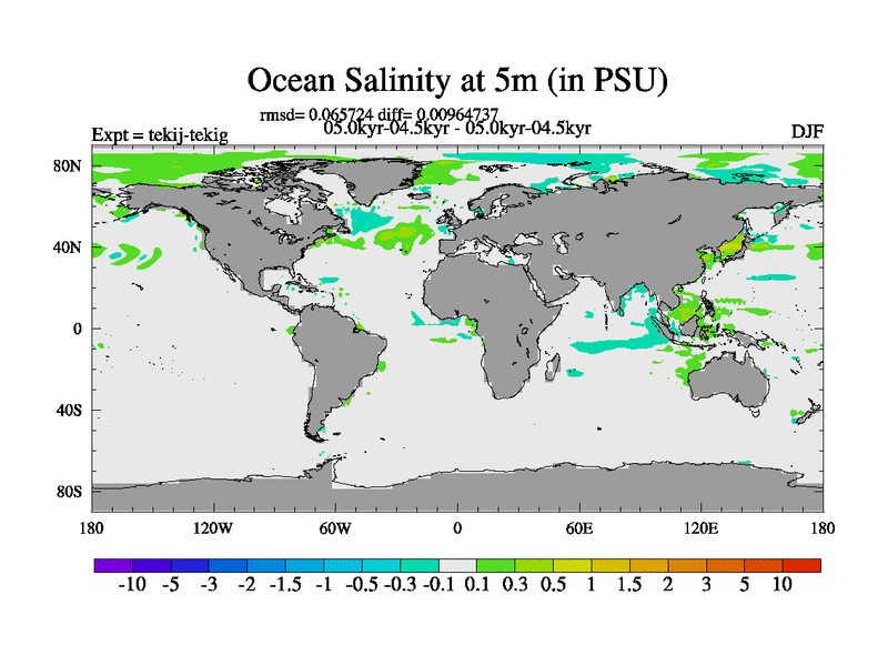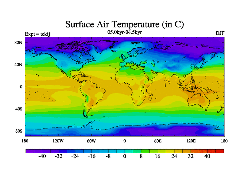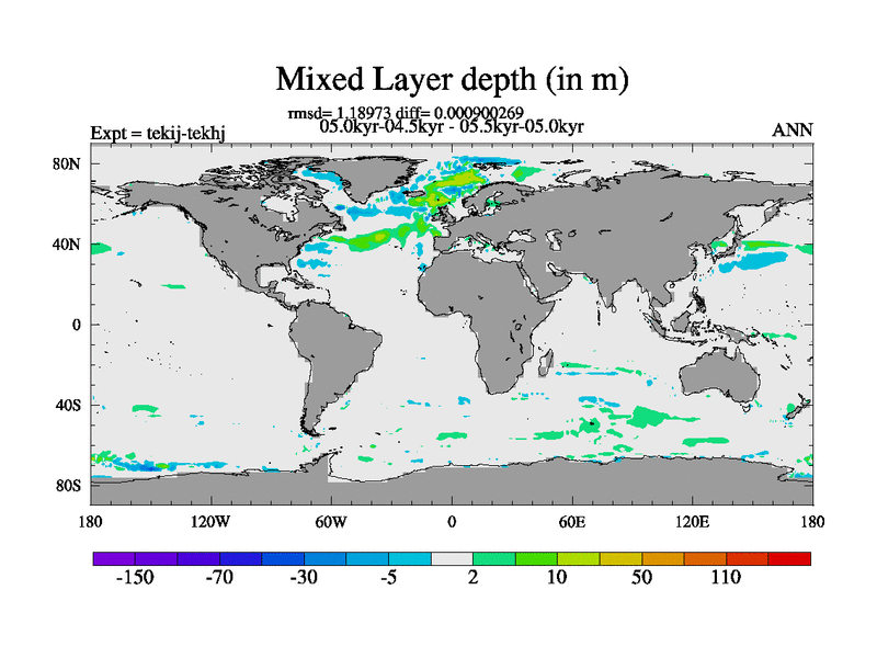 This is part of our deglaciation simulations. All forcings included except melt water fluxes. This series originally started from the tdphm spinup. Revised runoff maps, Russian rivers to Arctic. This vresion uses real meltwater fluxes. |