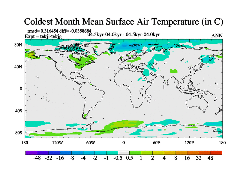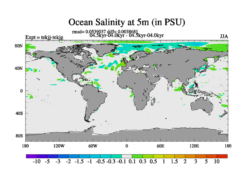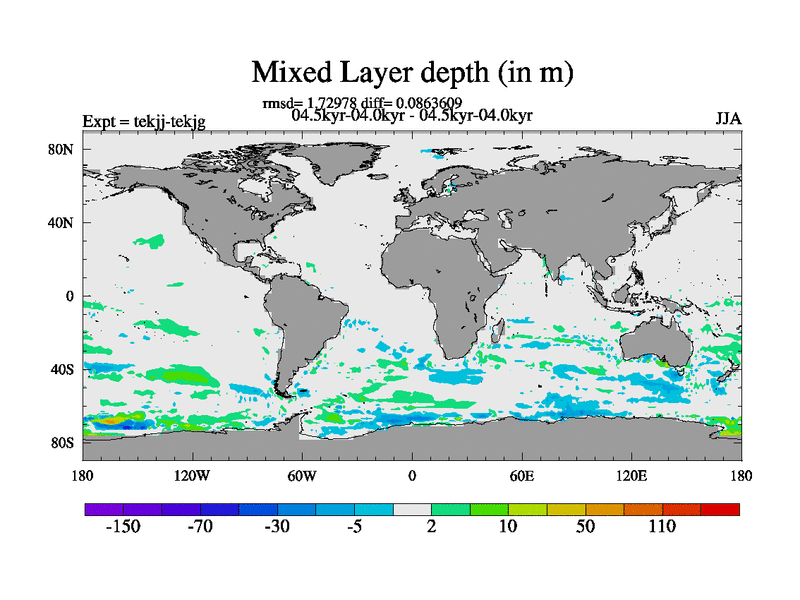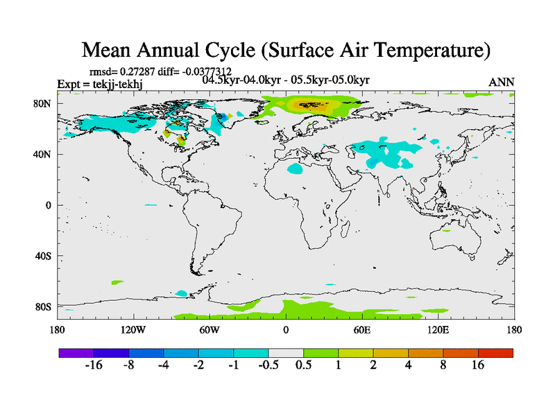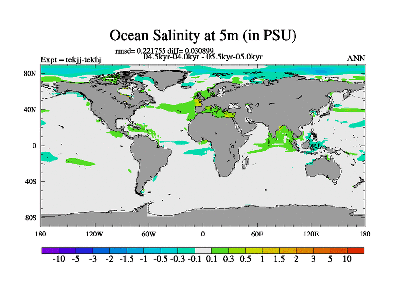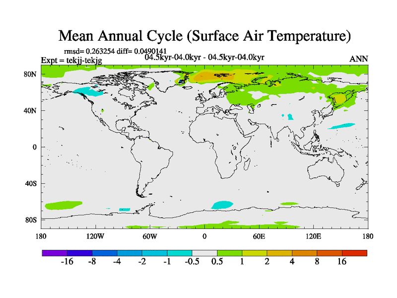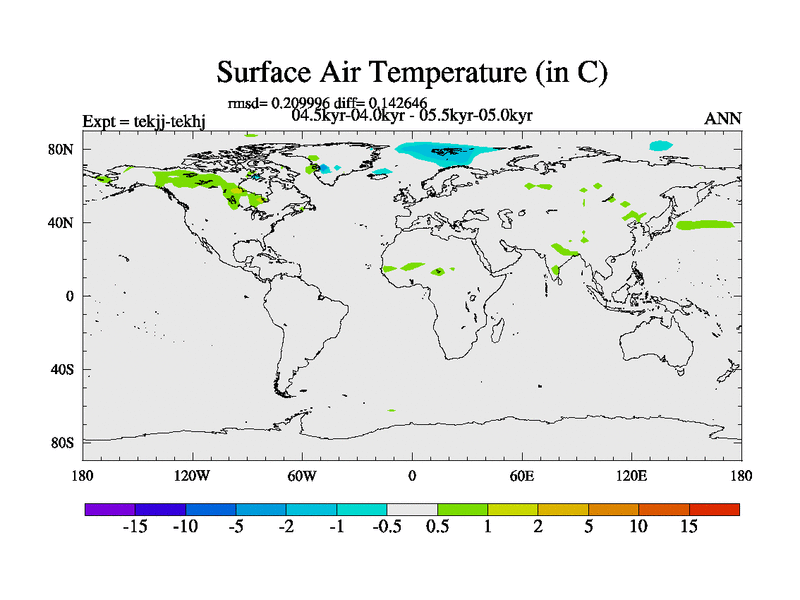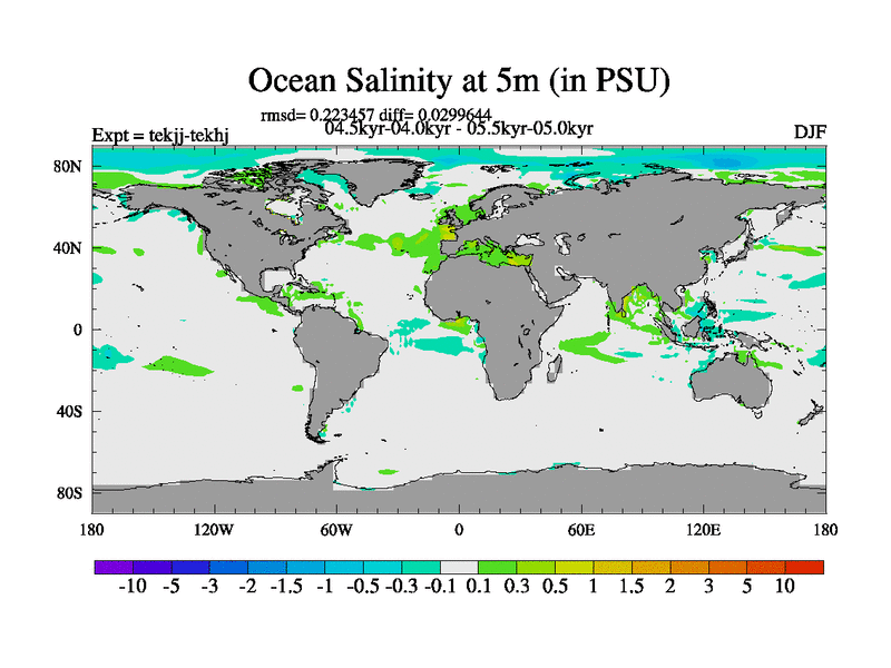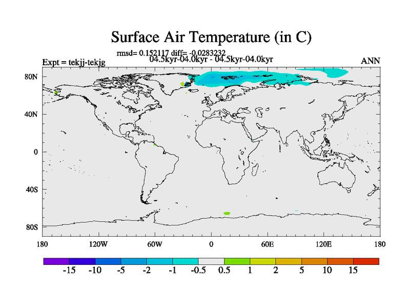 This is part of our deglaciation simulations. All forcings included except melt water fluxes. This series originally started from the tdphm spinup. Revised runoff maps, Russian rivers to Arctic. This vresion uses real meltwater fluxes. |