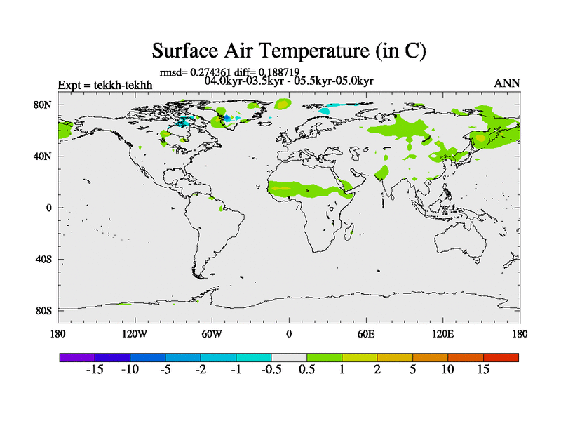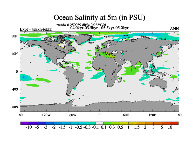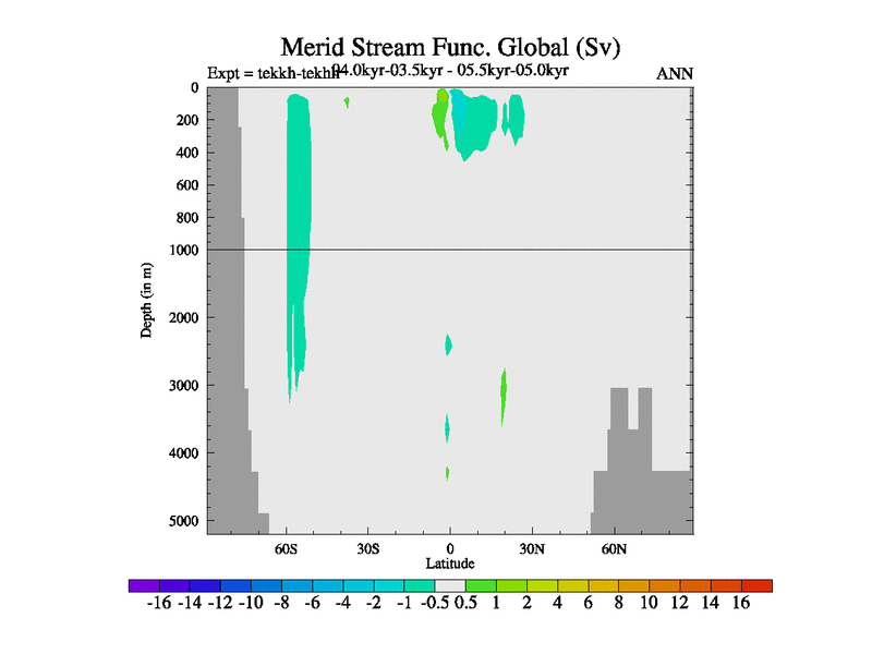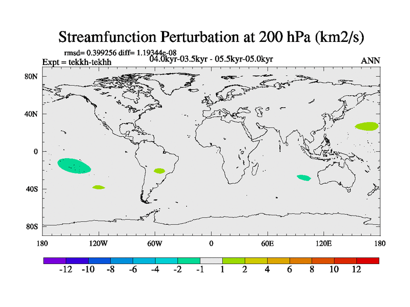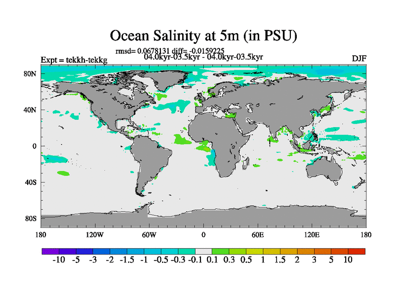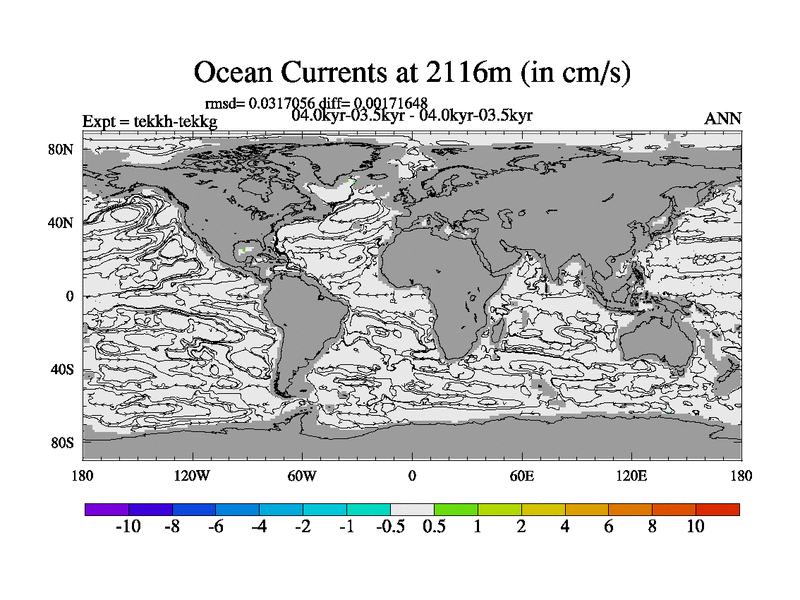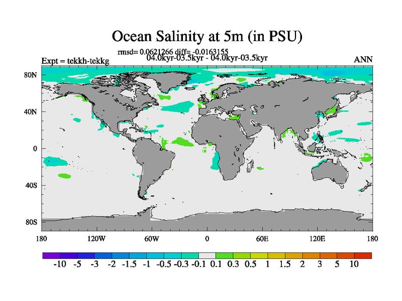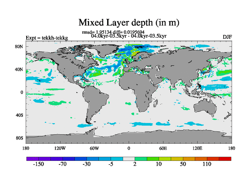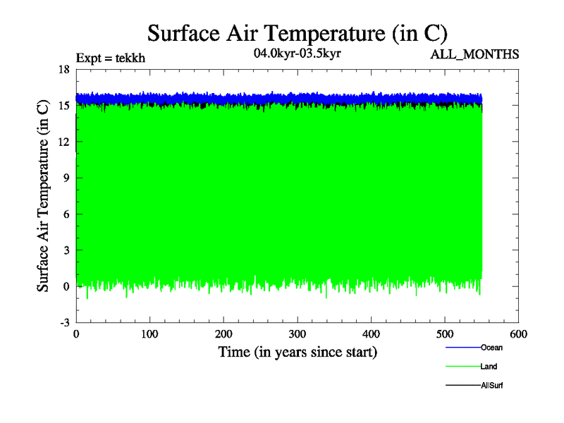 This is part of our deglaciation simulations. All forcings included except melt water fluxes. This series originally started from the tdphm spinup. Revised runoff maps, Russian rivers to Med. This vresion uses real meltwater fluxes. |