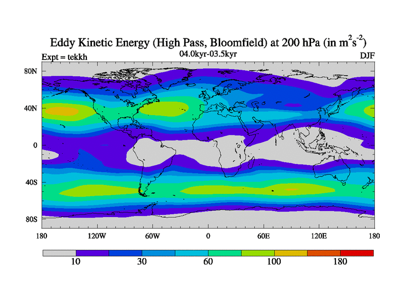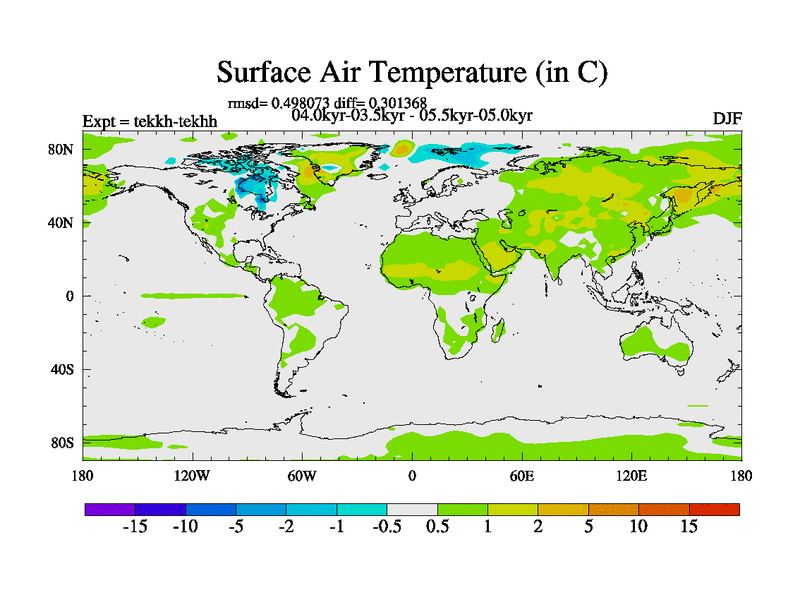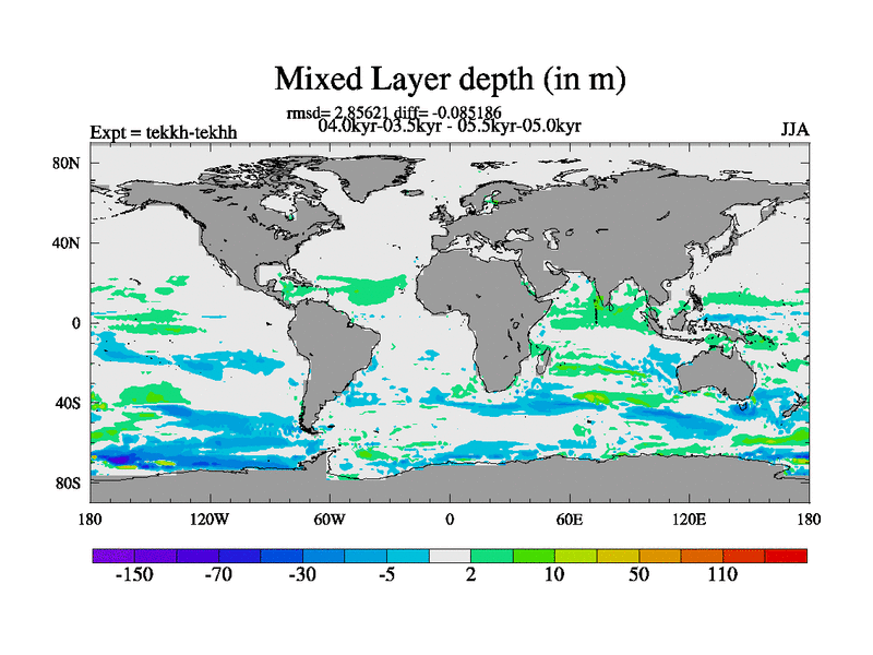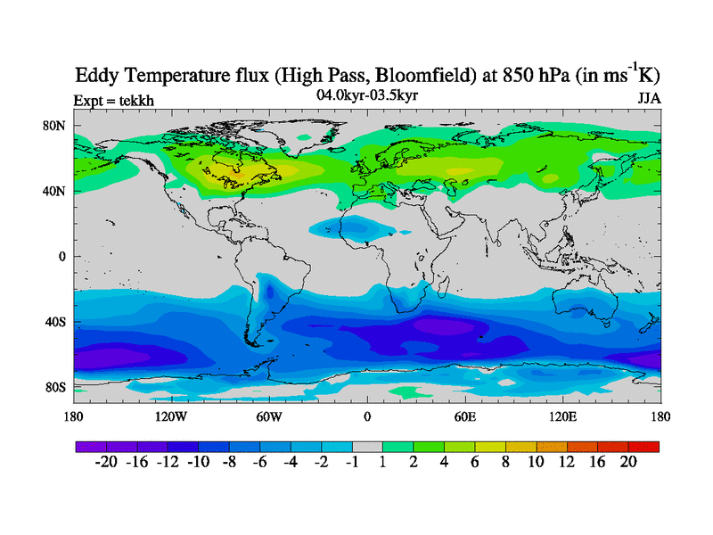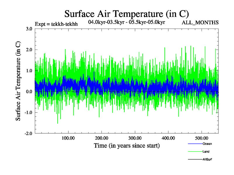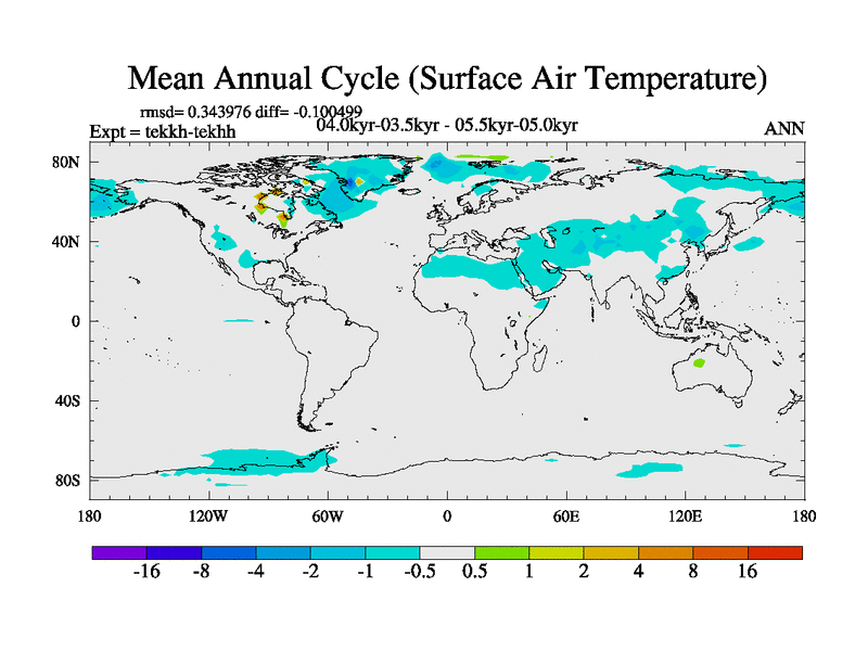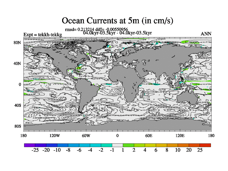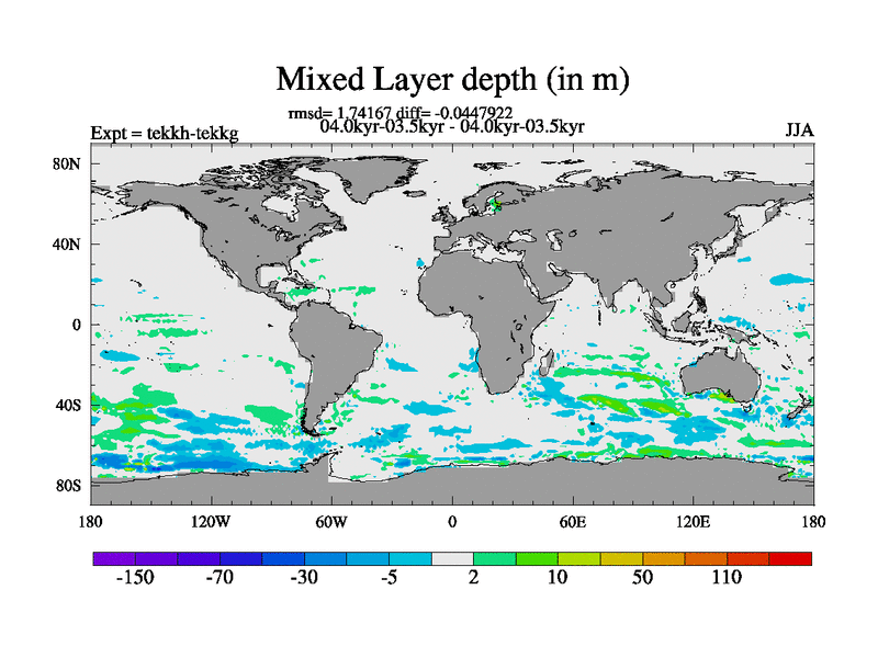 This is part of our deglaciation simulations. All forcings included except melt water fluxes. This series originally started from the tdphm spinup. Revised runoff maps, Russian rivers to Med. This vresion uses real meltwater fluxes. |