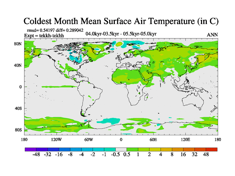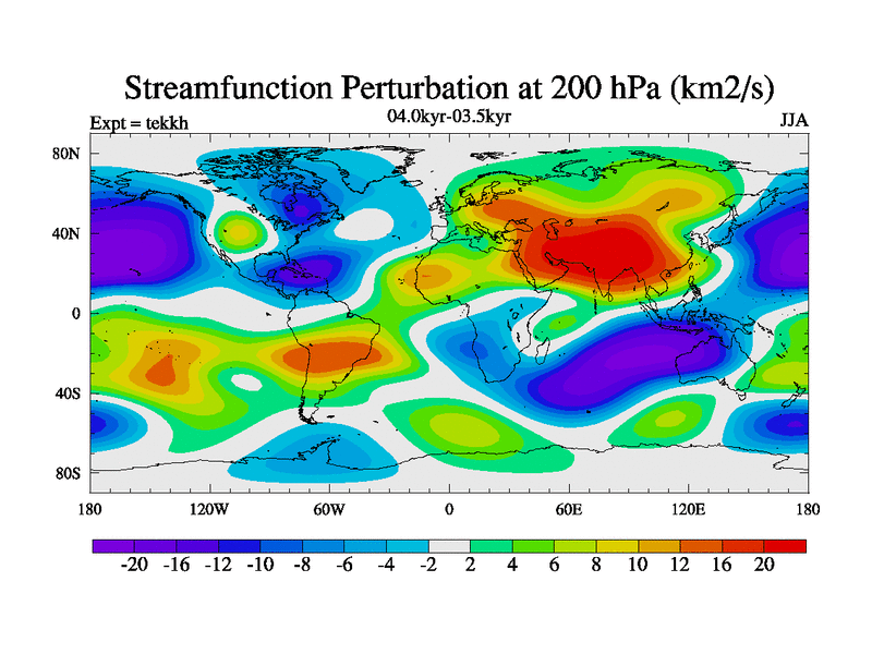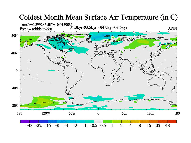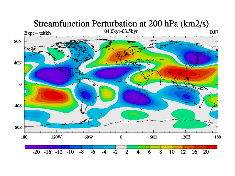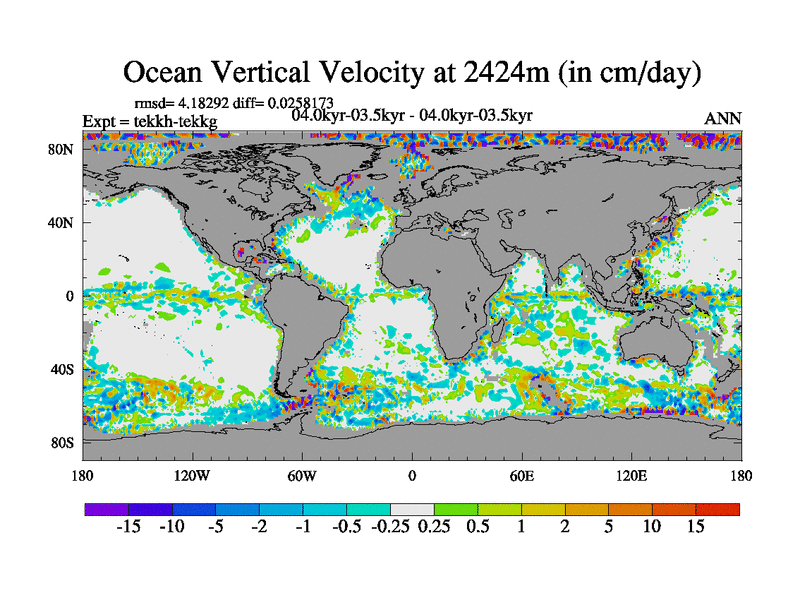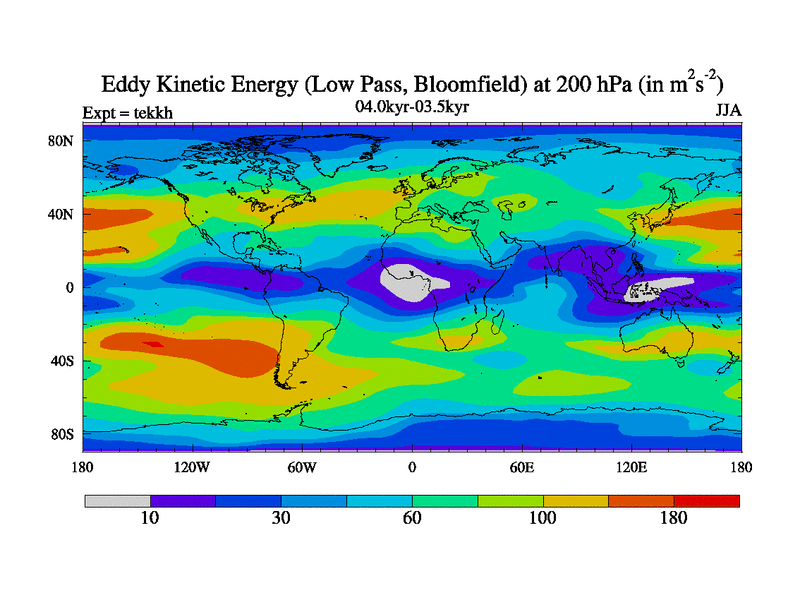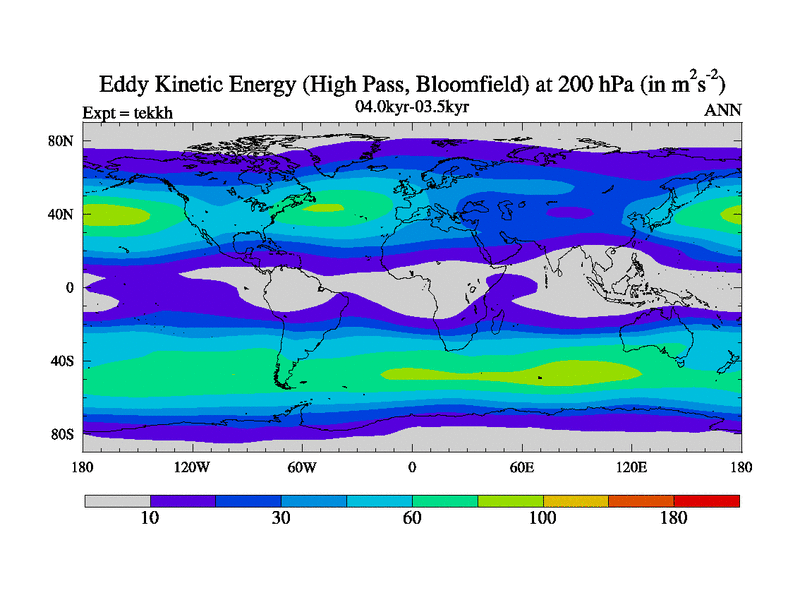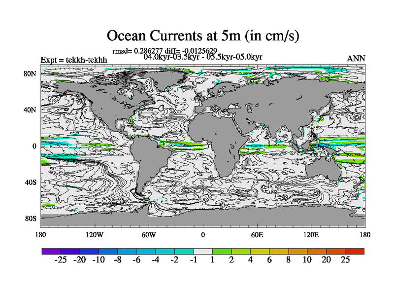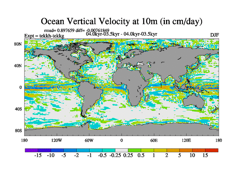 This is part of our deglaciation simulations. All forcings included except melt water fluxes. This series originally started from the tdphm spinup. Revised runoff maps, Russian rivers to Med. This vresion uses real meltwater fluxes. |