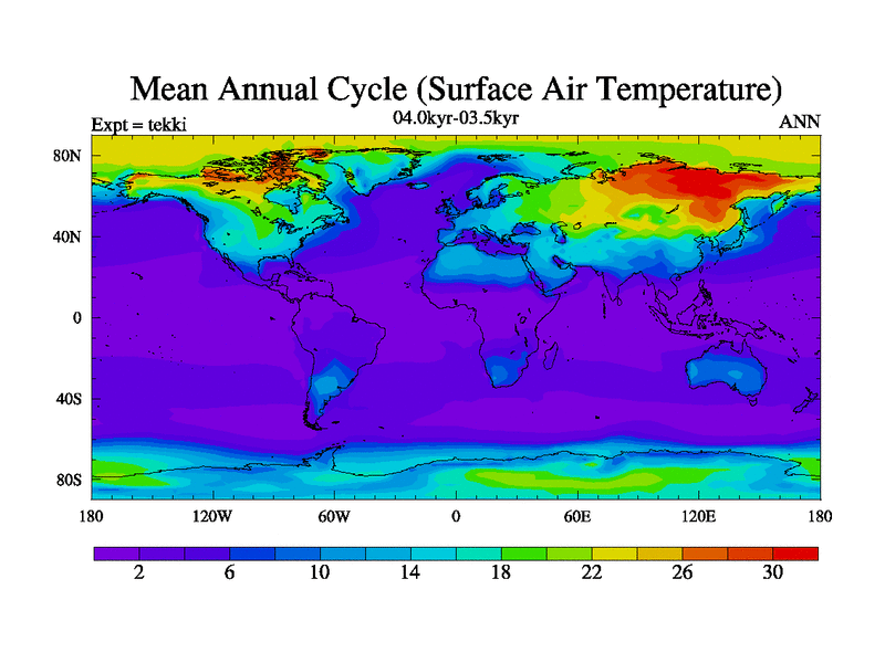 This is part of our deglaciation simulations. All forcings included except melt water fluxes. This series originally started from the tdphl spinup. Revised runoff maps, Russian rivers to Arctic. |