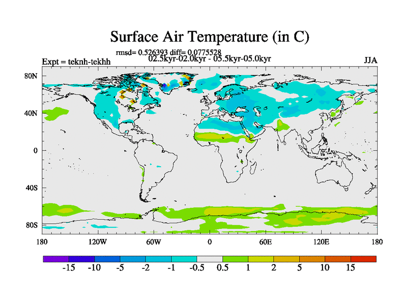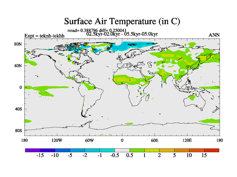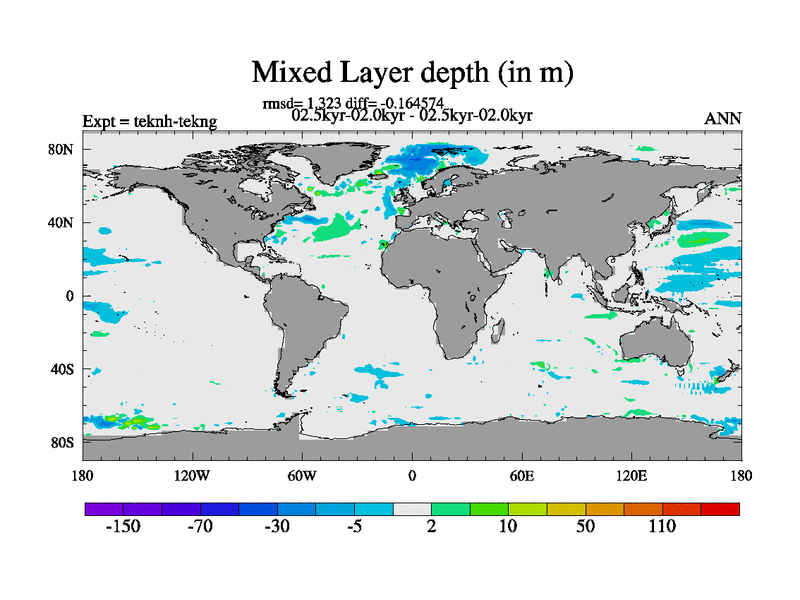 This is part of our deglaciation simulations. All forcings included except melt water fluxes. This series originally started from the tdphm spinup. Revised runoff maps, Russian rivers to Med. This vresion uses real meltwater fluxes.