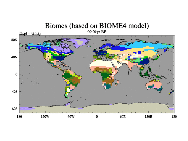 This is the 09.0 kyr BP simulation for a new set of deglaciation BBC runs using Peltier6g and TRIFFID. Dynamic mode