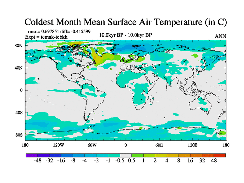 This is the 10.0 kyr BP simulation for a new set of deglaciation BBC runs using Peltier6g and TRIFFID. Dynamic mode