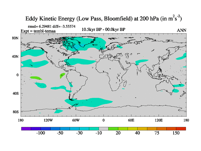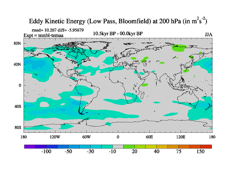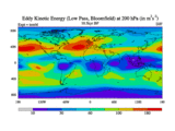 Low Pass Eddy Kinetic Energy at 200 hPa