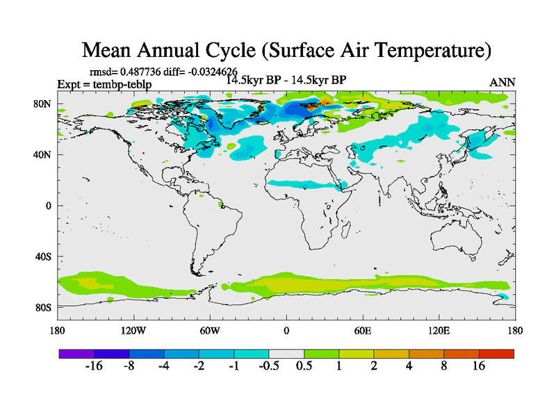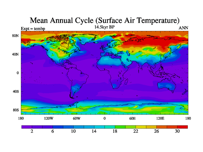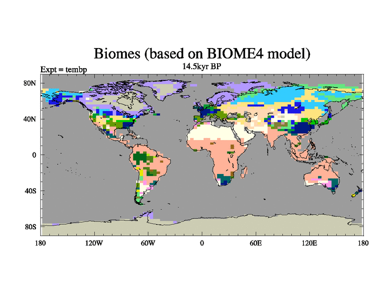 This is the 14.5 kyr BP simulation for a new set of deglaciation BBC runs using Peltier6g and TRIFFID. Dynamic mode