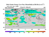 Low Pass Eddy Kinetic Energy at 200 hPa