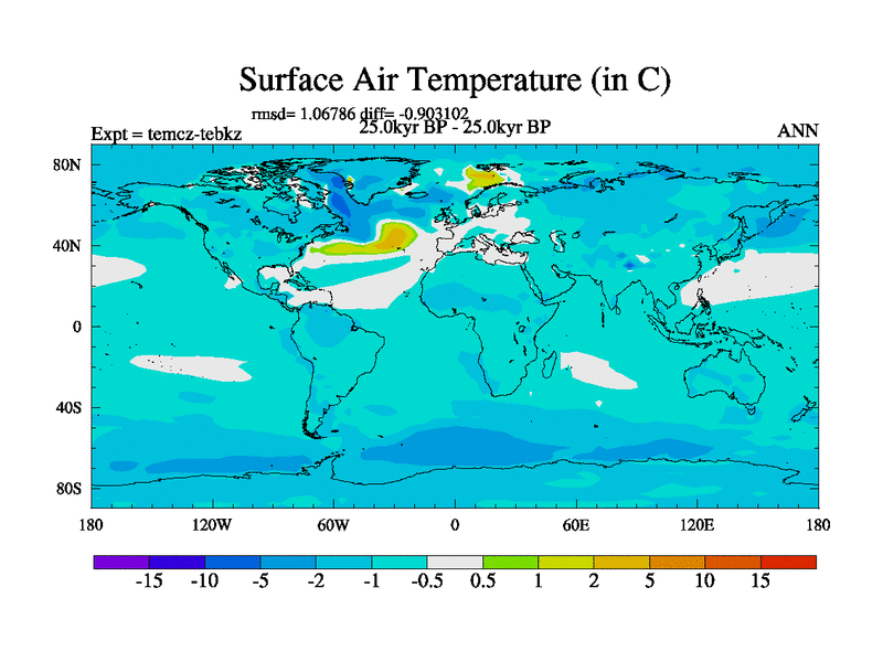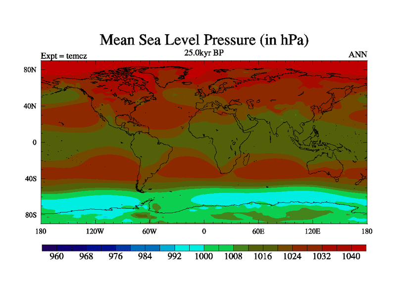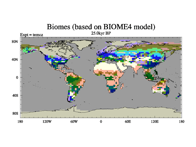 This is the 25.0 kyr BP simulation for a new set of deglaciation BBC runs using Peltier6g and TRIFFID. Dynamic mode
