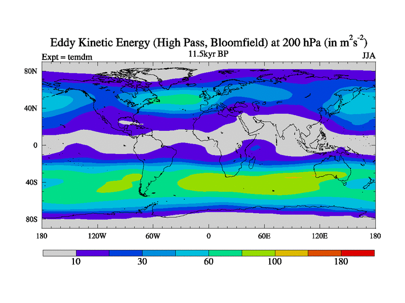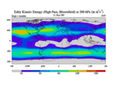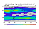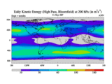 High Pass Eddy Kinetic Energy at 200 hPa
