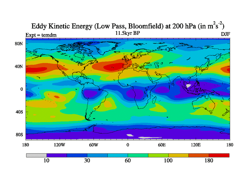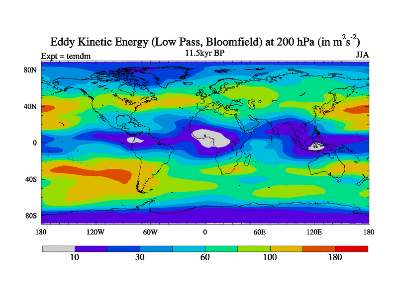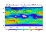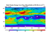 Low Pass Eddy Kinetic Energy at 200 hPa