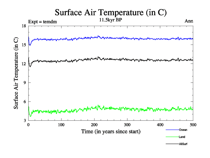 Surface Air Temperature Time Series (annual means)
