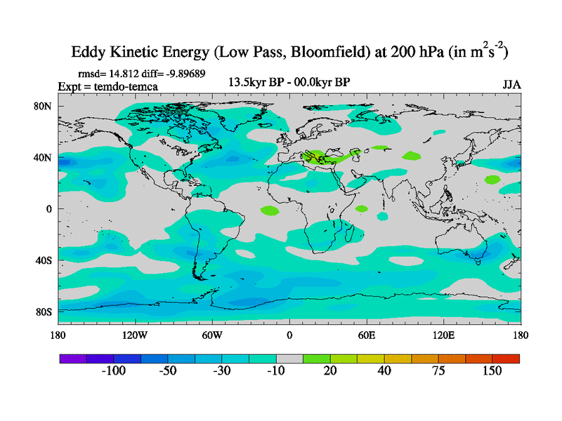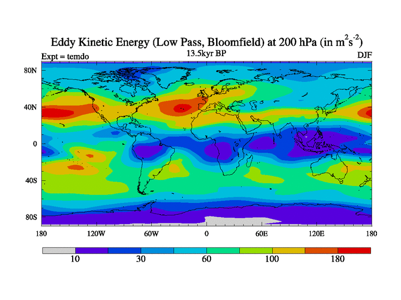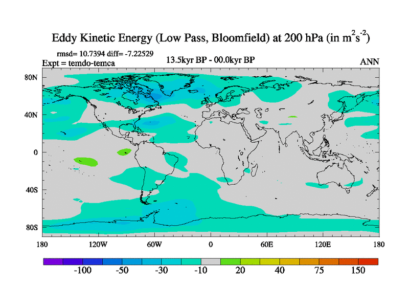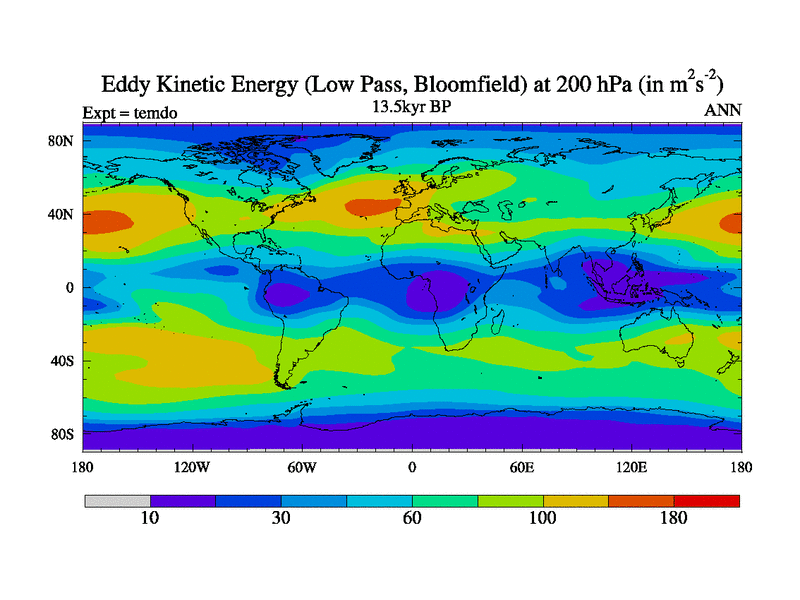 Low Pass Eddy Kinetic Energy at 200 hPa