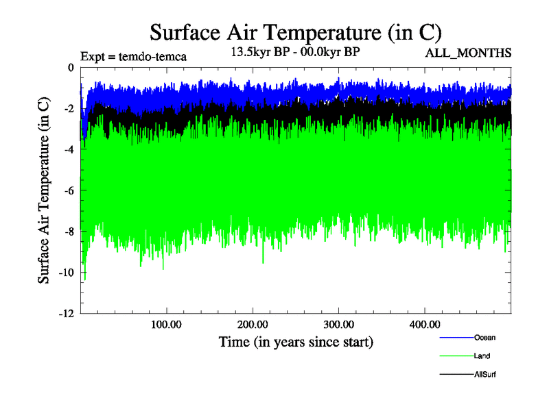 This is the 13.5 kyr BP simulation for a new set of deglaciation BBC runs using Peltier6g and TRIFFID. Dynamic mode