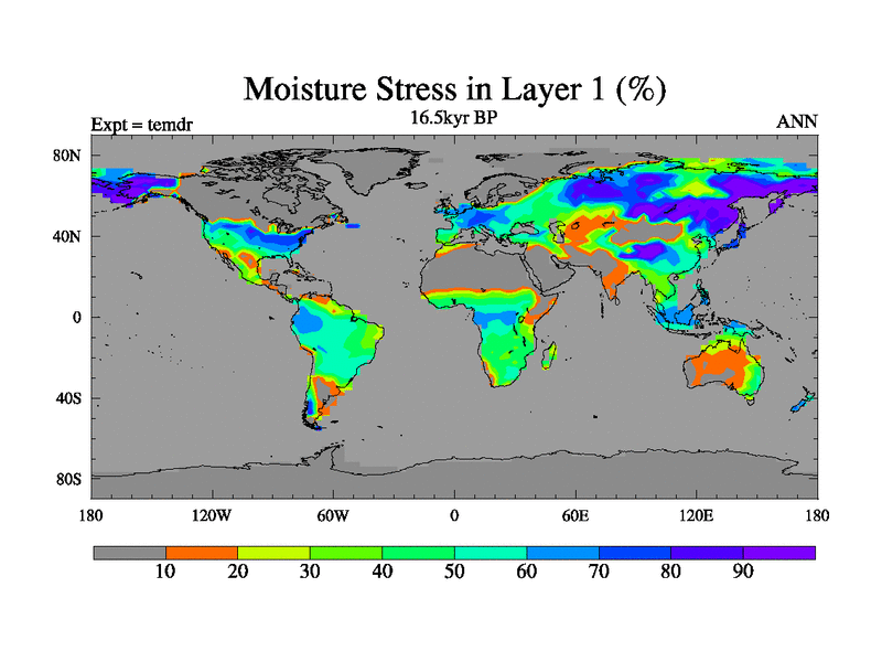 This is the 16.5 kyr BP simulation for a new set of deglaciation BBC runs using Peltier6g and TRIFFID. Dynamic mode