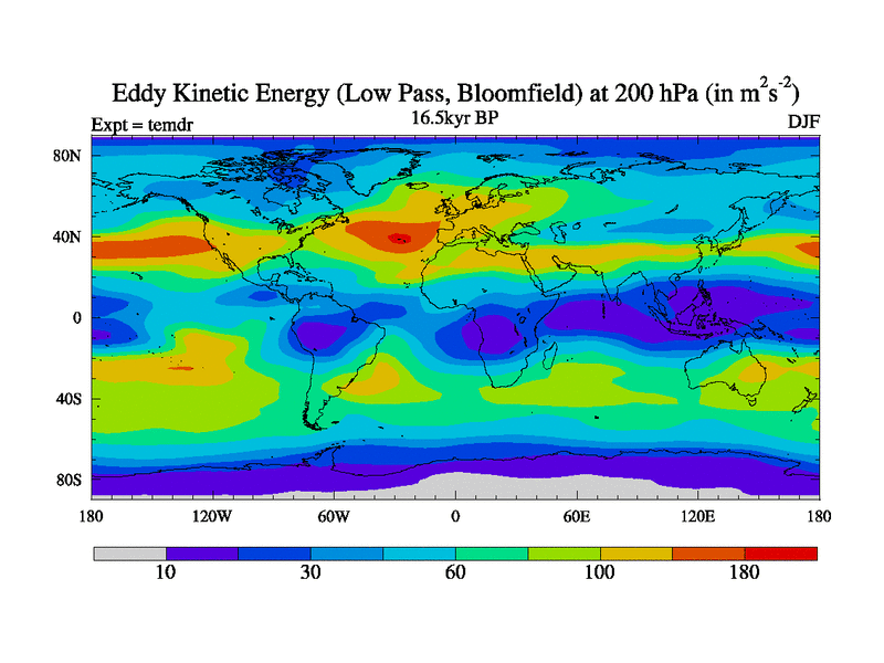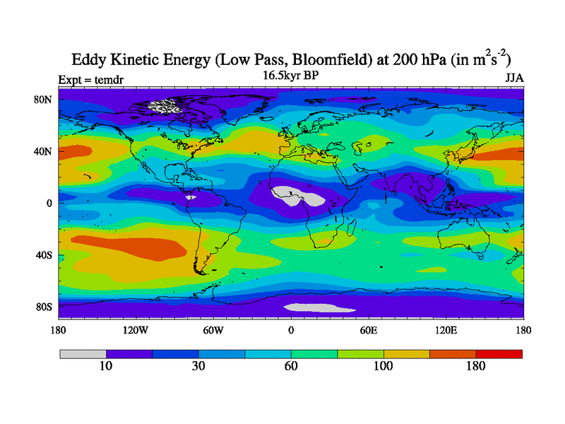 Low Pass Eddy Kinetic Energy at 200 hPa