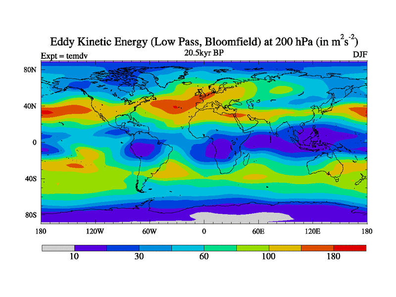 Low Pass Eddy Kinetic Energy at 200 hPa