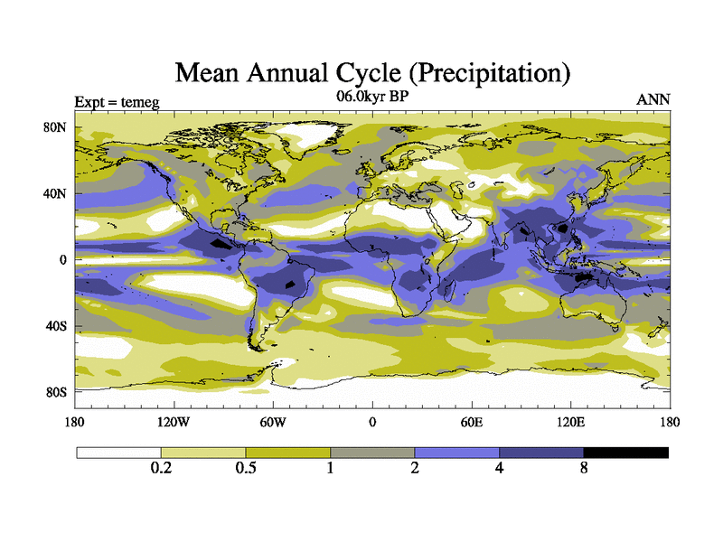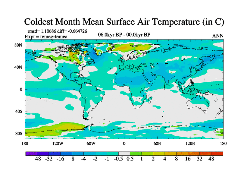 This is the 06.0 kyr BP simulation for a new set of deglaciation BBC runs using GLAC-1D and TRIFFID. Dynamic mode. No meltwater. Russian rivers routed to Med but only during height of glacial.