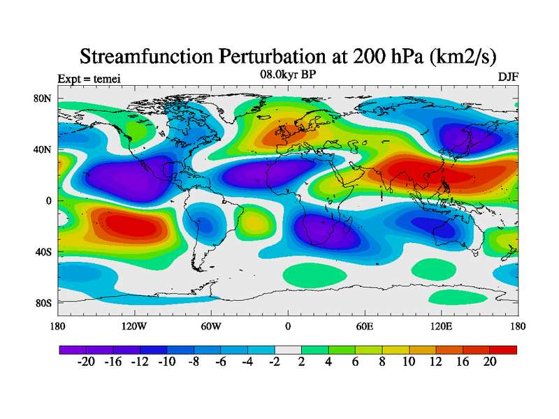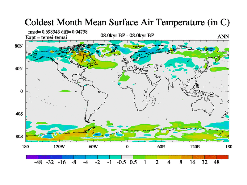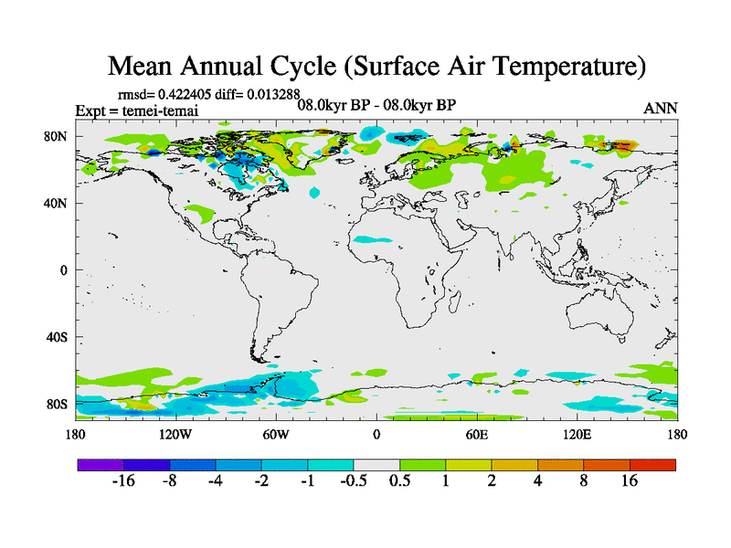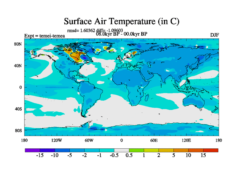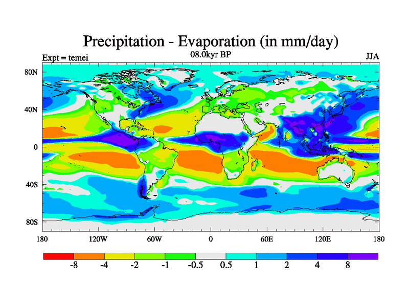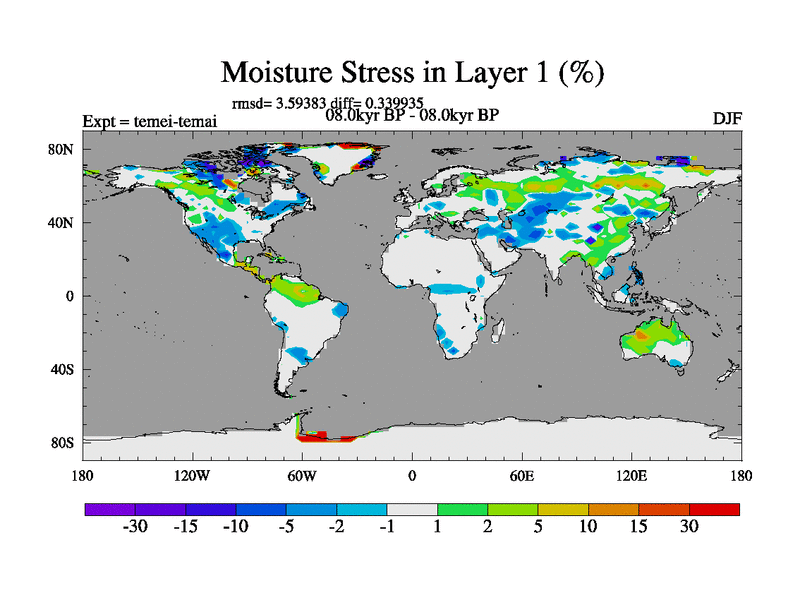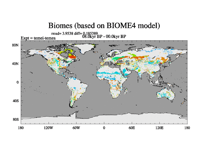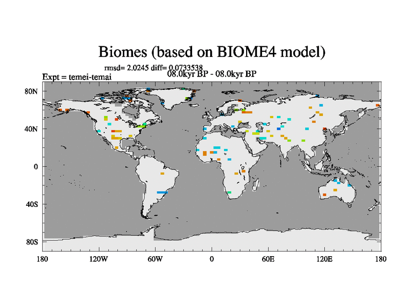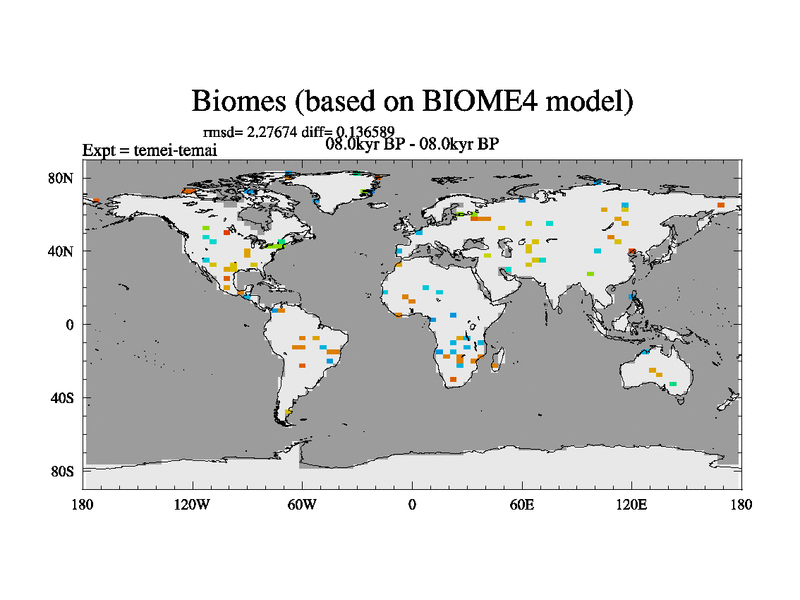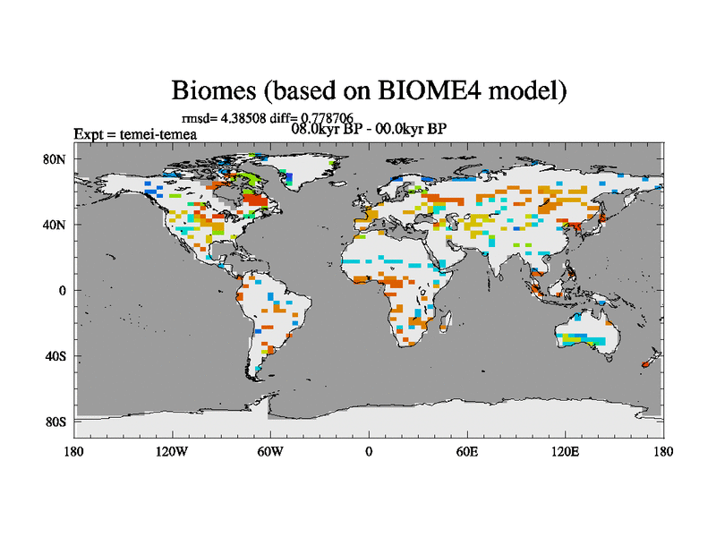 This is the 08.0 kyr BP simulation for a new set of deglaciation BBC runs using GLAC-1D and TRIFFID. Dynamic mode. No meltwater. Russian rivers routed to Med but only during height of glacial.
