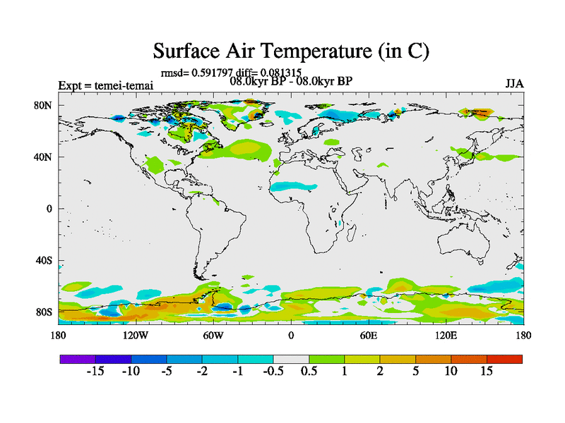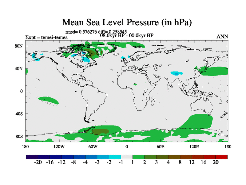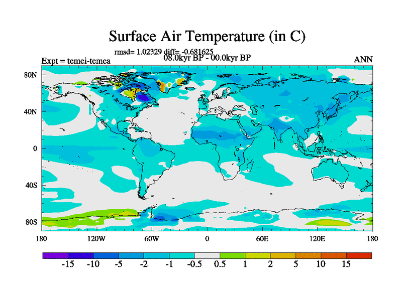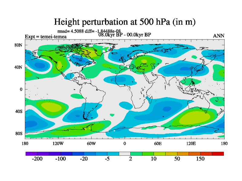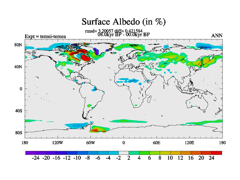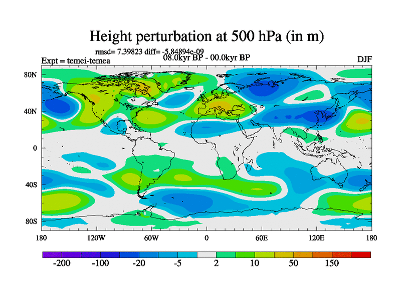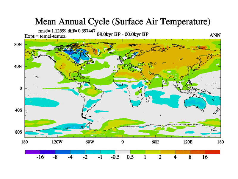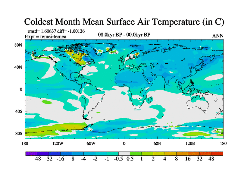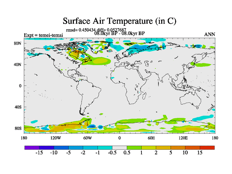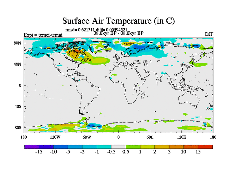 This is the 08.0 kyr BP simulation for a new set of deglaciation BBC runs using GLAC-1D and TRIFFID. Dynamic mode. No meltwater. Russian rivers routed to Med but only during height of glacial.