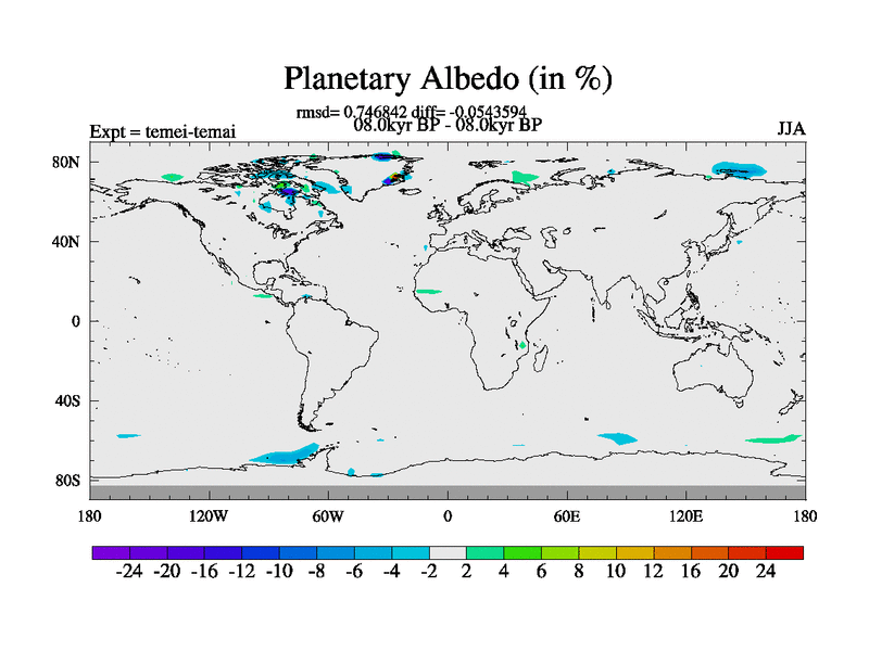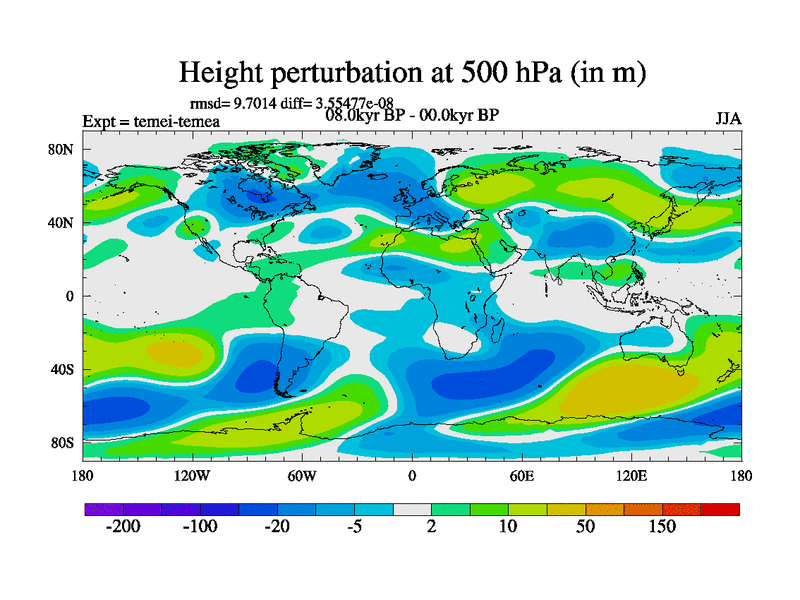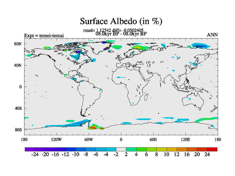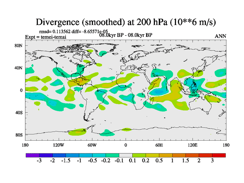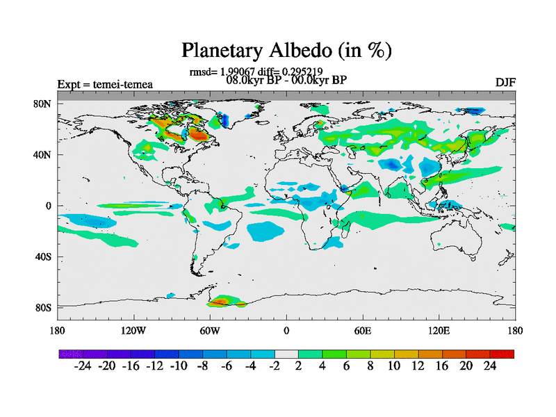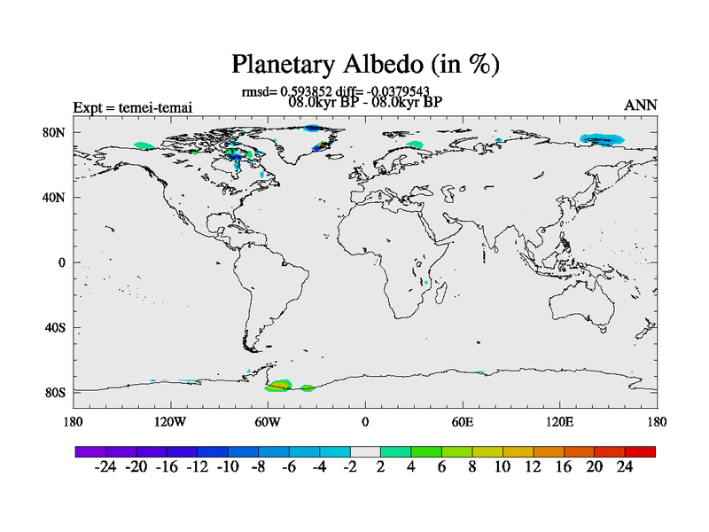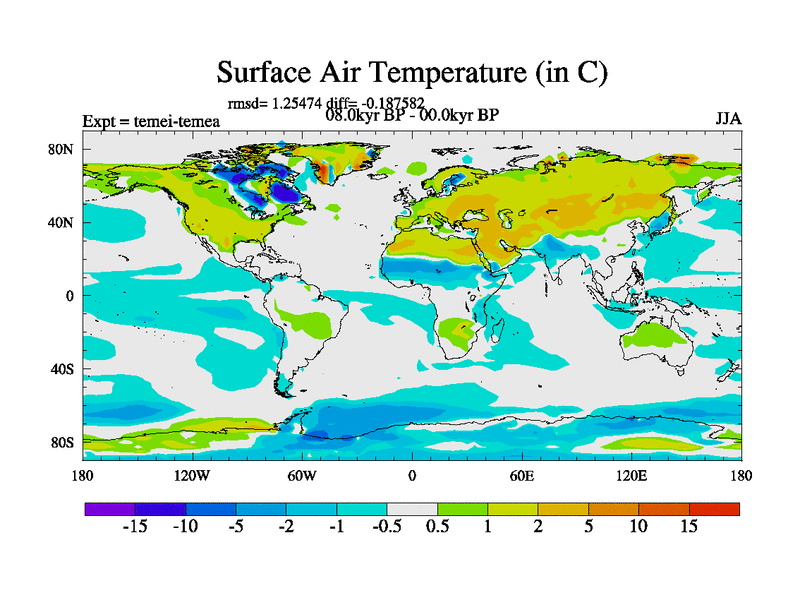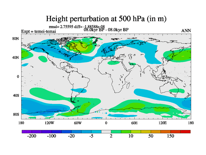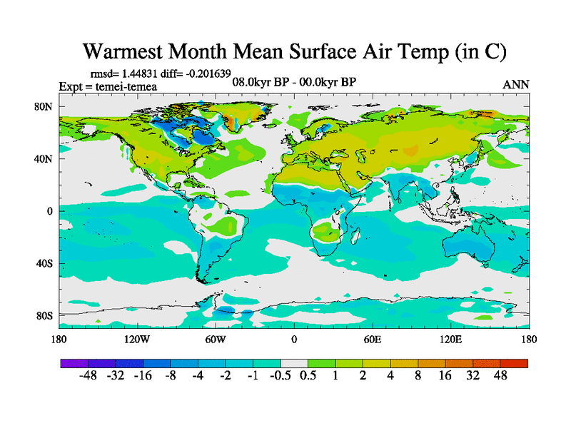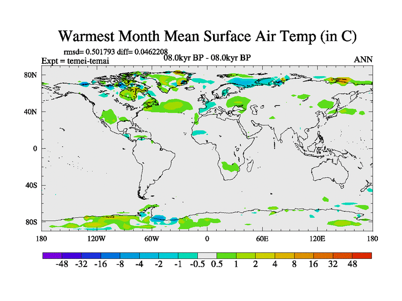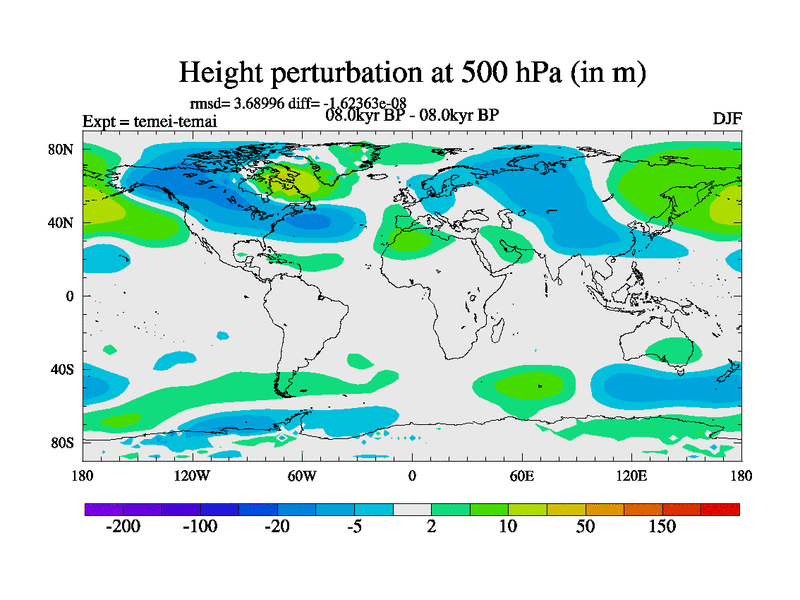 This is the 08.0 kyr BP simulation for a new set of deglaciation BBC runs using GLAC-1D and TRIFFID. Dynamic mode. No meltwater. Russian rivers routed to Med but only during height of glacial.