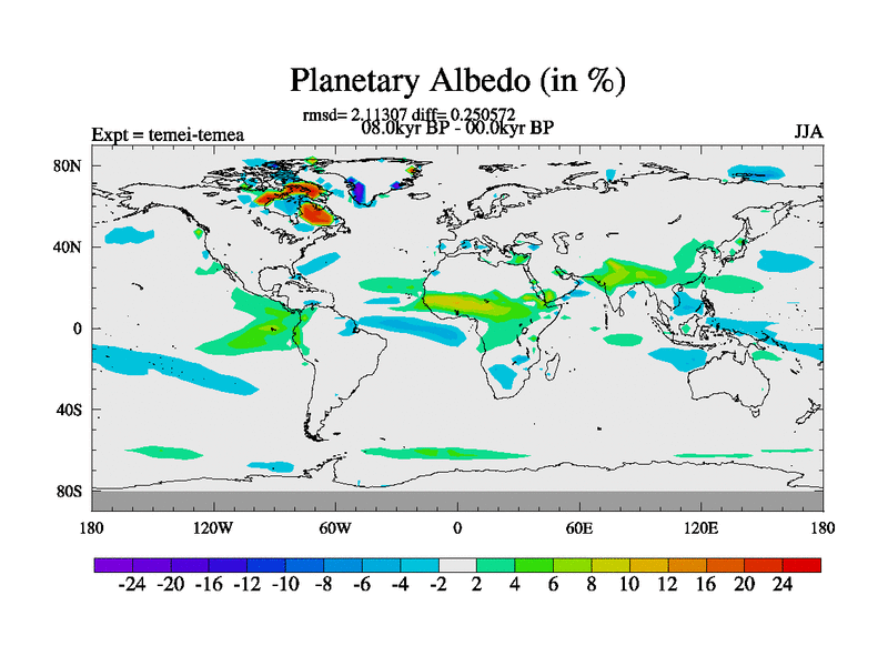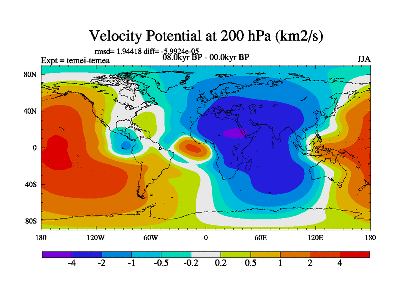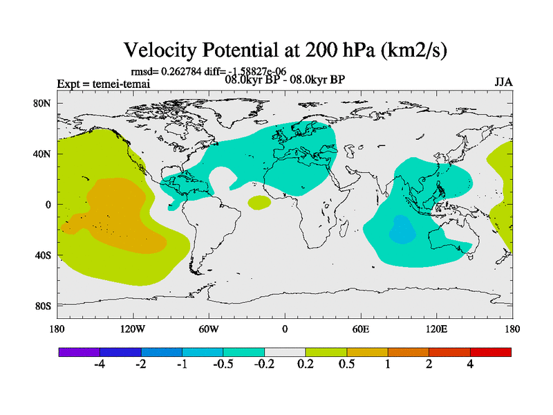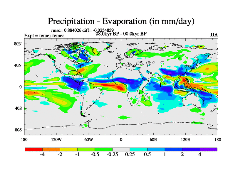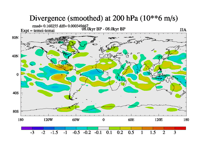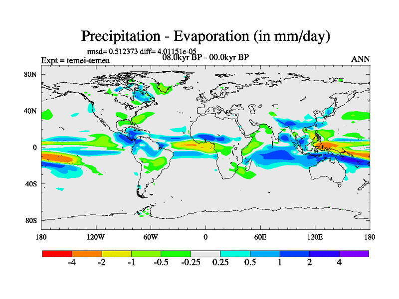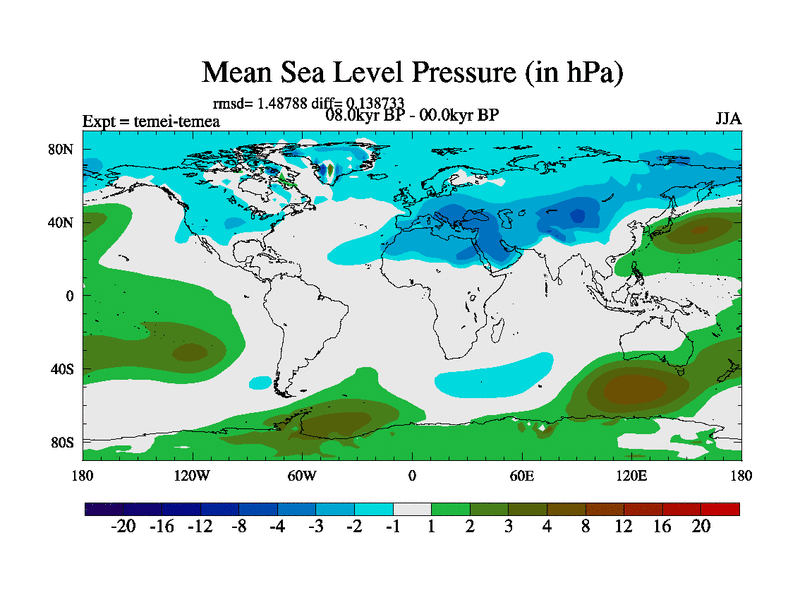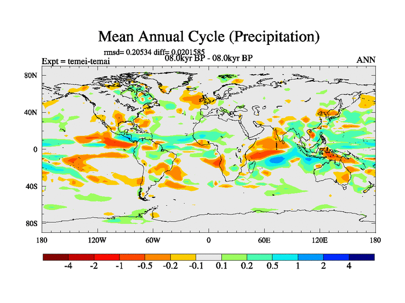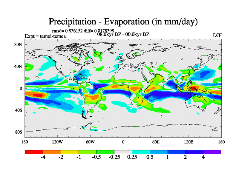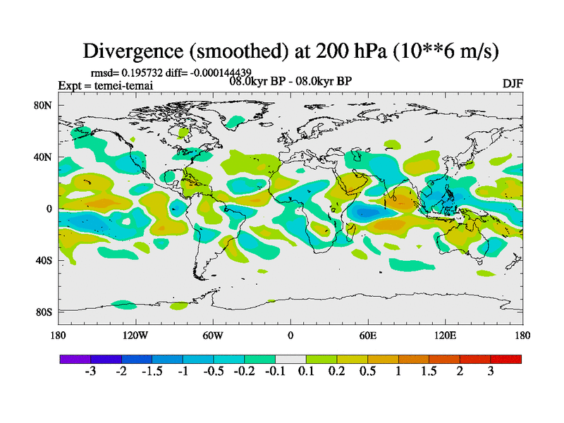 This is the 08.0 kyr BP simulation for a new set of deglaciation BBC runs using GLAC-1D and TRIFFID. Dynamic mode. No meltwater. Russian rivers routed to Med but only during height of glacial.