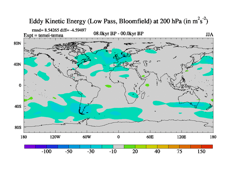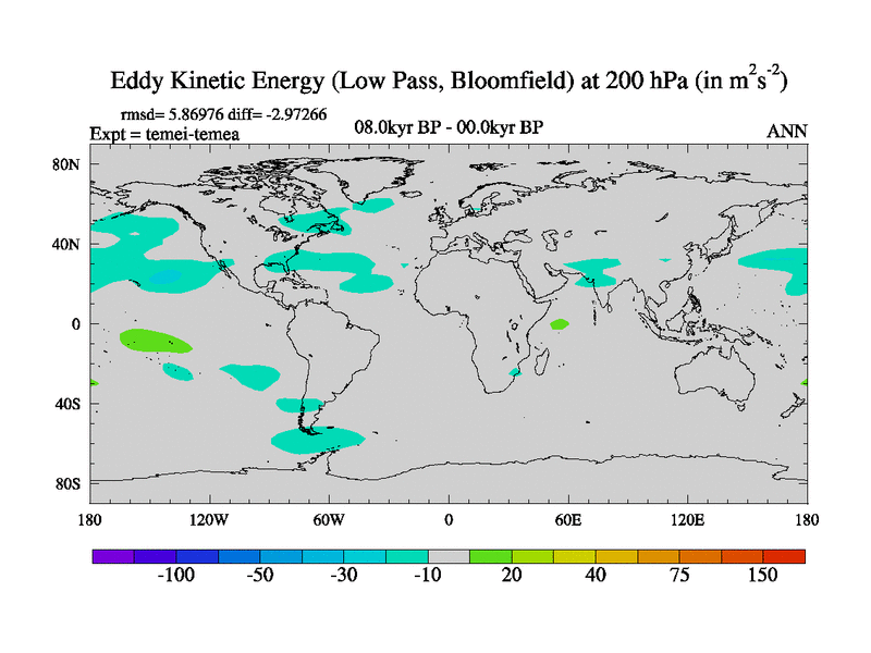 Low Pass Eddy Kinetic Energy at 200 hPa