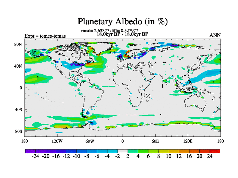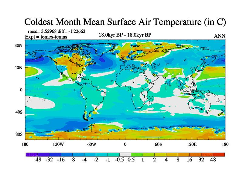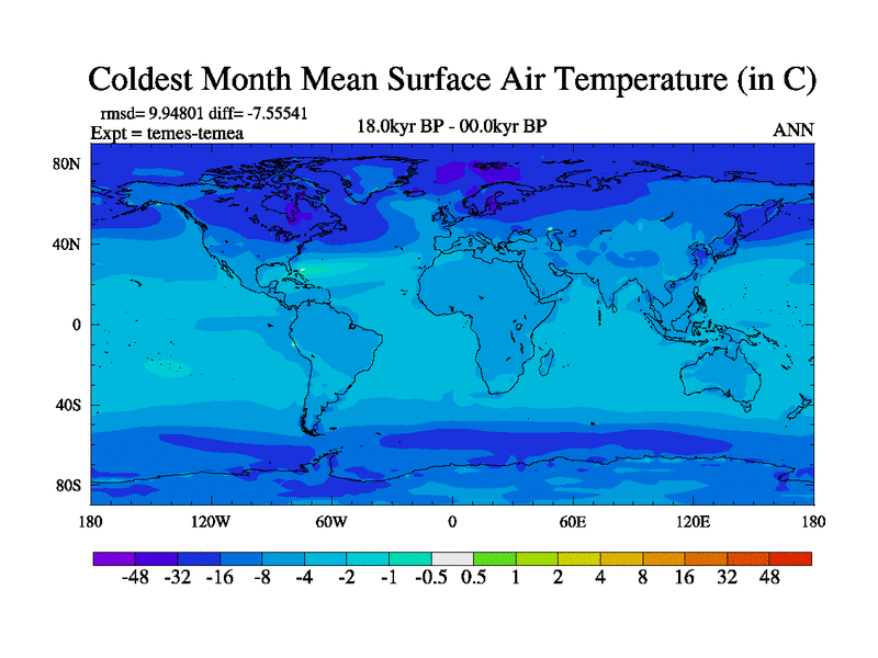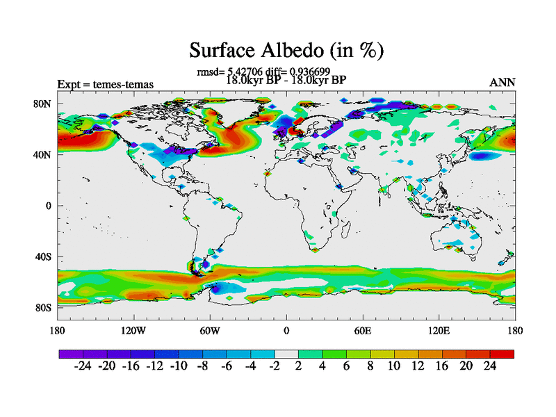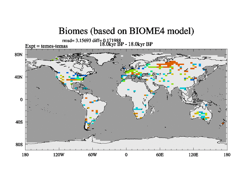 This is the 18.0 kyr BP simulation for a new set of deglaciation BBC runs using GLAC-1D and TRIFFID. Dynamic mode. No meltwater. Russian rivers routed to Med but only during height of glacial.