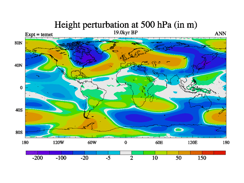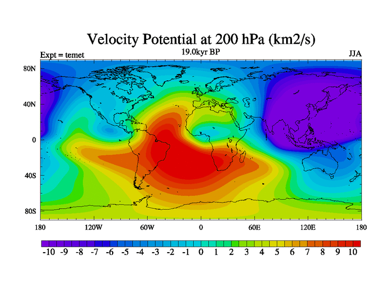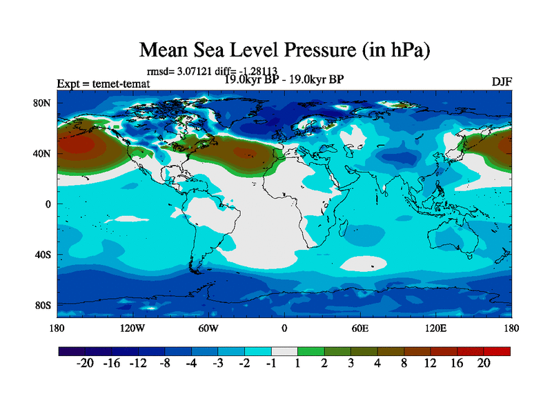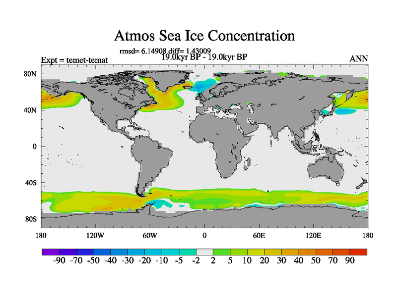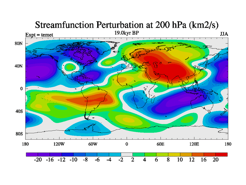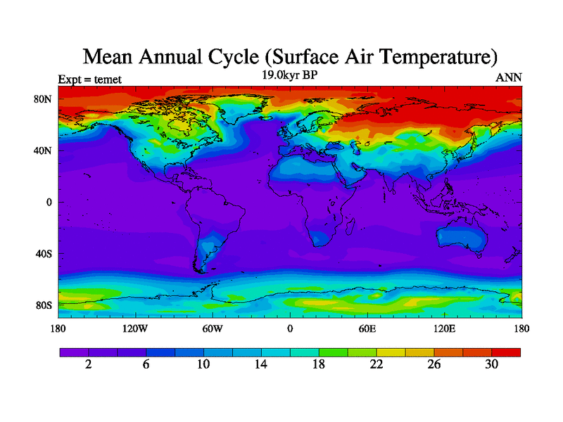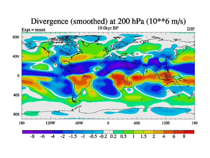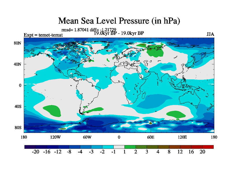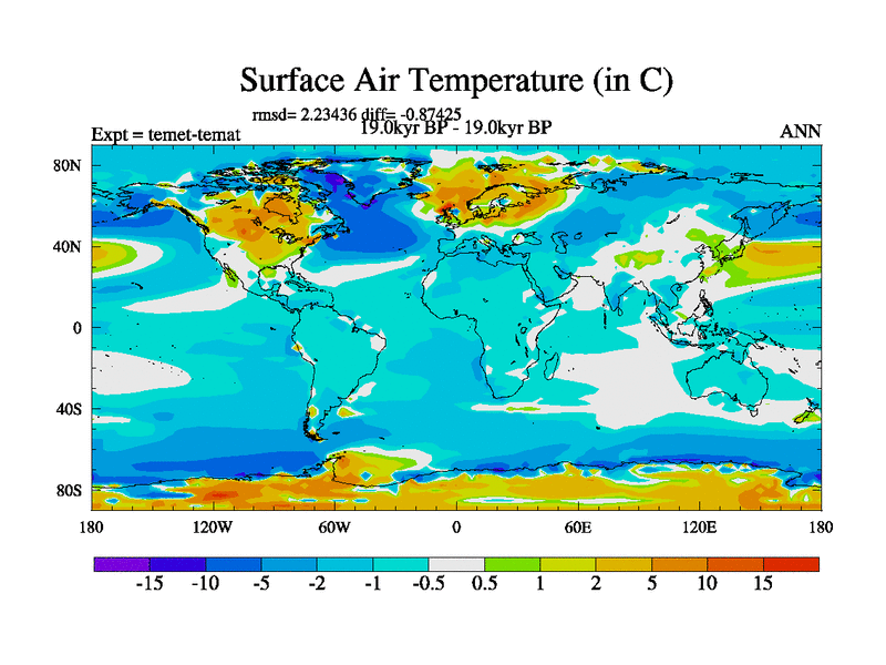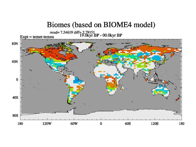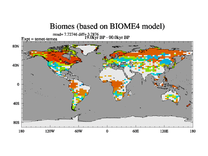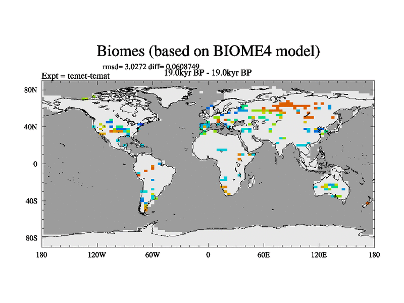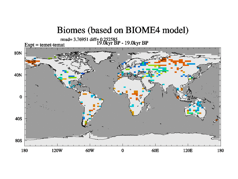 This is the 19.0 kyr BP simulation for a new set of deglaciation BBC runs using GLAC-1D and TRIFFID. Dynamic mode. No meltwater. Russian rivers routed to Med but only during height of glacial.