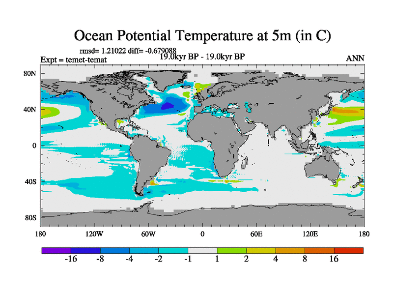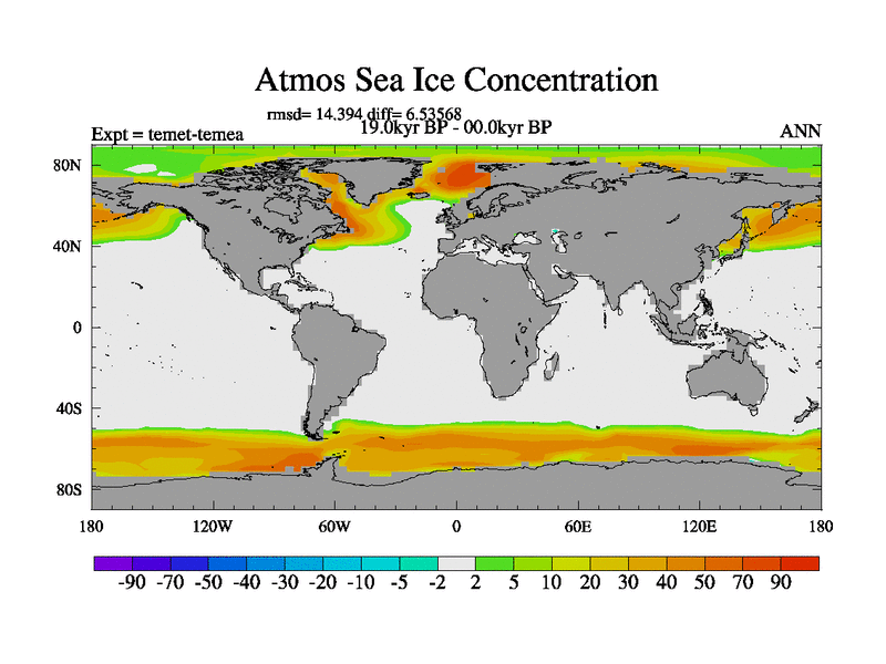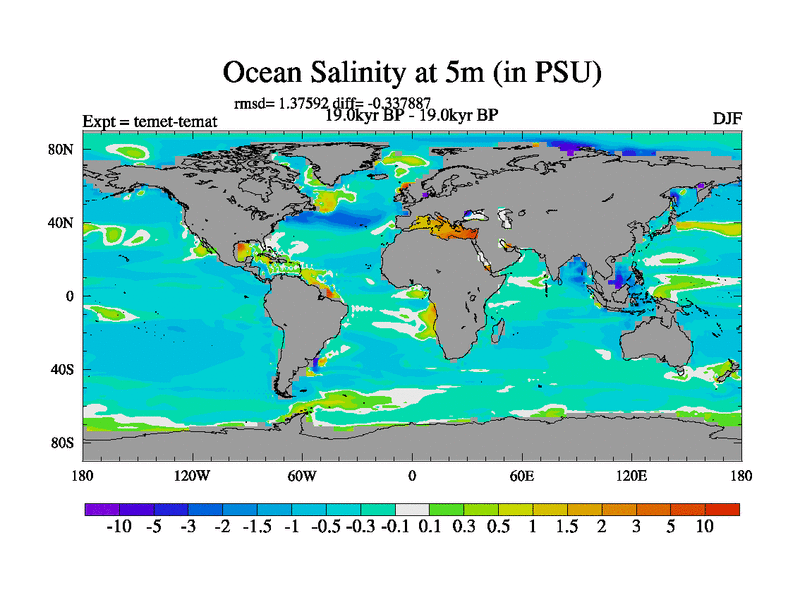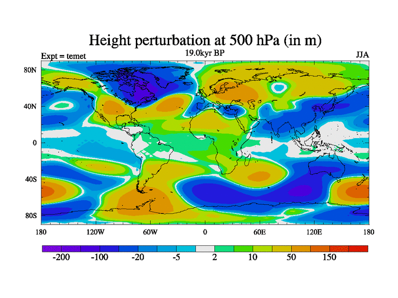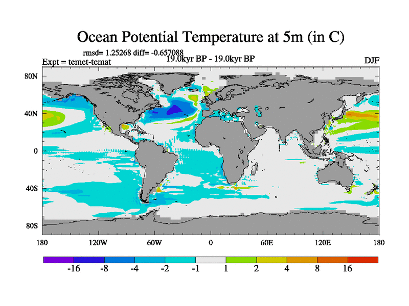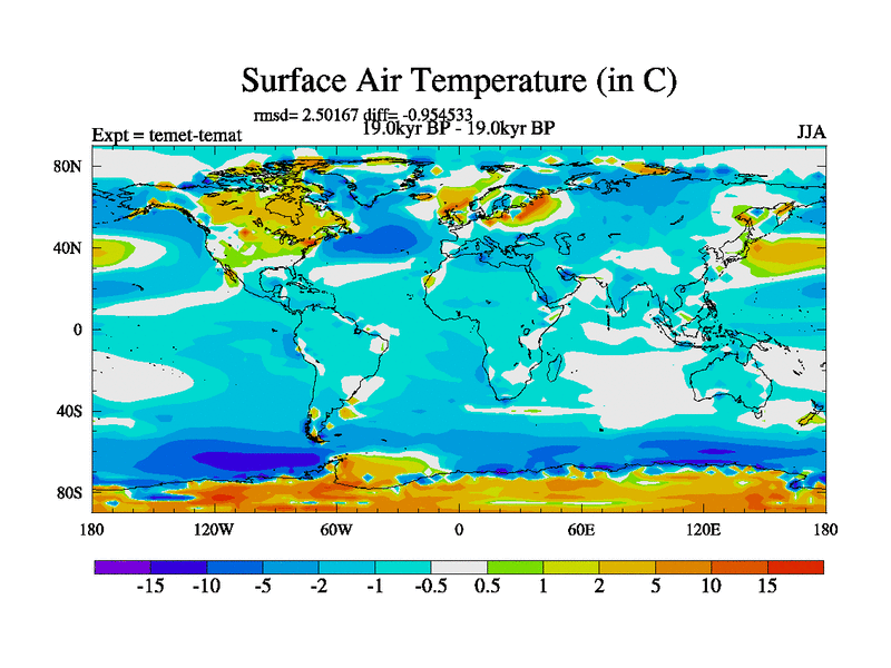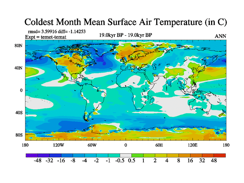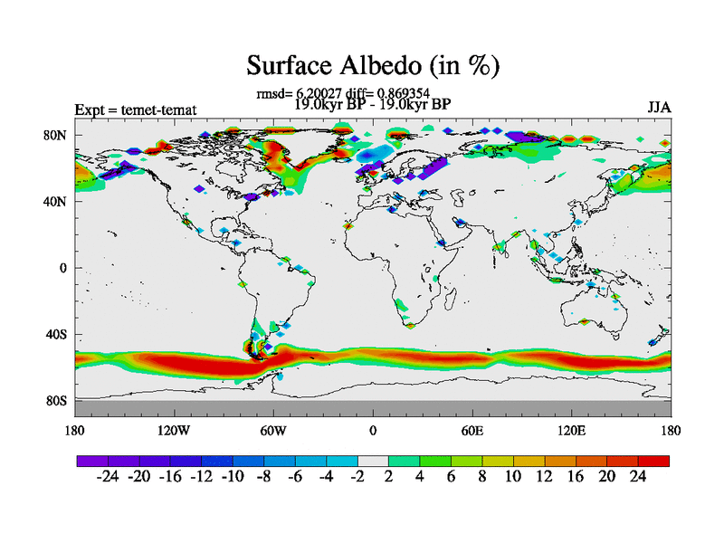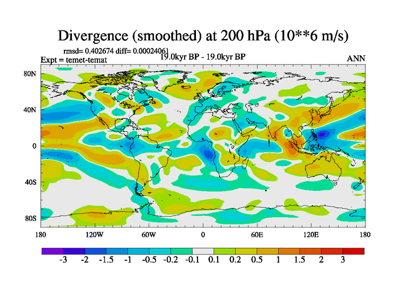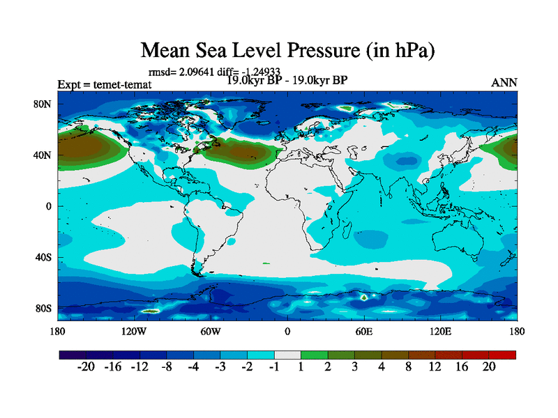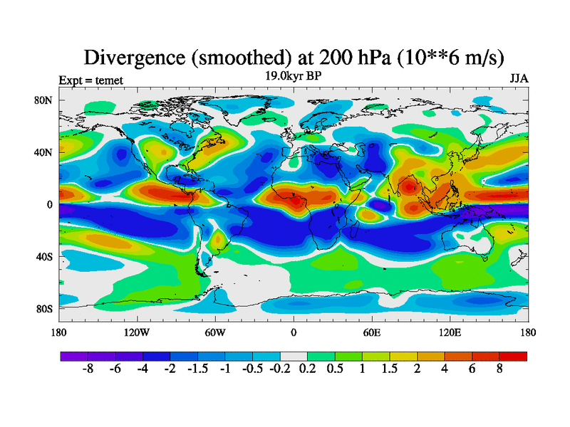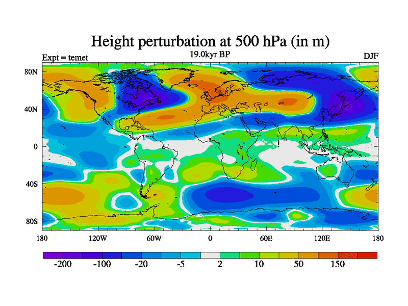 This is the 19.0 kyr BP simulation for a new set of deglaciation BBC runs using GLAC-1D and TRIFFID. Dynamic mode. No meltwater. Russian rivers routed to Med but only during height of glacial.