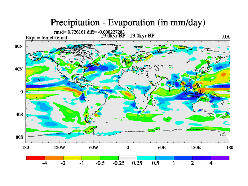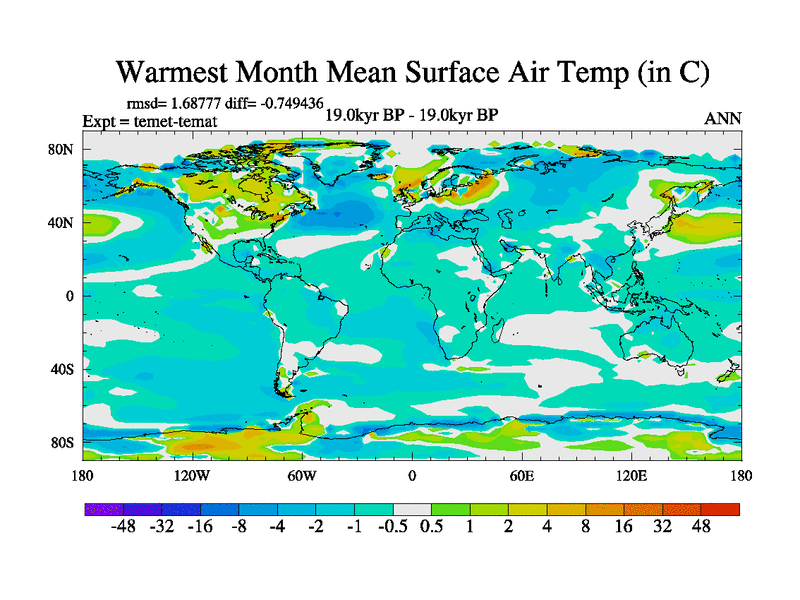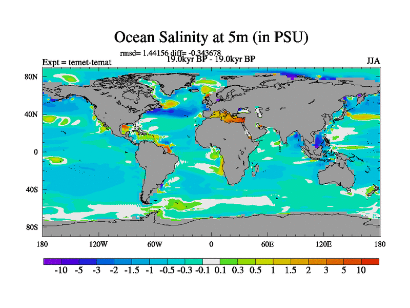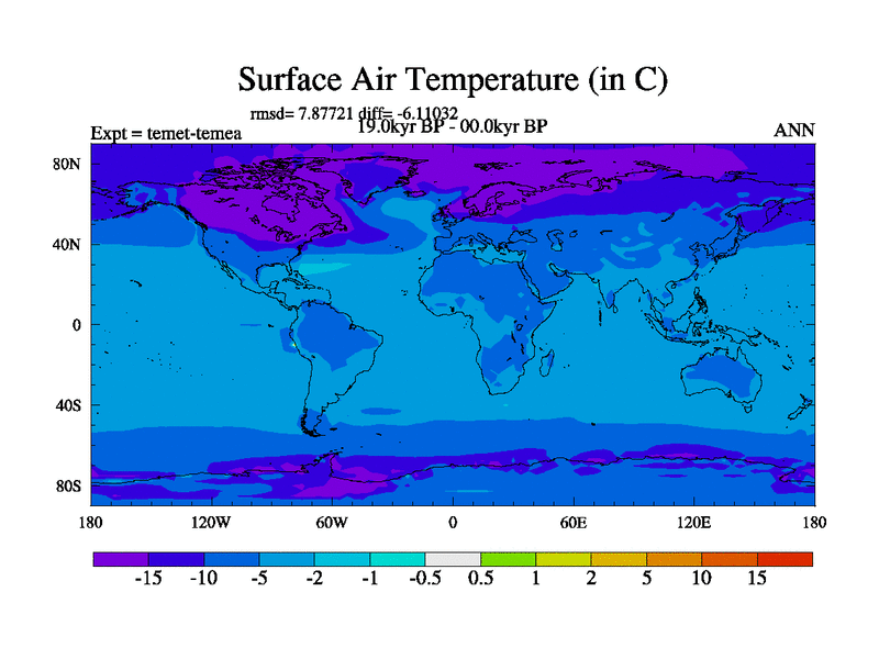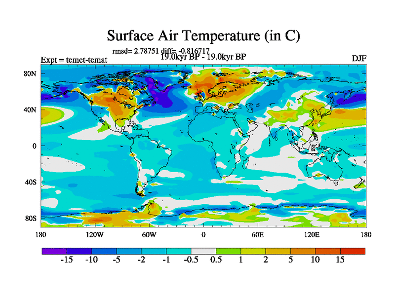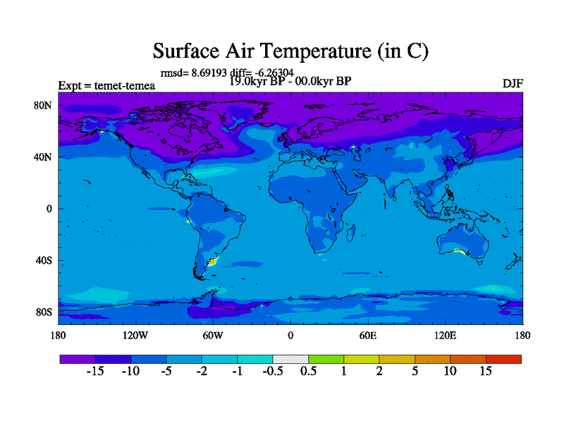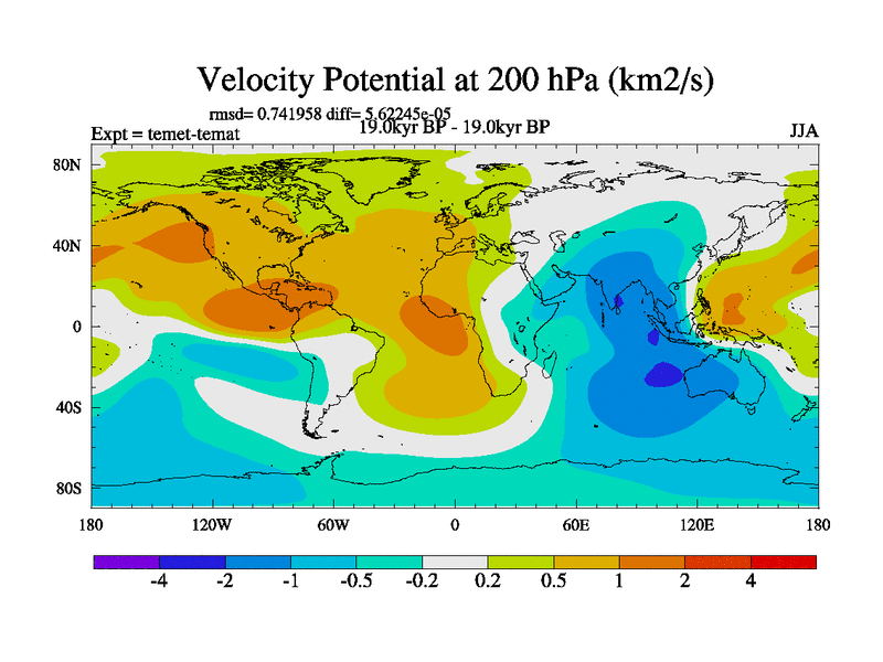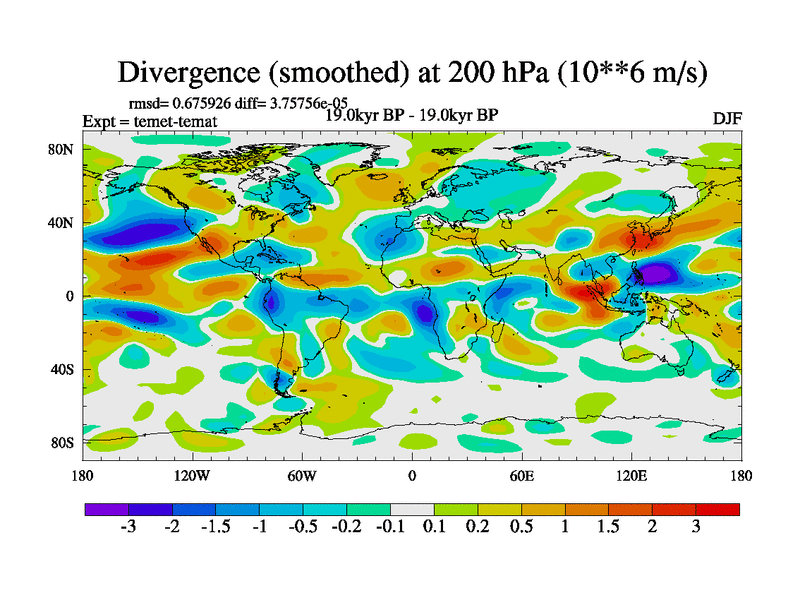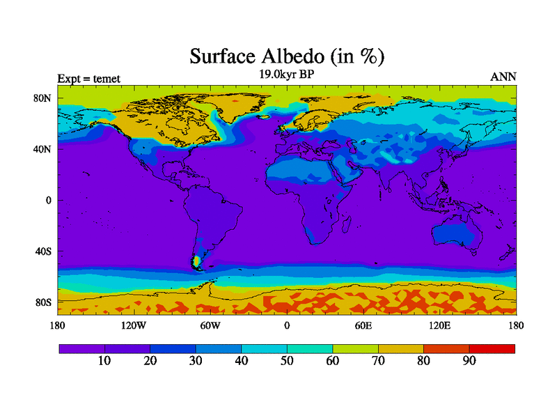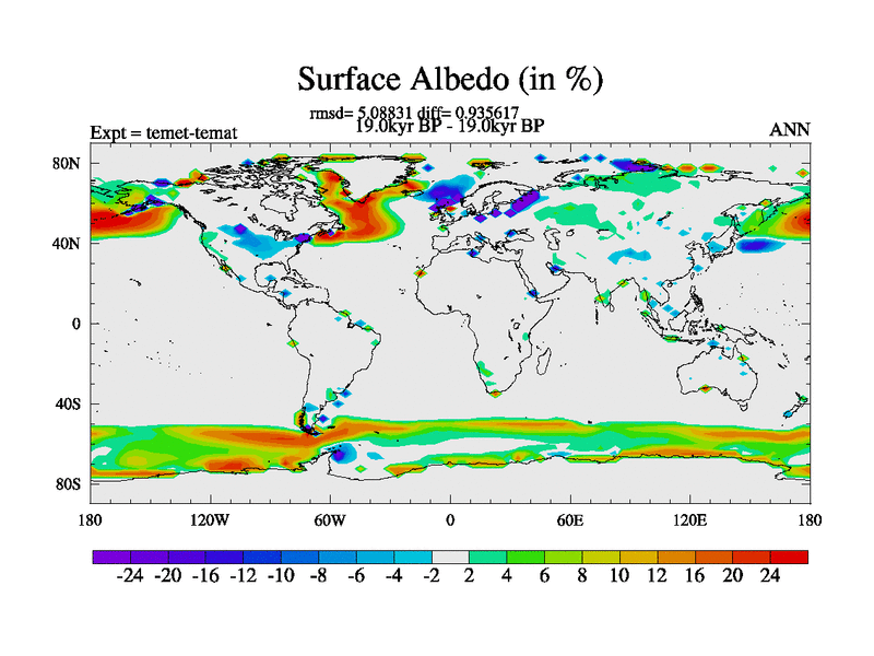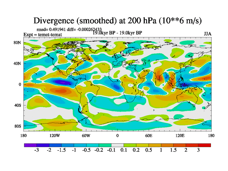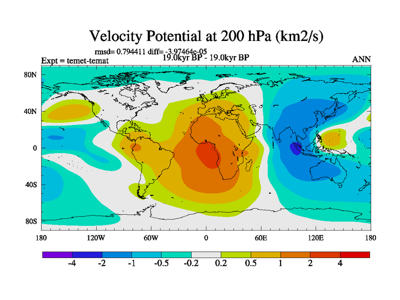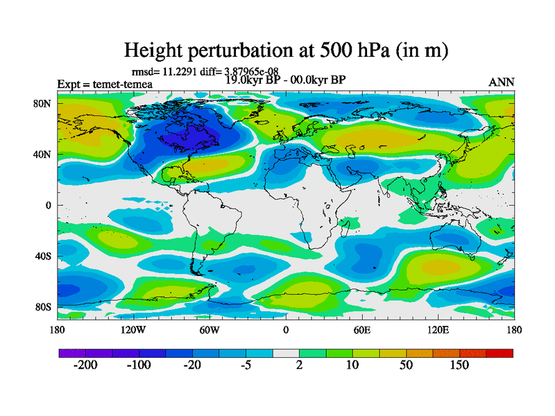 This is the 19.0 kyr BP simulation for a new set of deglaciation BBC runs using GLAC-1D and TRIFFID. Dynamic mode. No meltwater. Russian rivers routed to Med but only during height of glacial.