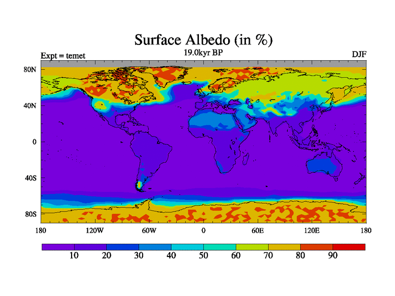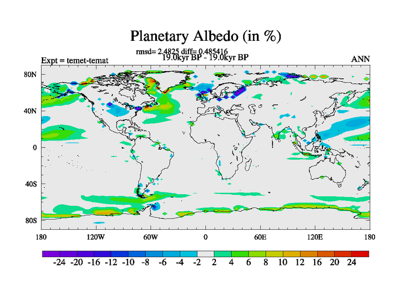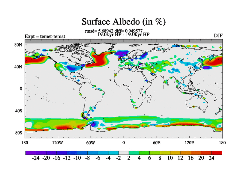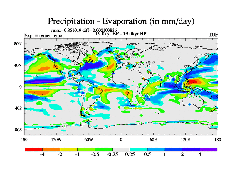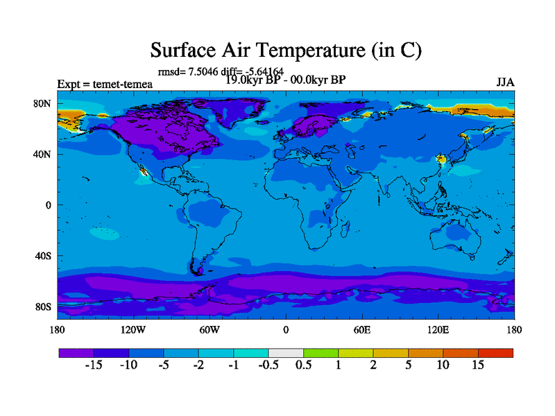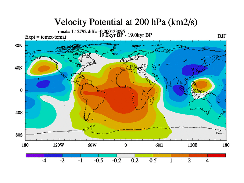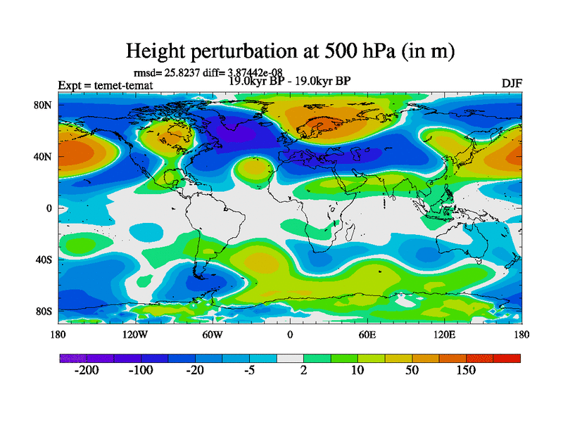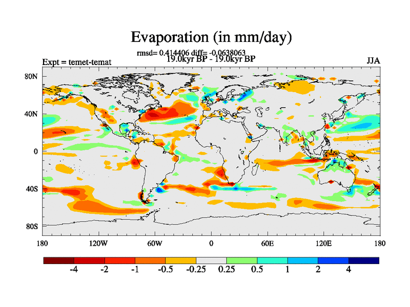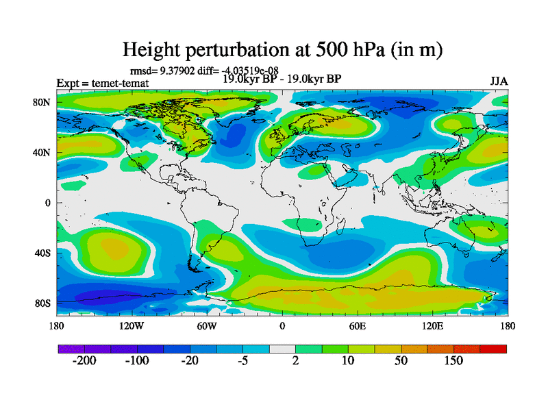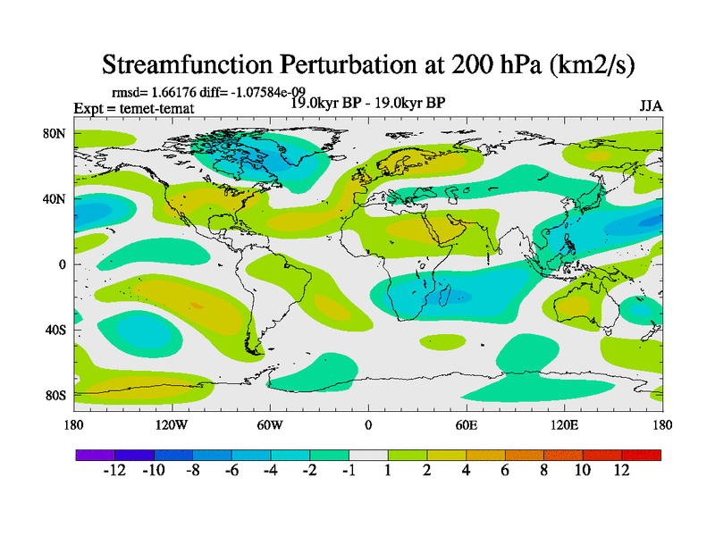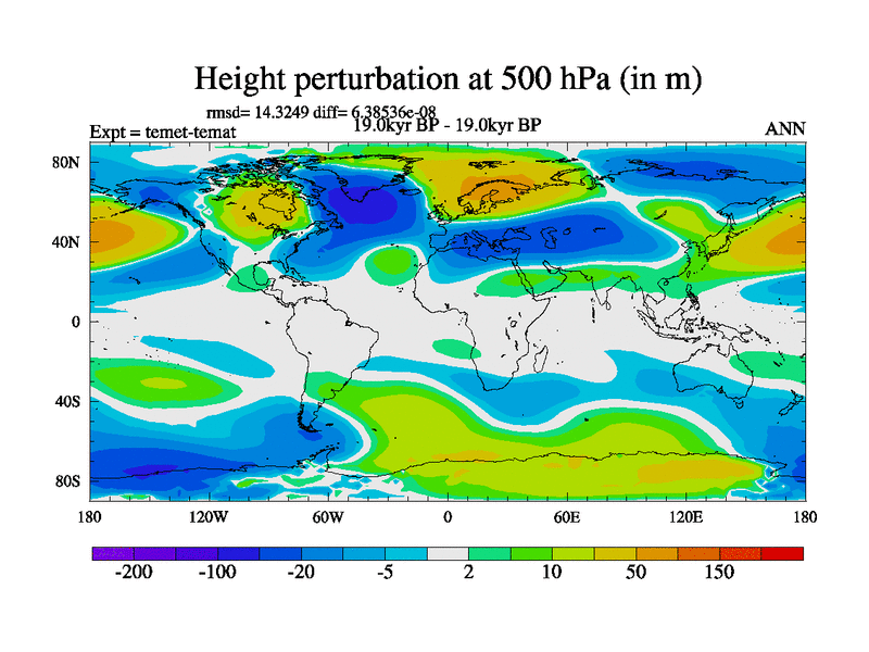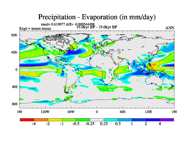 This is the 19.0 kyr BP simulation for a new set of deglaciation BBC runs using GLAC-1D and TRIFFID. Dynamic mode. No meltwater. Russian rivers routed to Med but only during height of glacial.