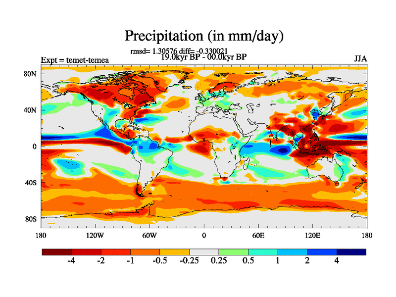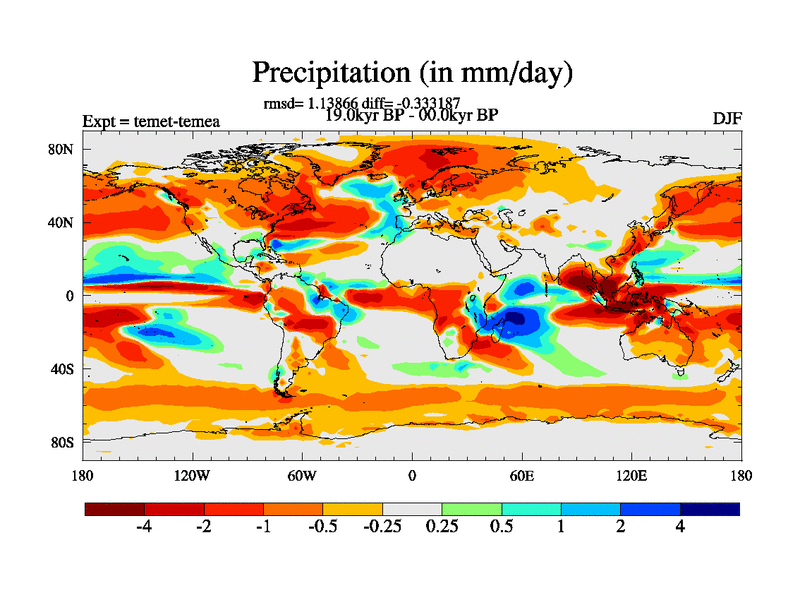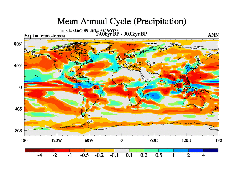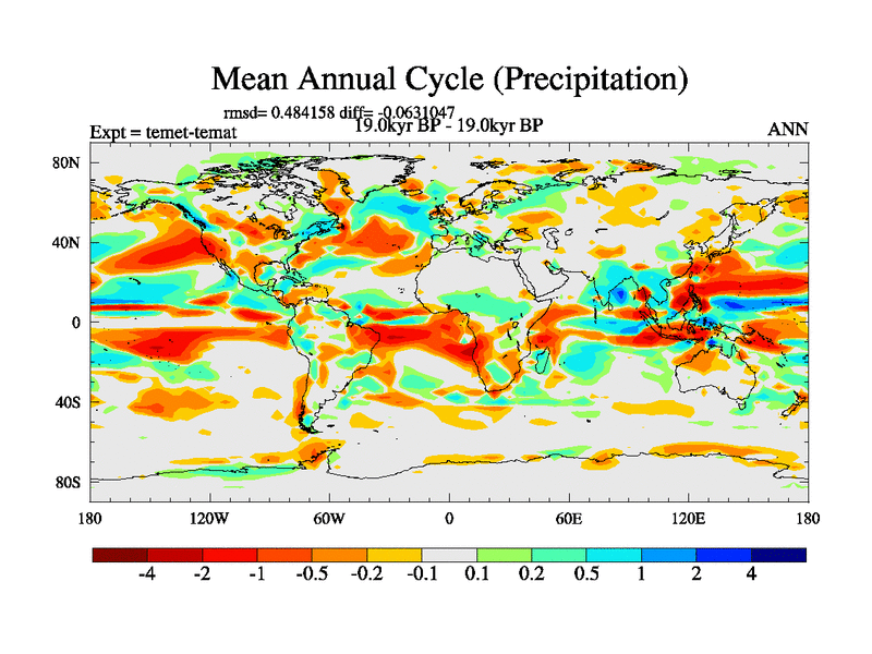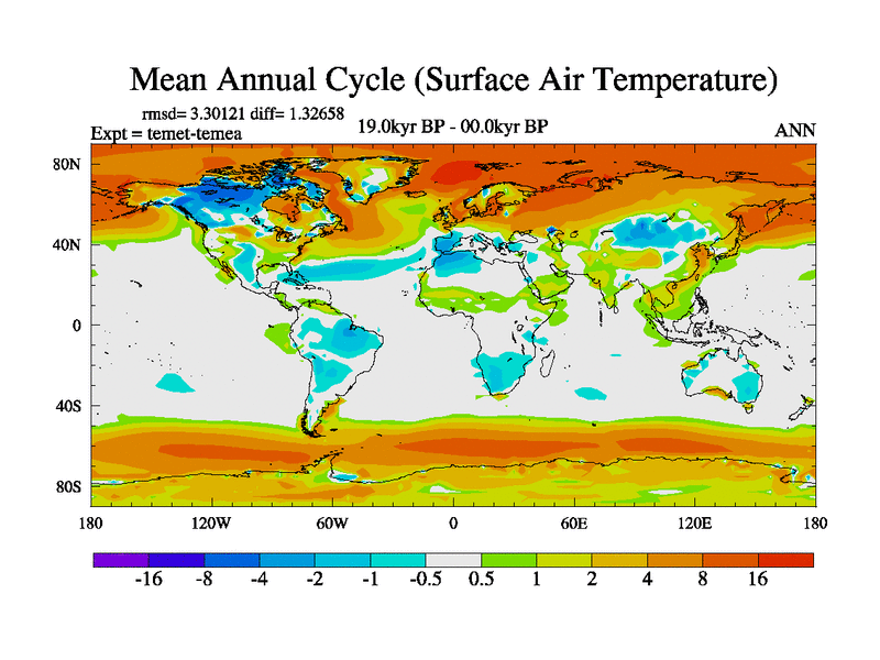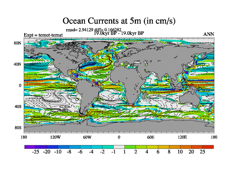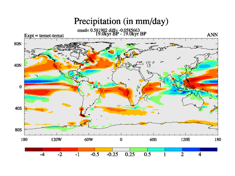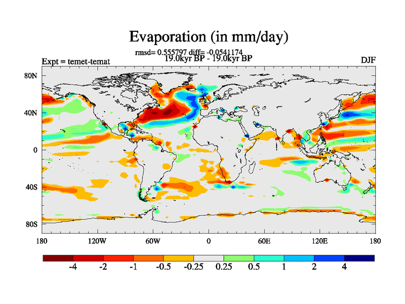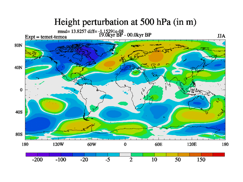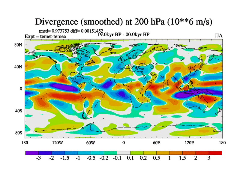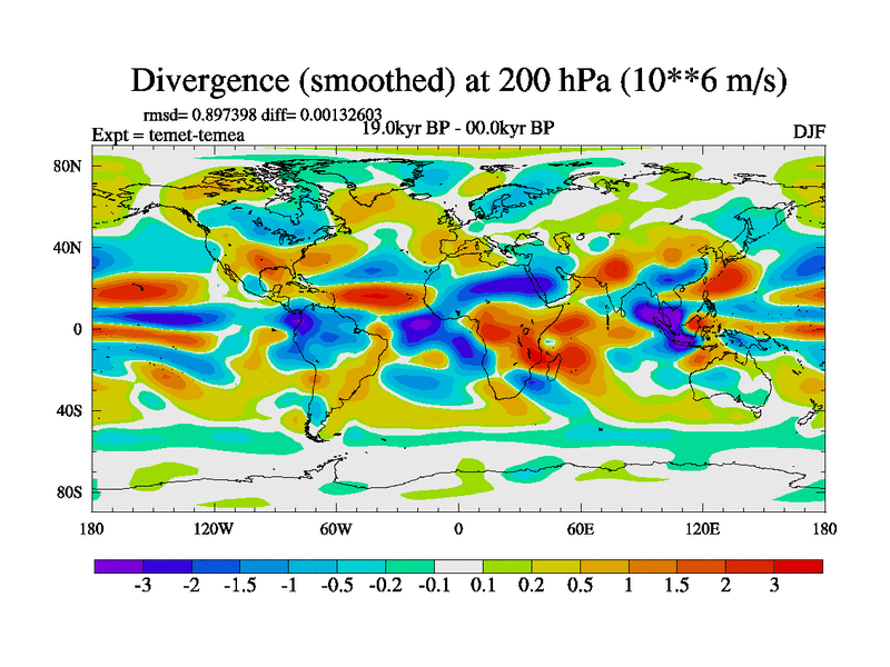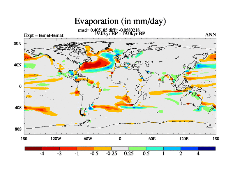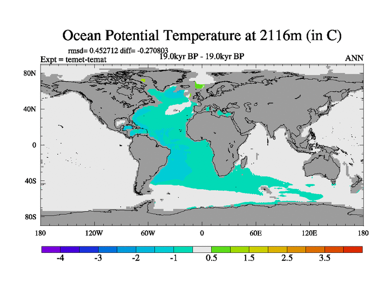 This is the 19.0 kyr BP simulation for a new set of deglaciation BBC runs using GLAC-1D and TRIFFID. Dynamic mode. No meltwater. Russian rivers routed to Med but only during height of glacial.