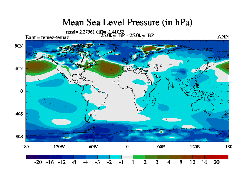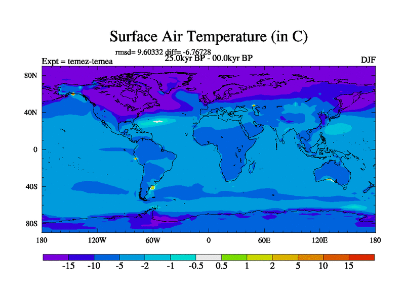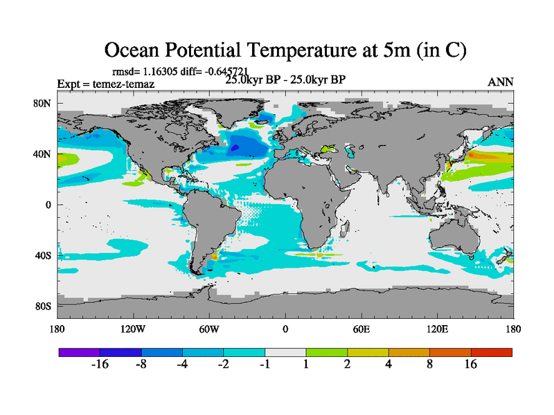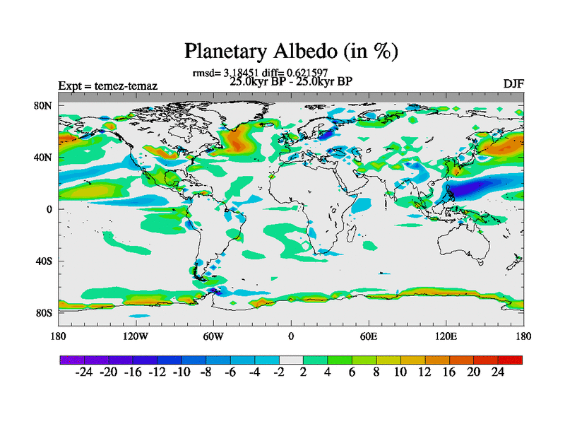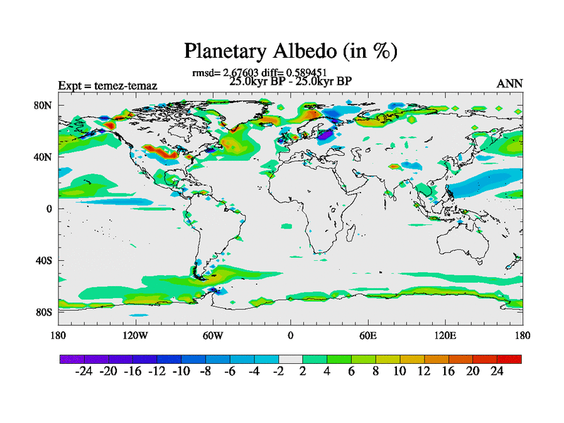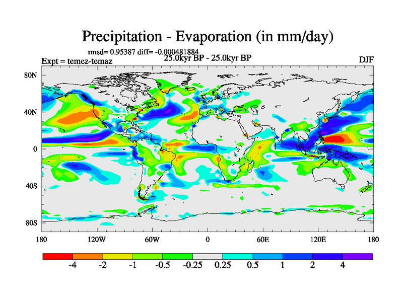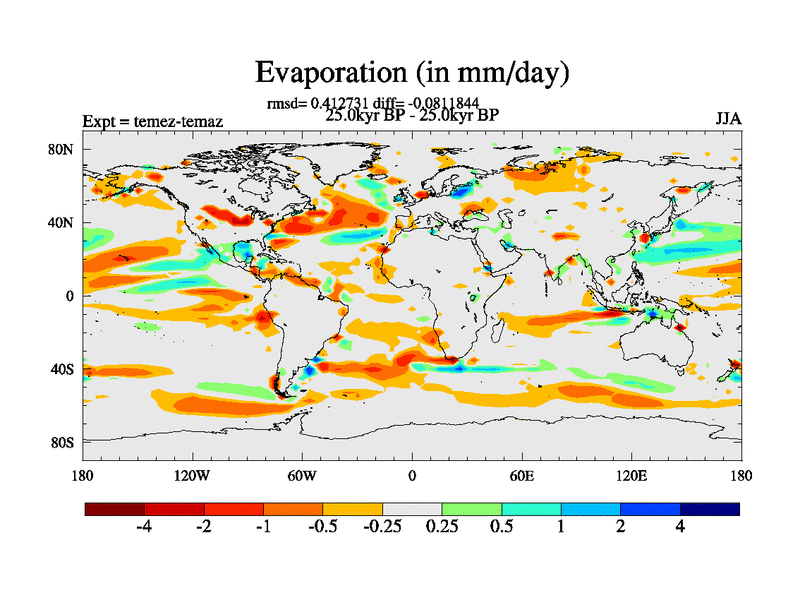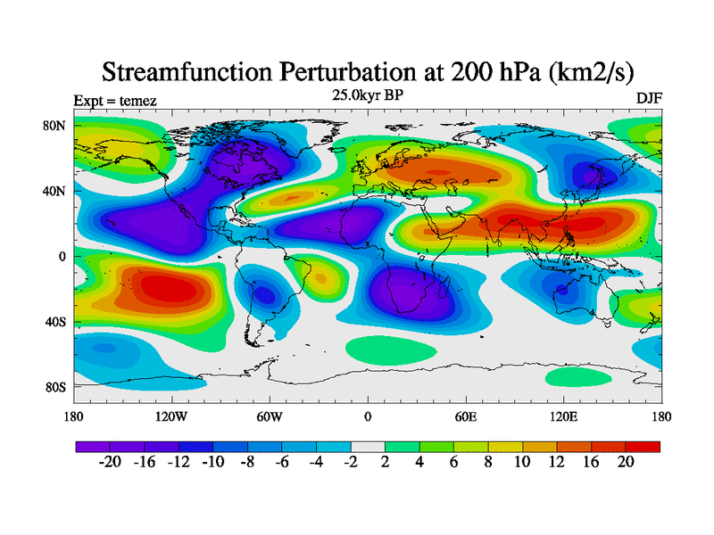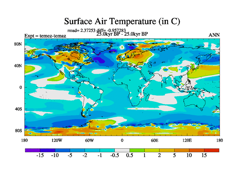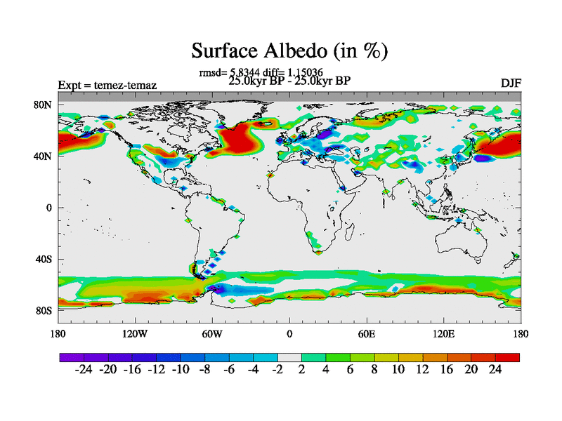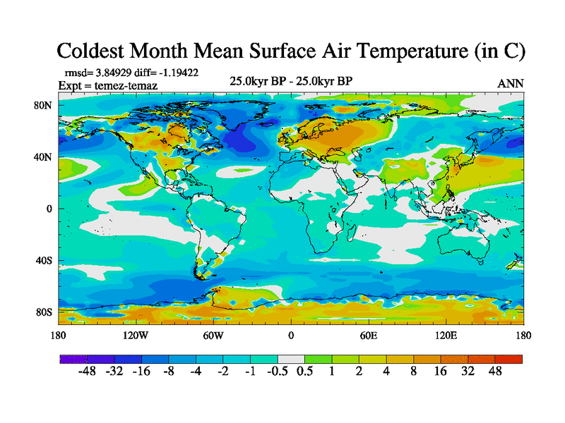 This is the 25.0 kyr BP simulation for a new set of deglaciation BBC runs using GLAC-1D and TRIFFID. Dynamic mode. No meltwater. Russian rivers routed to Med but only during height of glacial.