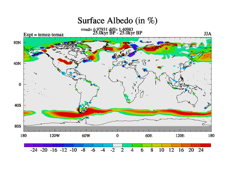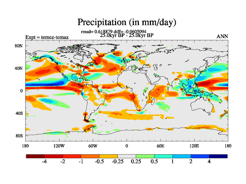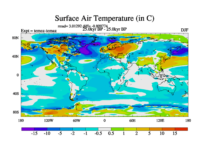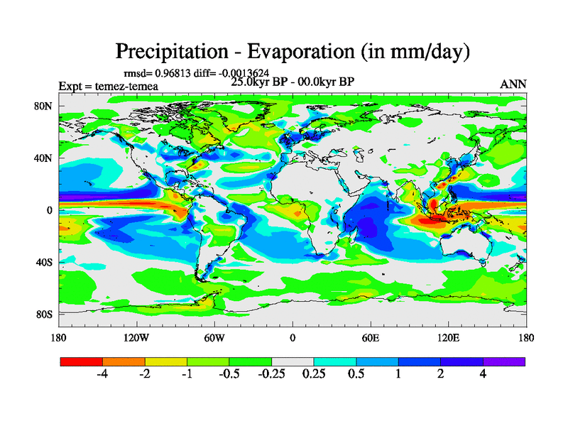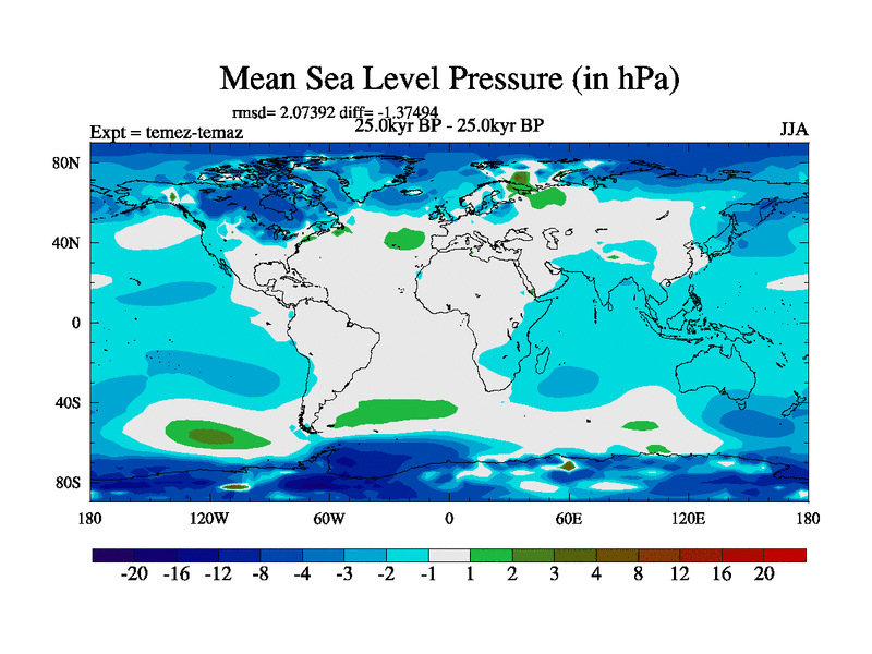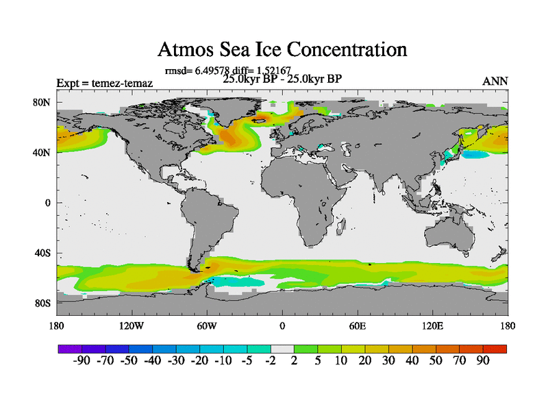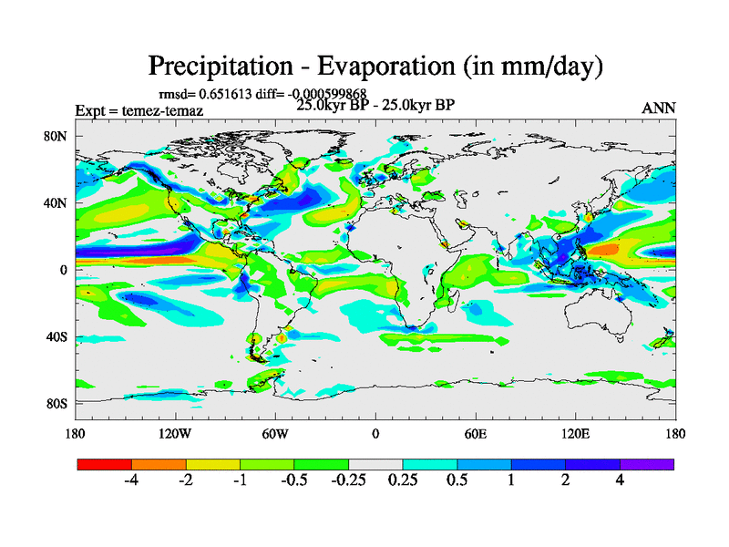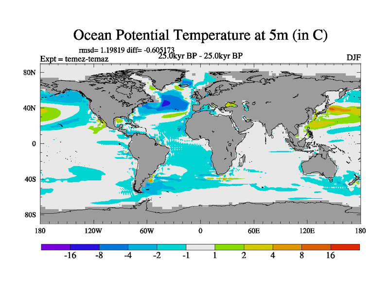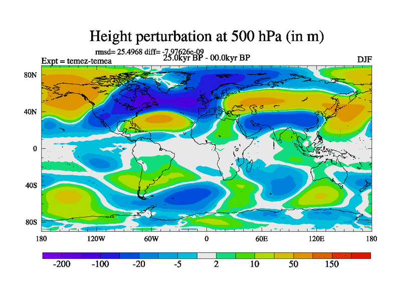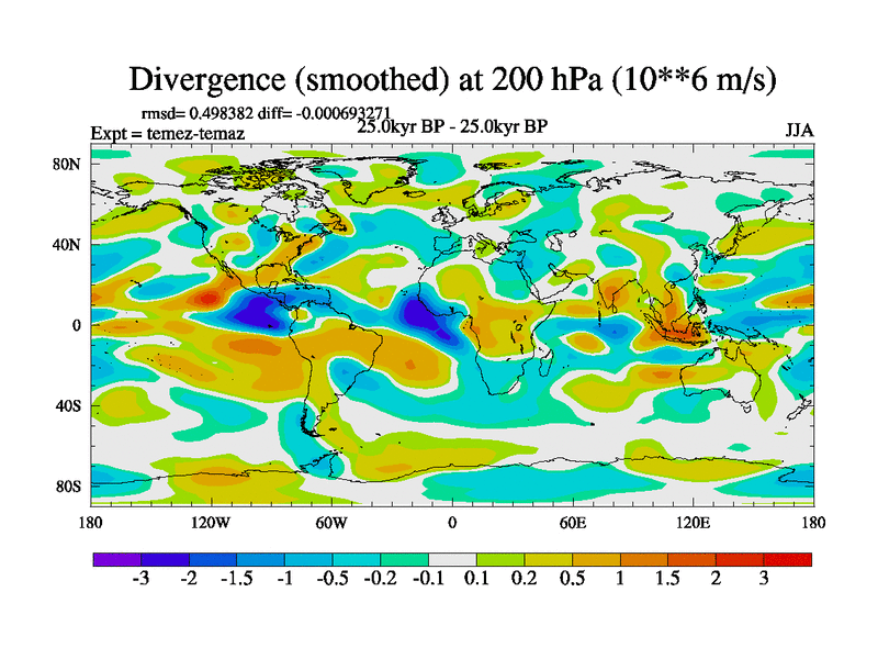 This is the 25.0 kyr BP simulation for a new set of deglaciation BBC runs using GLAC-1D and TRIFFID. Dynamic mode. No meltwater. Russian rivers routed to Med but only during height of glacial.
